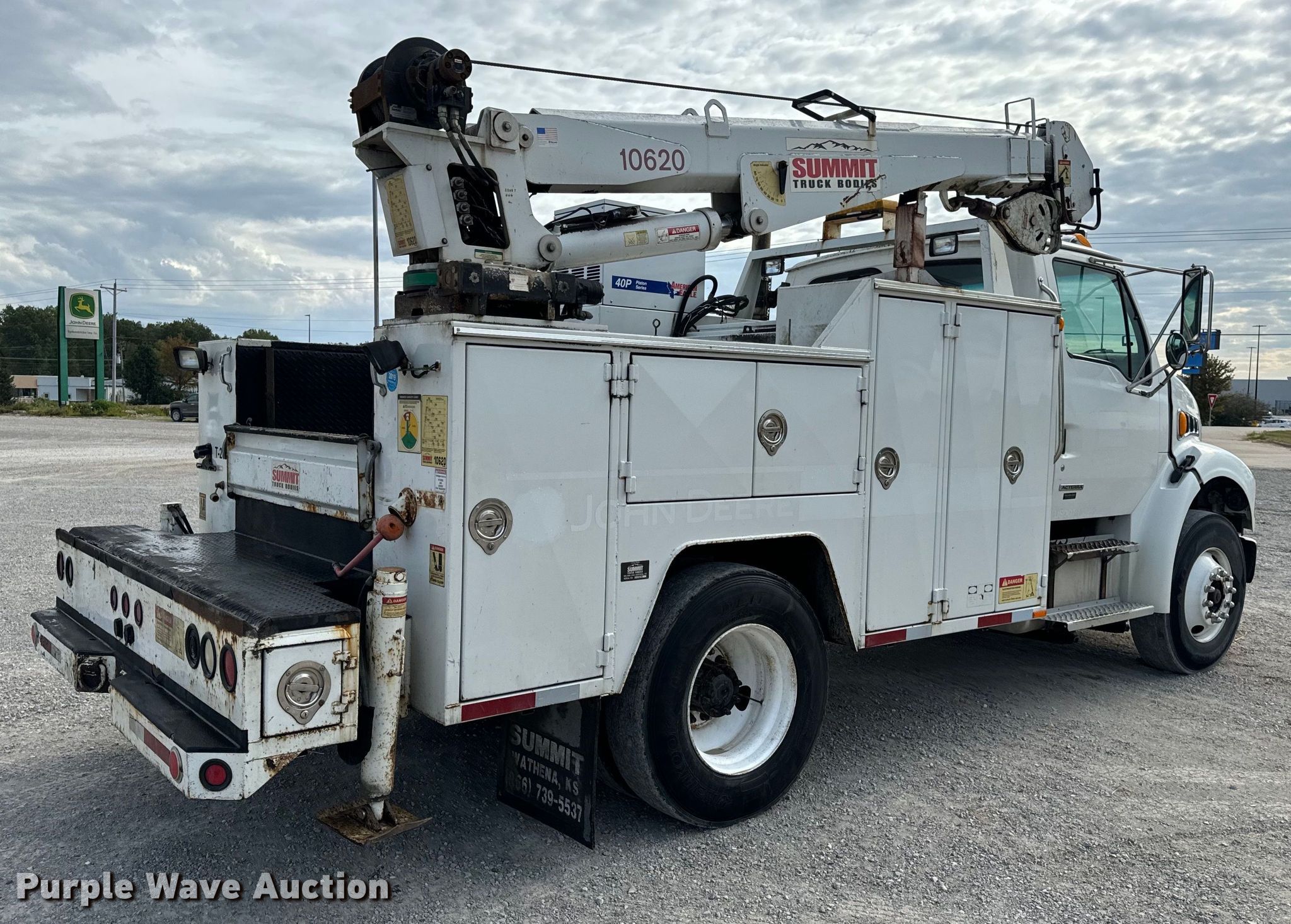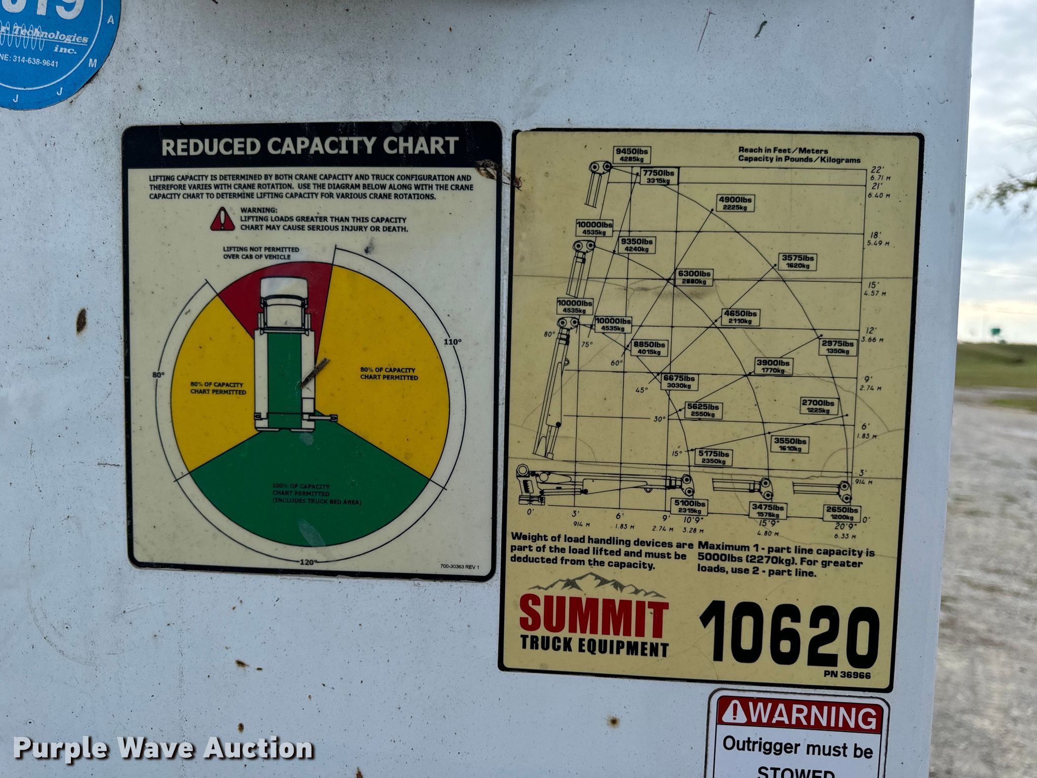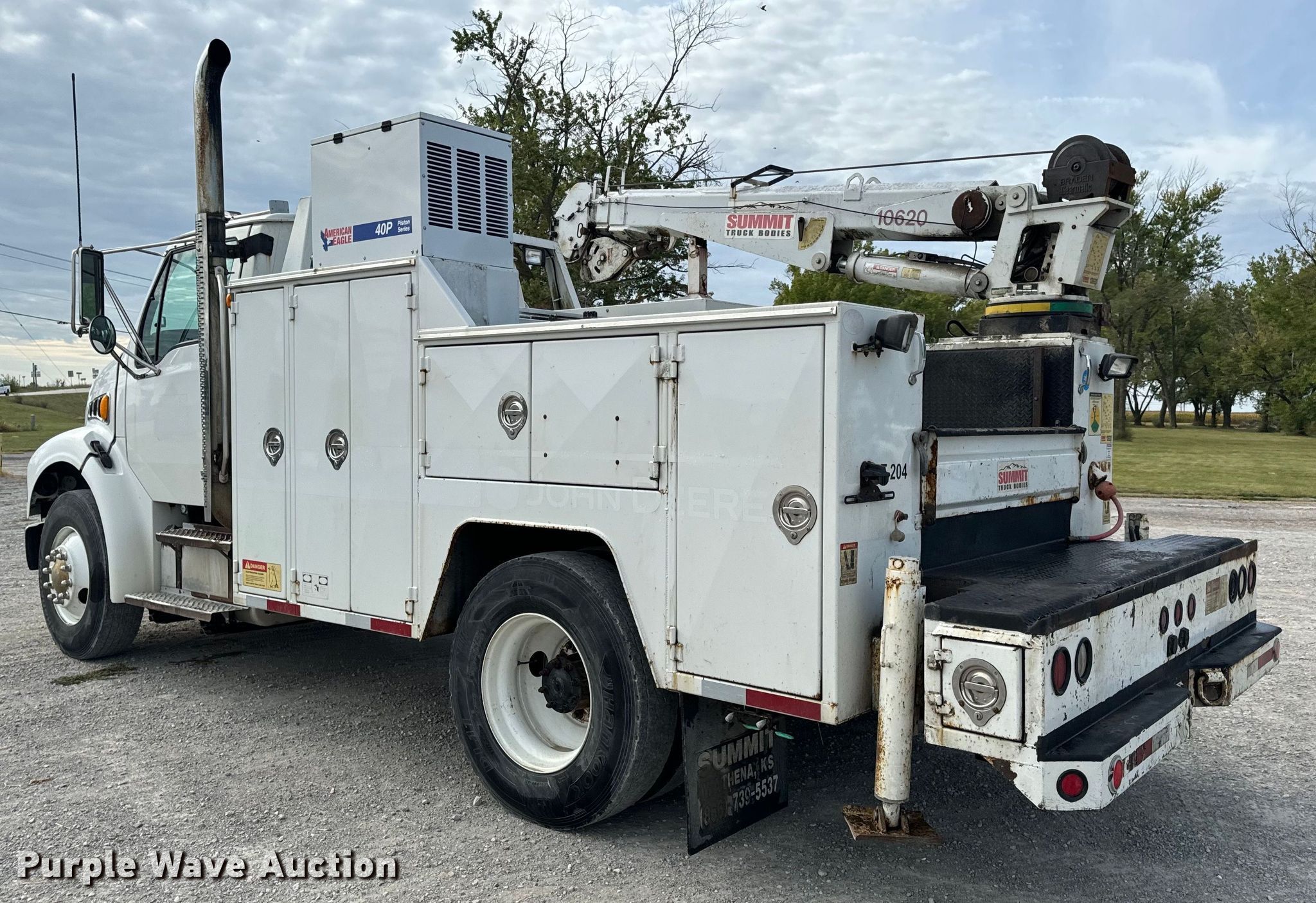 2006 Sterling Acterra utility / service truck. Miles: 294,407 on odometer, VIN: 2FZACFCS16AV73811, Unit #: T-204. Engine Mercedes-Benz 0M906LA, Cylinders: 6, Fuel type: Diesel, HP: 260. Transmission Manual, Speed: 6. Chassis Axles: Single, Suspension: Spring, Brakes: Air, PTO, GVWR: 26,008 lbs. Interior AC, Heat, Heated mirrors, Cruise control. Features Bed Summit Truck Bodies, 11' 2" L x 98" W, Torch bottle rack, Welder/generator Miller Trailblazer 302, Fuel type: Gas, 240V outlets: 1, 120V outlets: 2, Watts: 11,000, Welder type: Leads, Wire, Stick (AC/DC), Air compressor American Eagle 40P Piston Series, Crane Summit 10620, Maximum boom length: 22' Maximum lift capacity: 10,000 lbs.. Tires Front: 11R22.5. Notes AC issues, needs charged, Unknown operating condition of air compressor. Illinois title. Title distribution may be delayed up to 14 days from verification of funds. Sydenstricker Nobbe Partners Inc.. Mexico, MO 65265