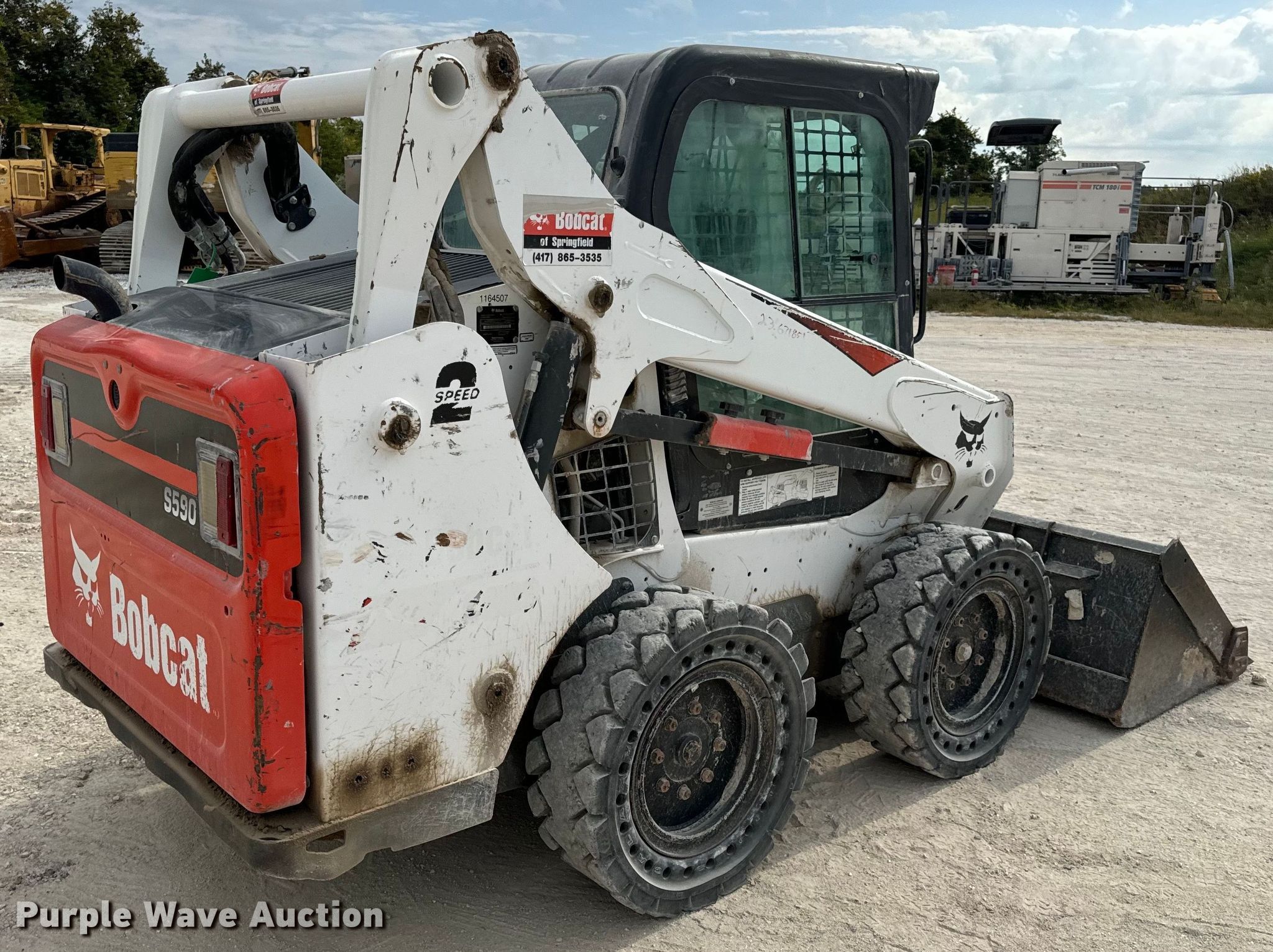 Purple Wave is selling a used Skid Steer Loader in Missouri. This item is a 2018 Bobcat S590 skid steer loader with the following: Hours: 4,323 on meter, Serial: AR9R19700, Unit #: 23.671851