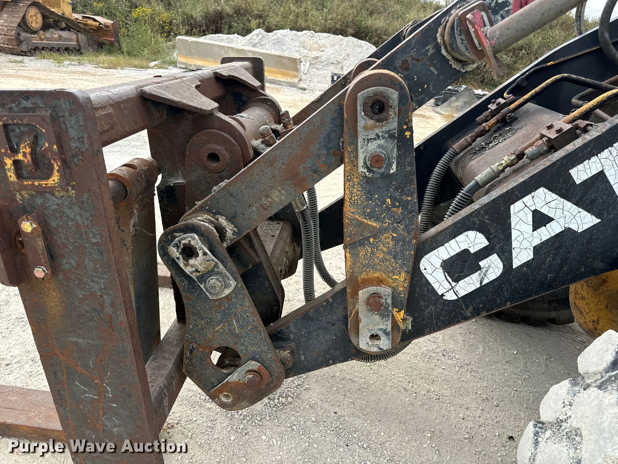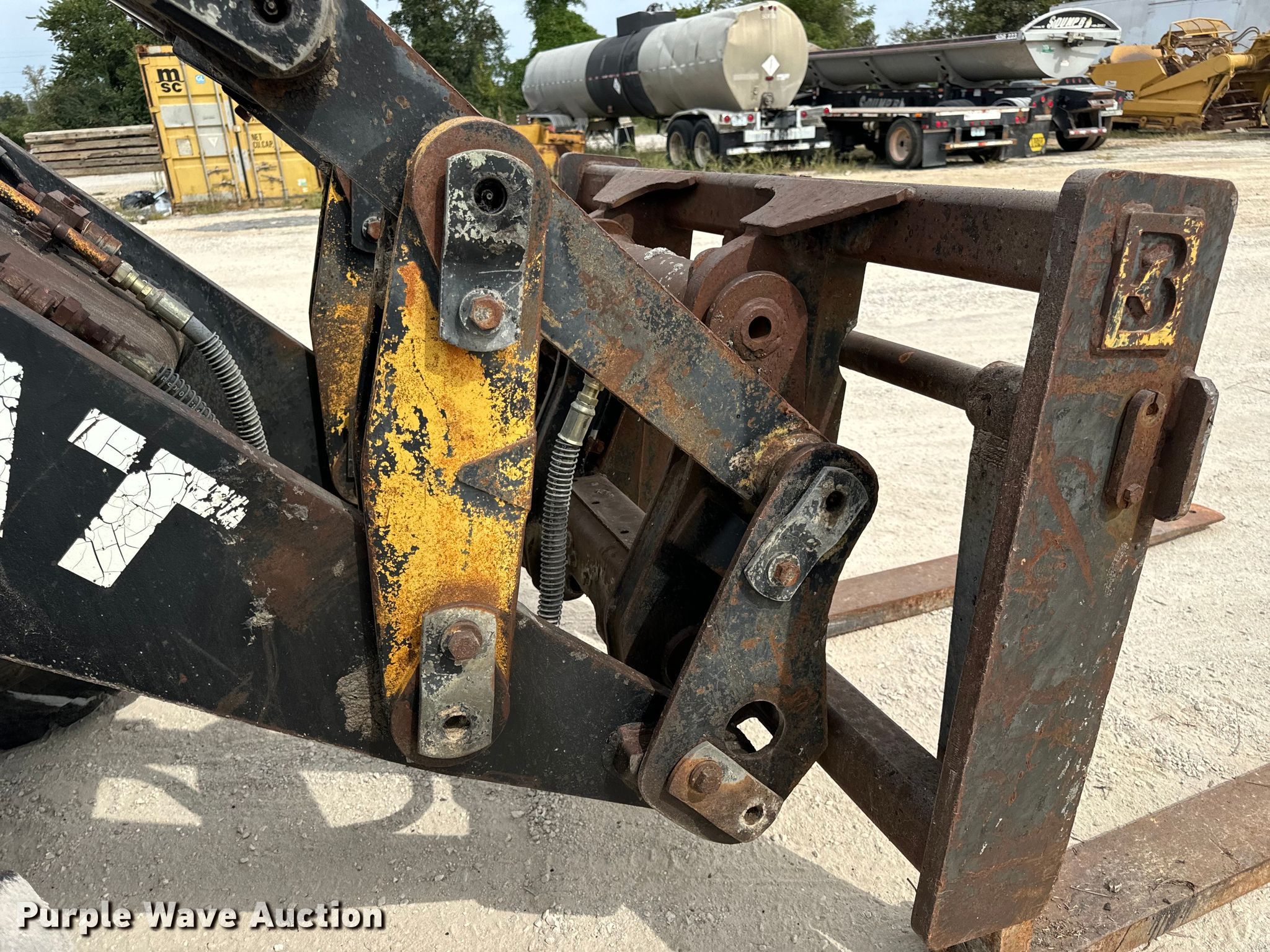 1989 Caterpillar IT28B wheel loader. Hours: 14,096 on meter, Serial: 1HF01401, Unit #: 23.678901. Engine Caterpillar, Cylinders: 4, Fuel type: Diesel. Transmission Powershift, 4F - 4R. Operators station Enclosed cab, Heat, Bucket controls: Two-lever. Features Quick coupler: Hydraulic, Counter weights, Forks Length: 72". Tires Size: 17.5R25. Notes Glass cracked, Right side glass missing, Hydraulic leak. Capital Equipment. Ozark, MO 65721