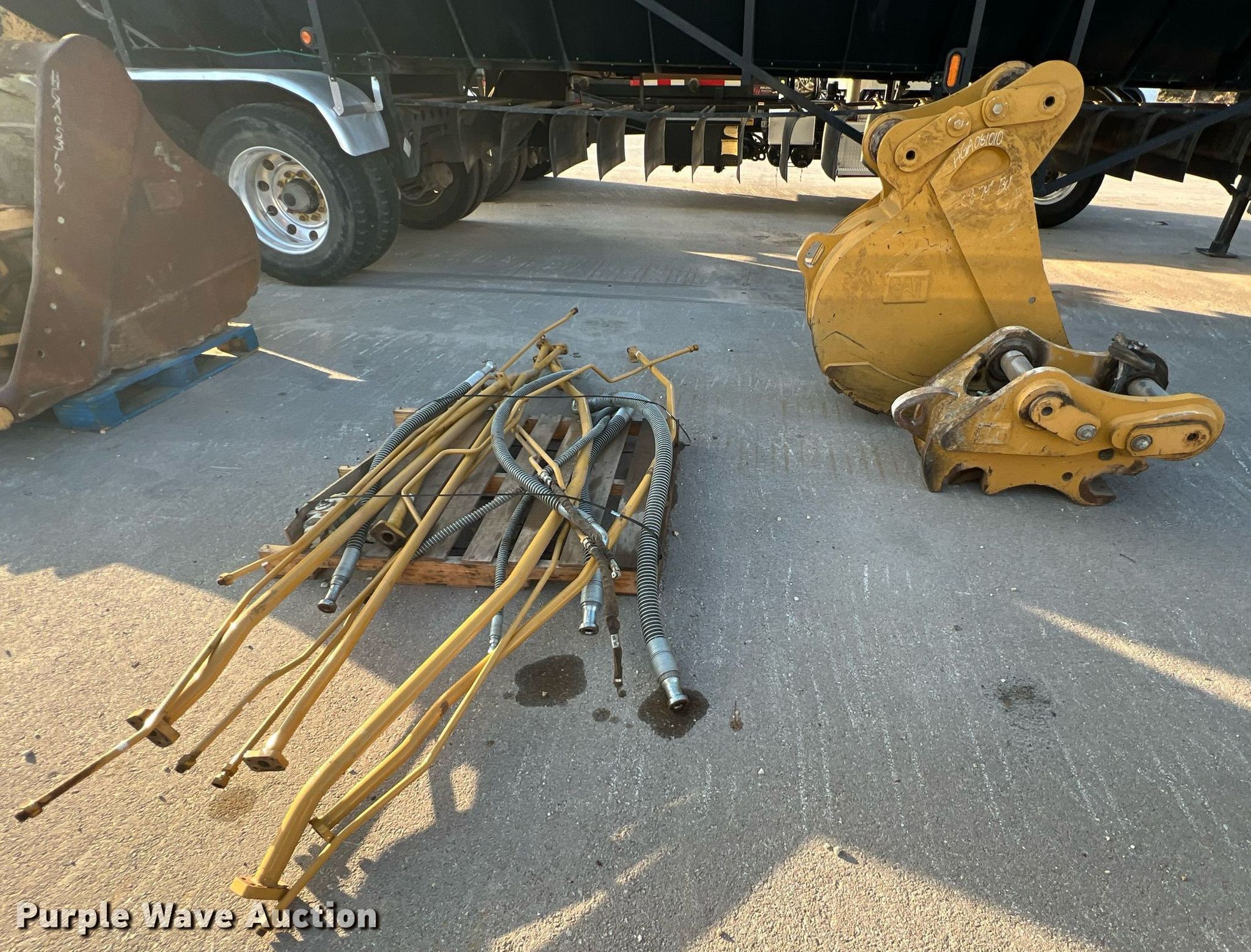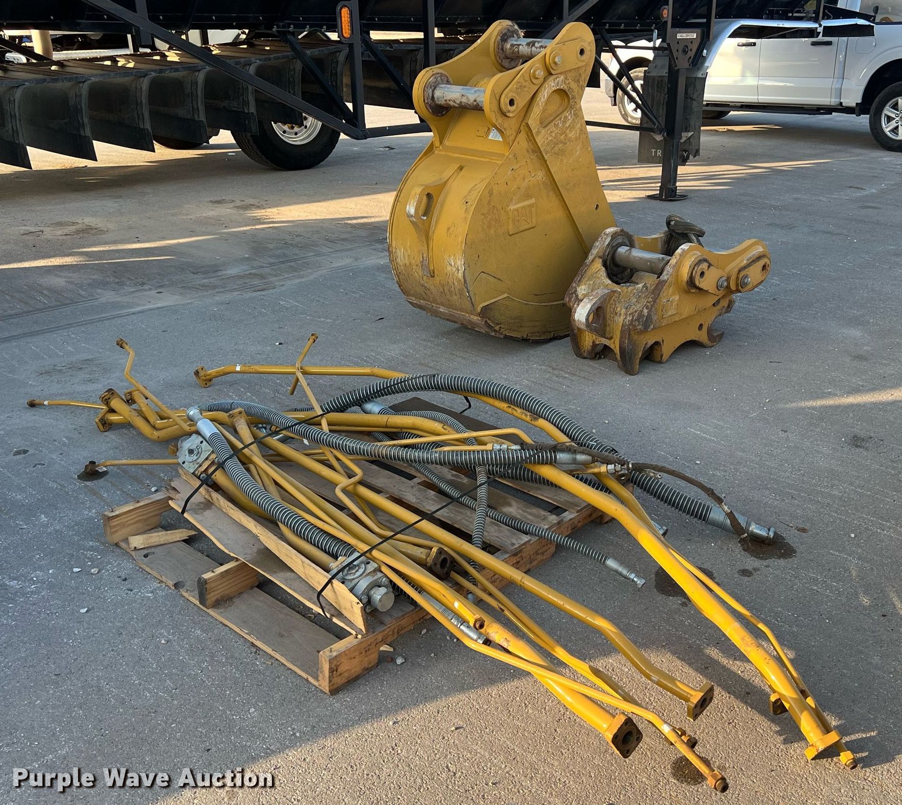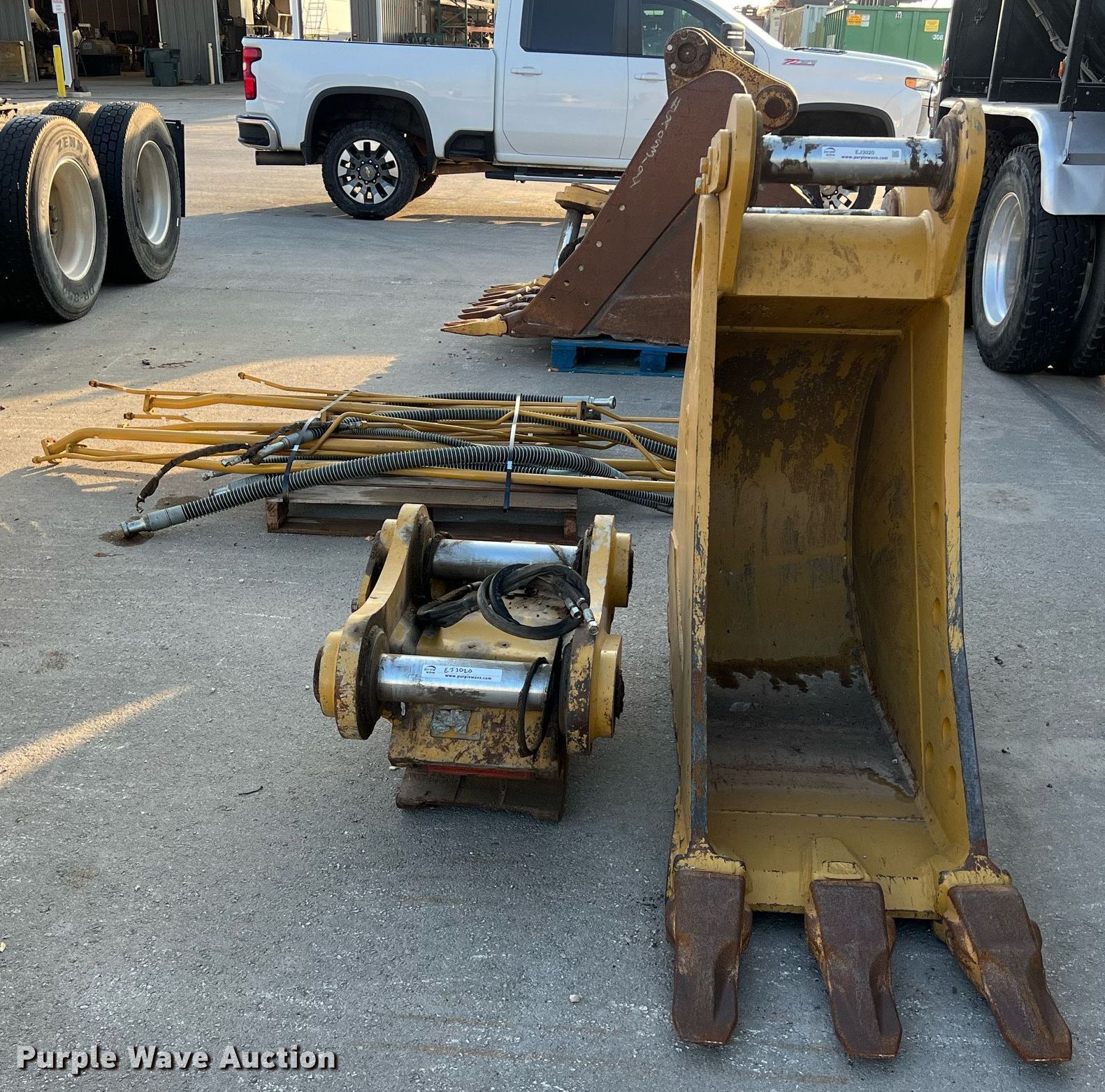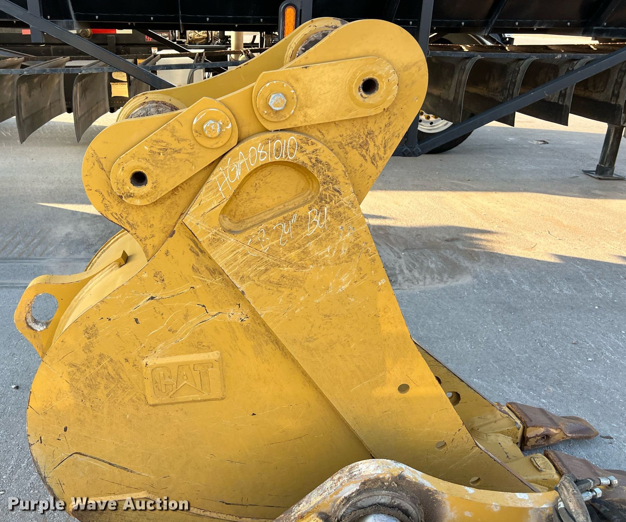 Purple Wave is selling a used Excavator Attach. in Texas. This item is a Caterpillar excavator bucket with the following: Width: 24�, Teeth: 3, Capacity: 0.68 cu.yd., Caterpillar quick coupler included, Caterpillar auxiliary hydraulic lines included, Fits 326/330 excavator