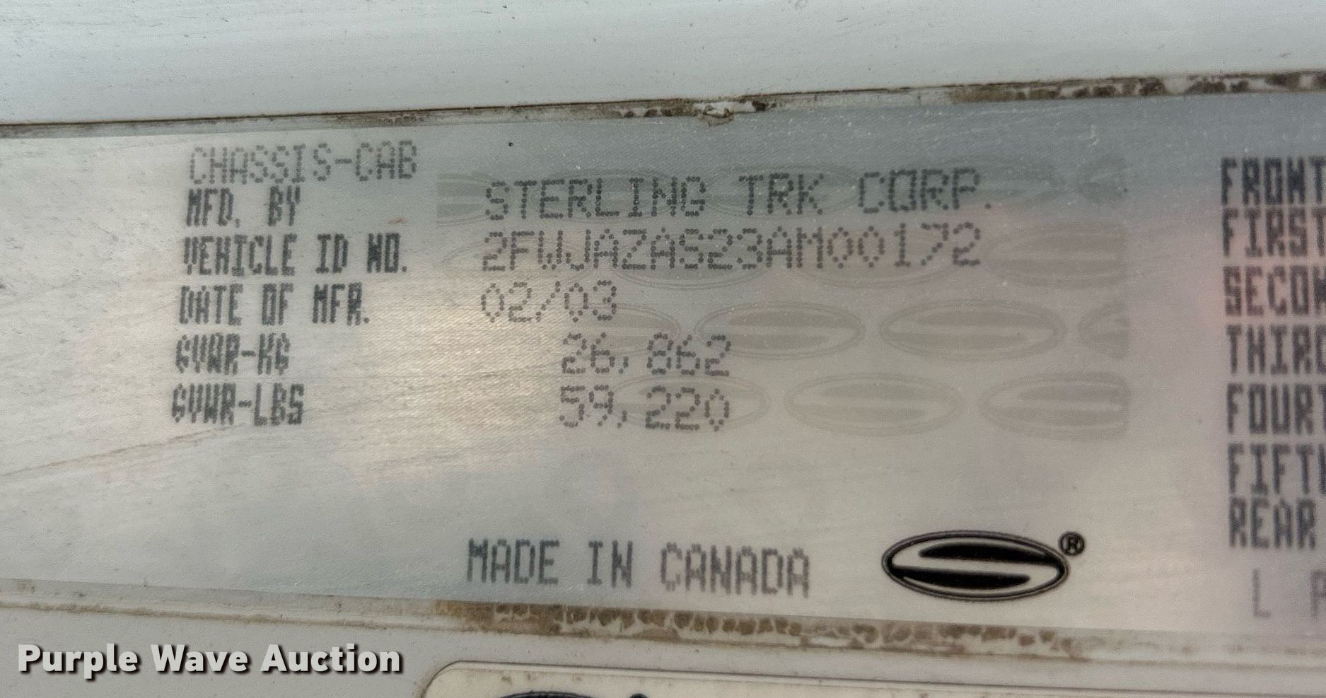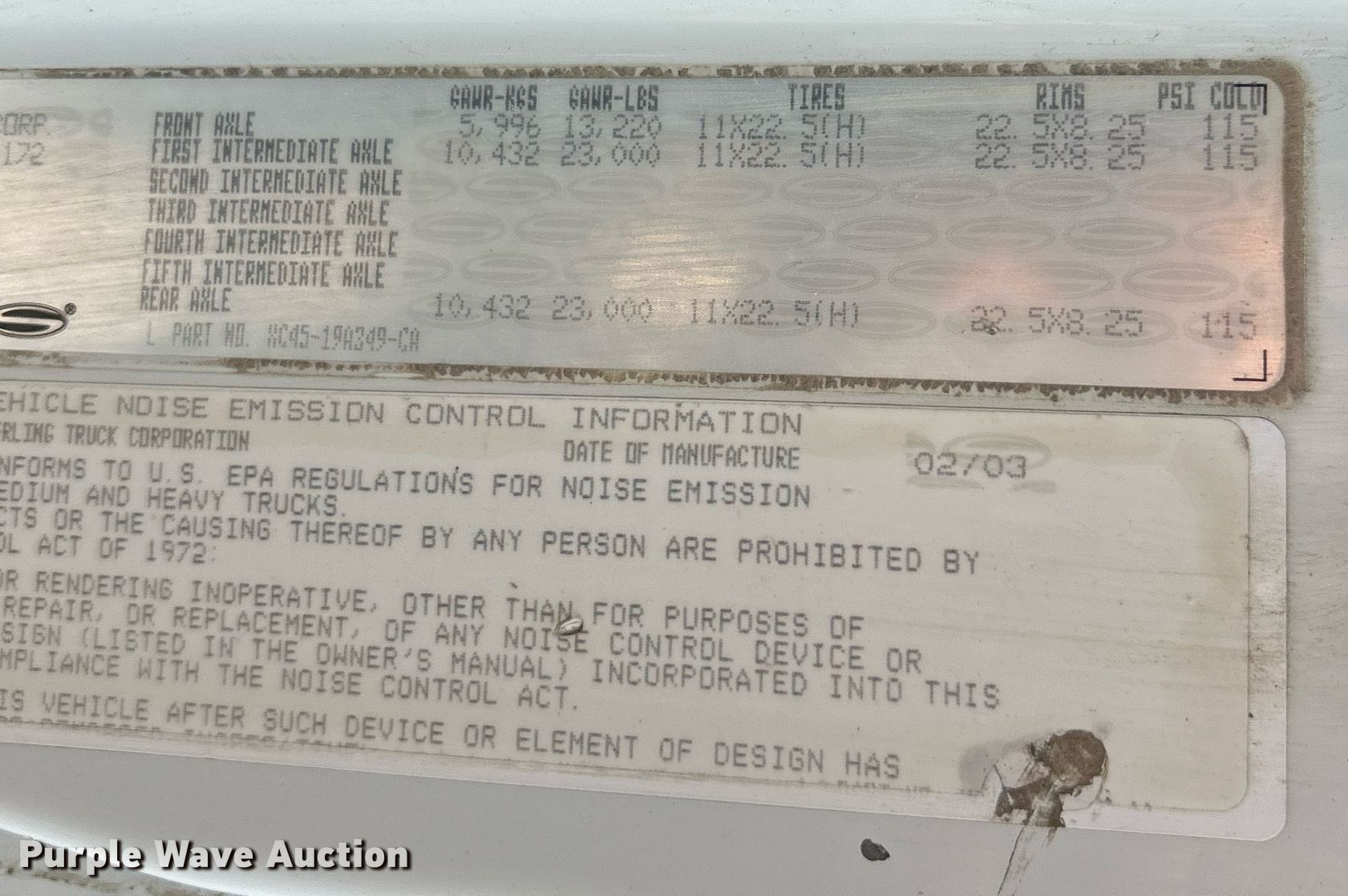Purple Wave is selling a used Construction Dump Truck in Missouri. This item is a 2003 Sterling LT9500 dump truck with the following: Miles: 504,891 on odometer, VIN: 2FWJAZAS23AM00172, Unit #: 172