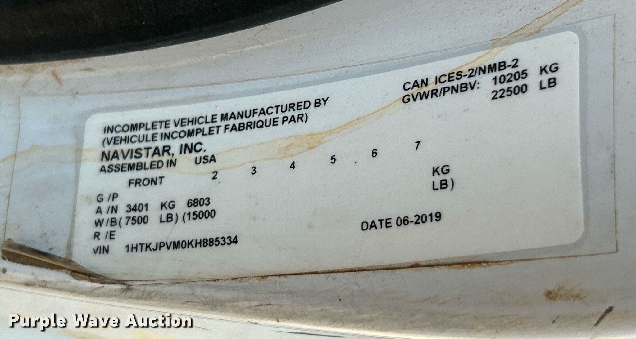 - VIN: 1HTKJPVM0KH885334