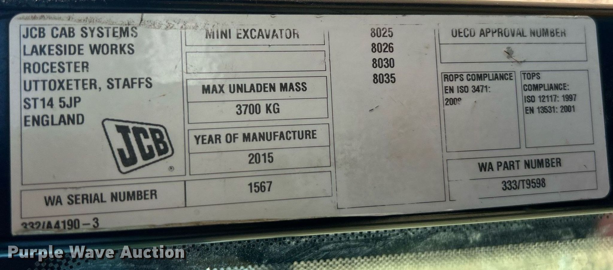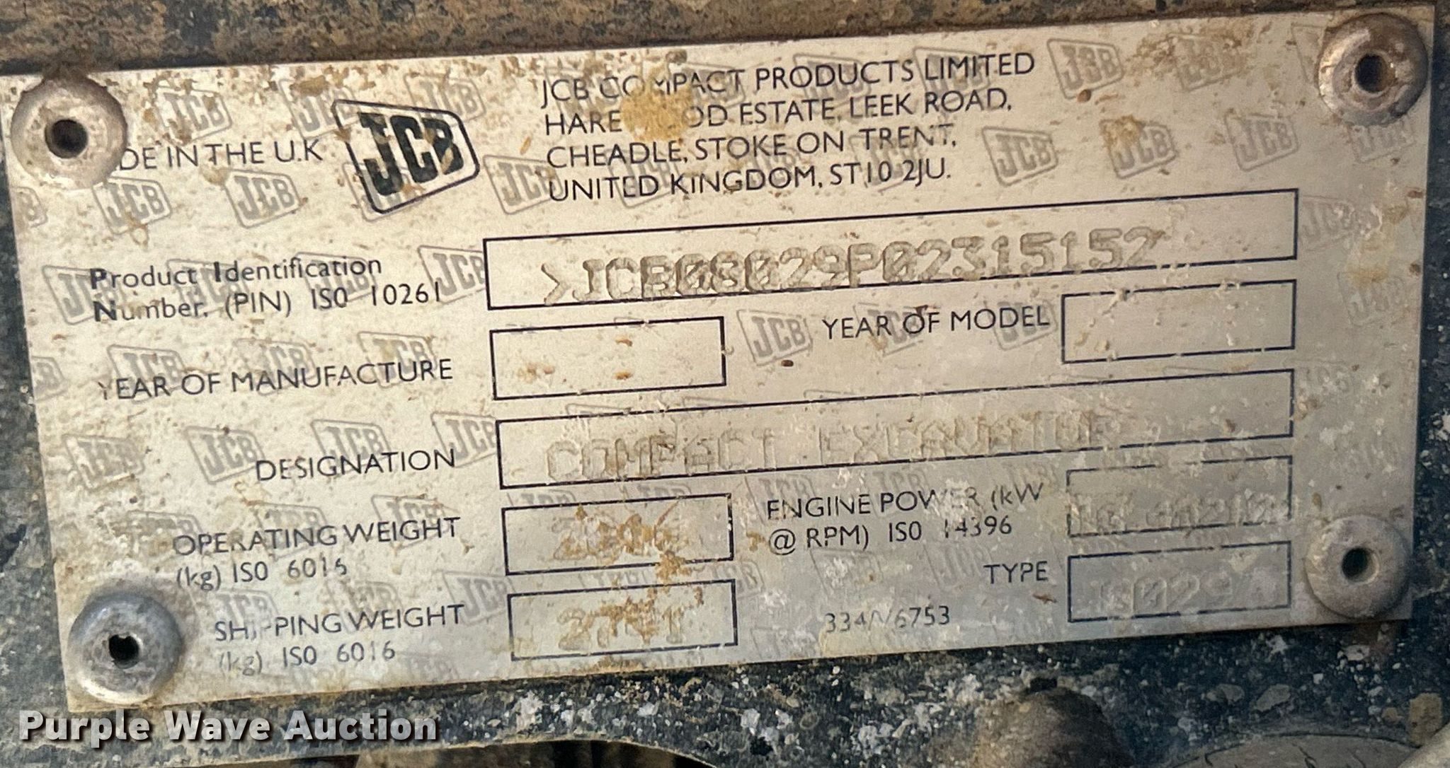 Purple Wave is selling a used Mini Excavator in Kentucky. This item is a JCB 8029CTS mini excavator with the following: Hours: 1,697 on meter, Serial: JCB08029P02315152