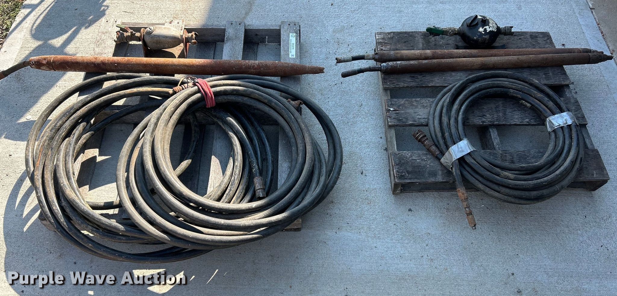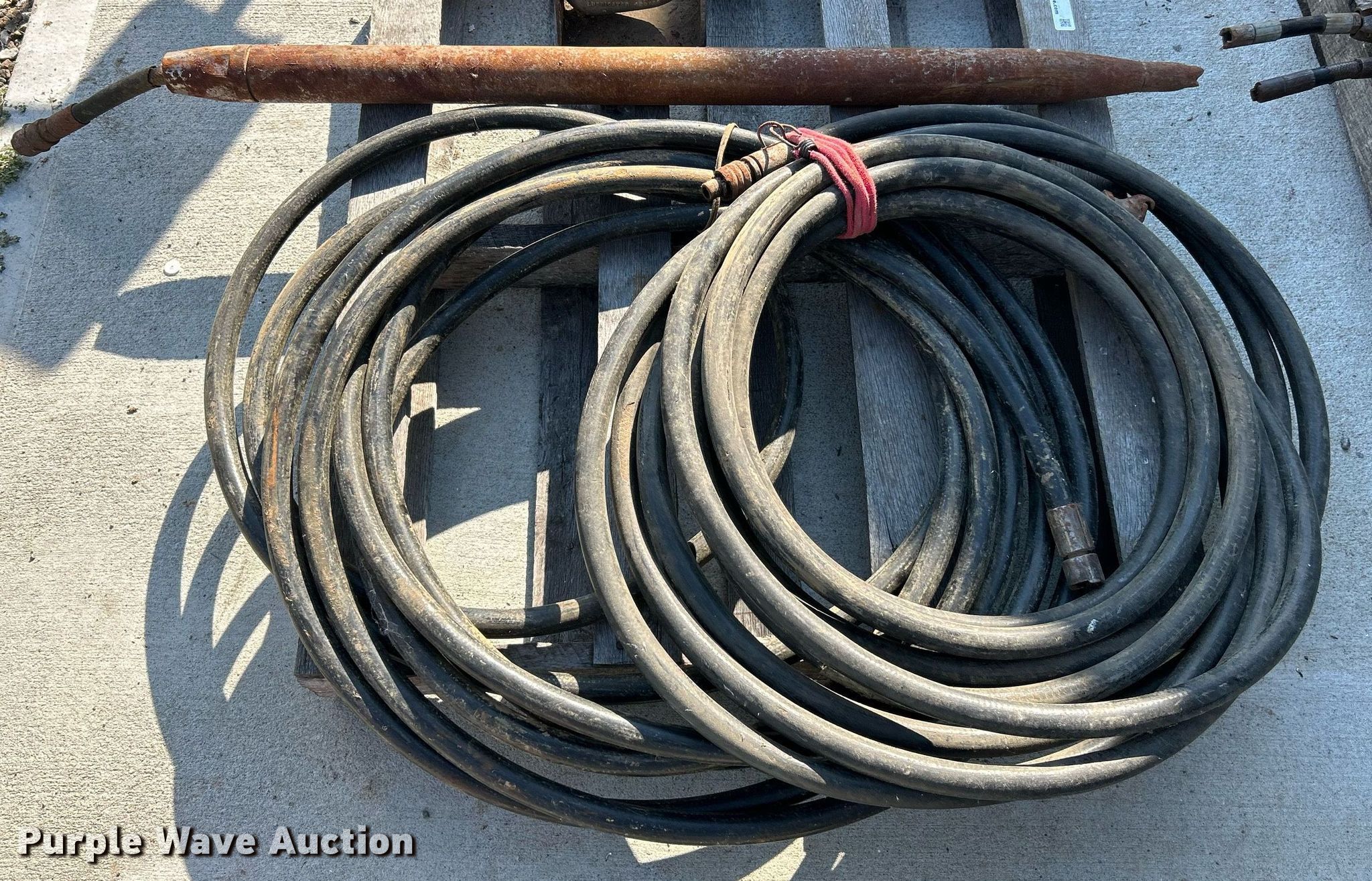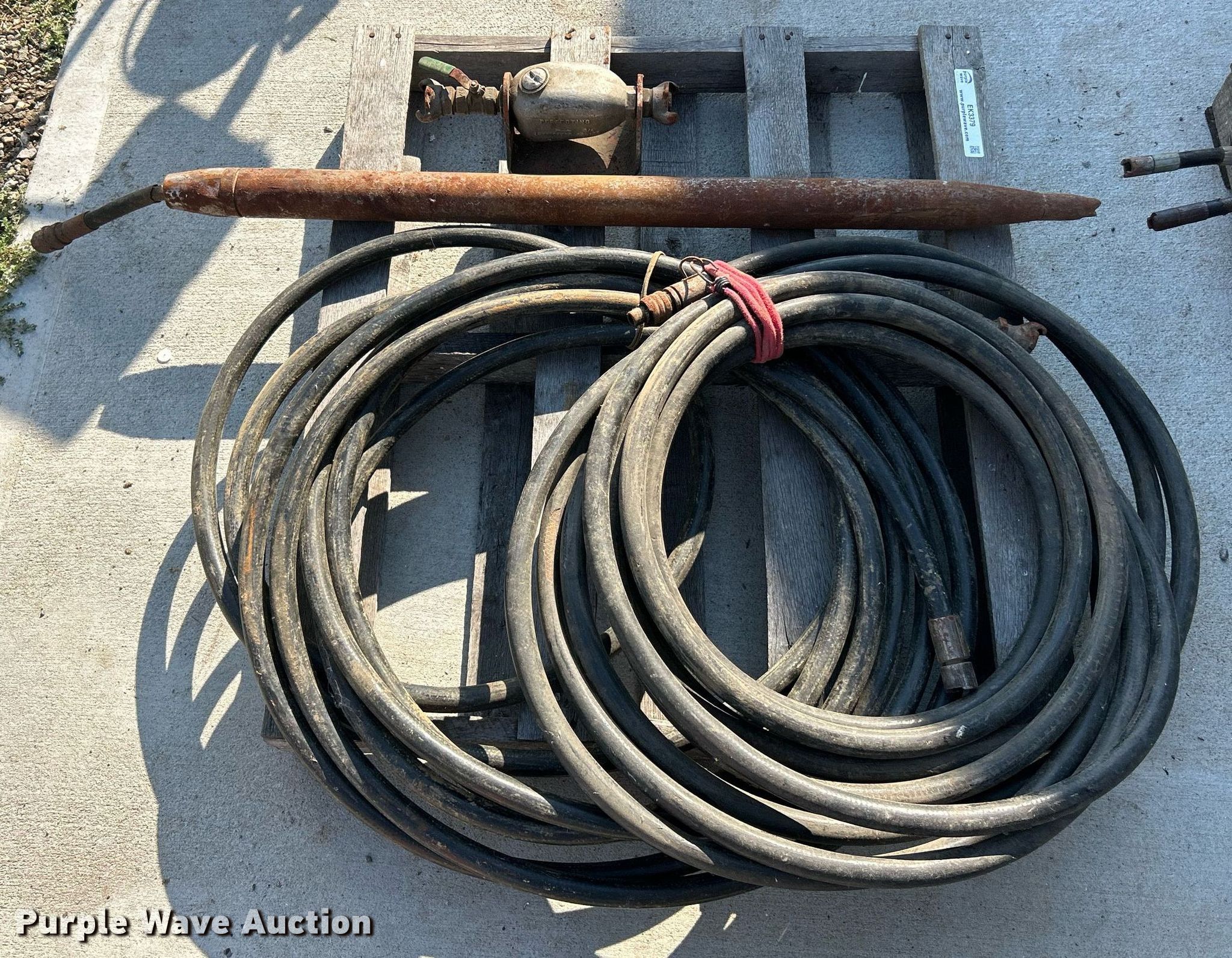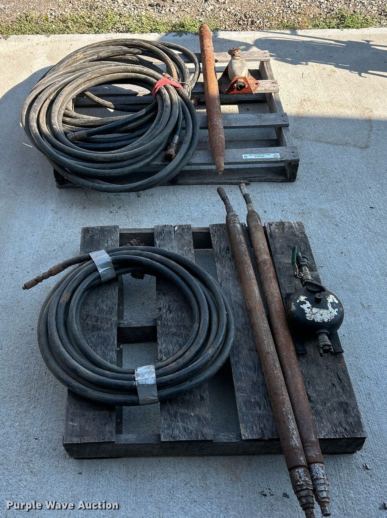 Pneumatic piercing tool. Hose 1/2", 3/4", Piercing rods (2) 41" L x 2" Diameter, 48" L x 2.5" Diameter, (2) oilers. Lulic LLC. St. Louis, MO 63111