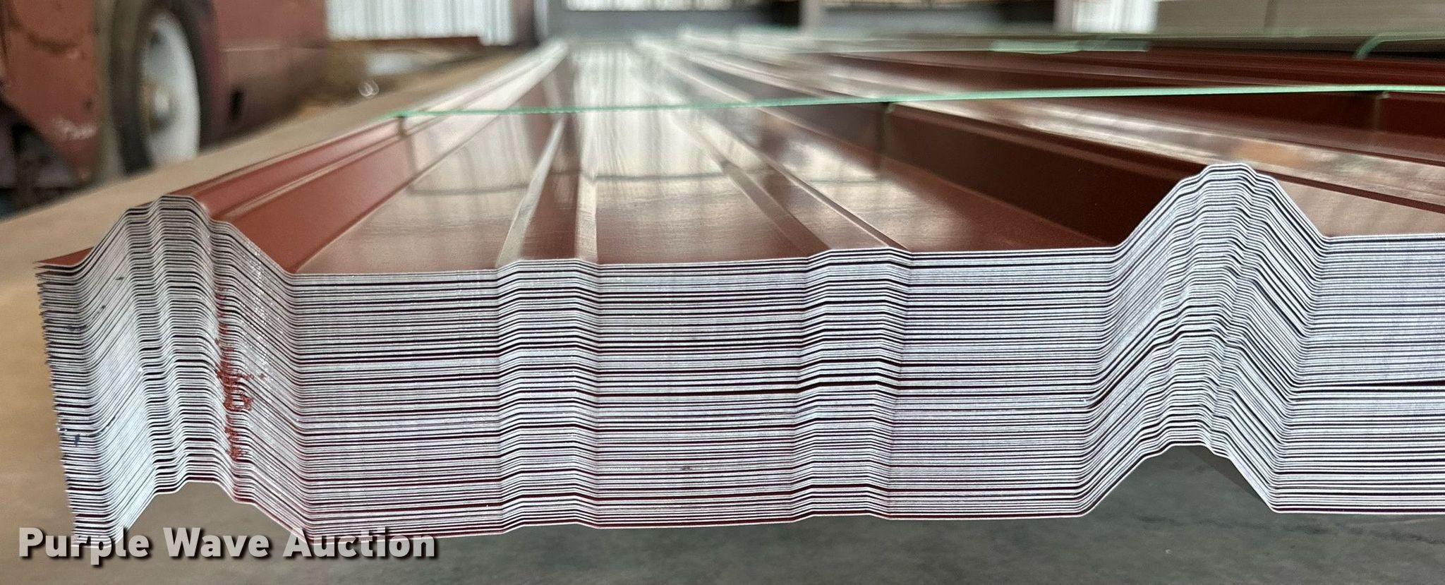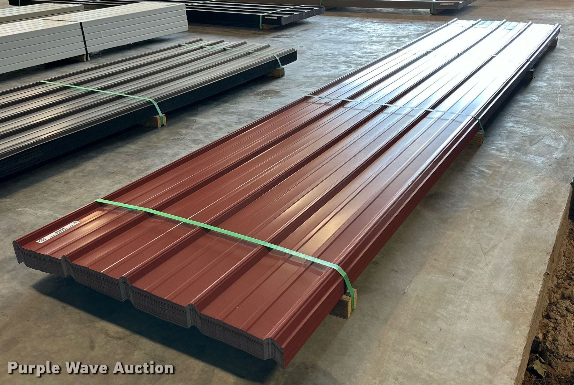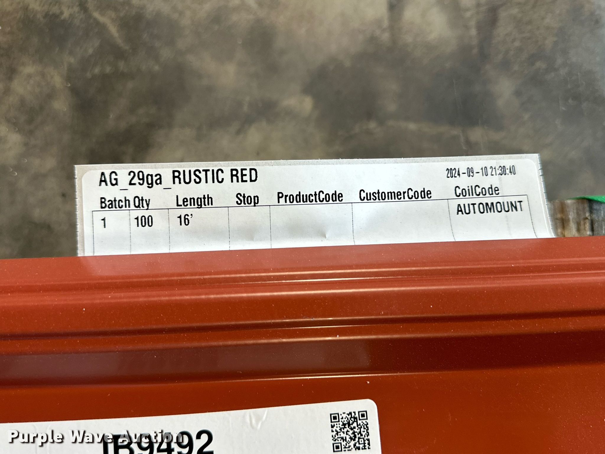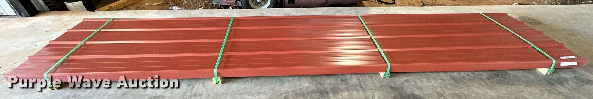 Purple Wave is selling a used Building Materials in Texas. This item is a (100) sheets of metal siding/roofing with the following: AG Panel, 16' L x 36" W, 29 gauge, Color: Rustic Red, Possible blemishes