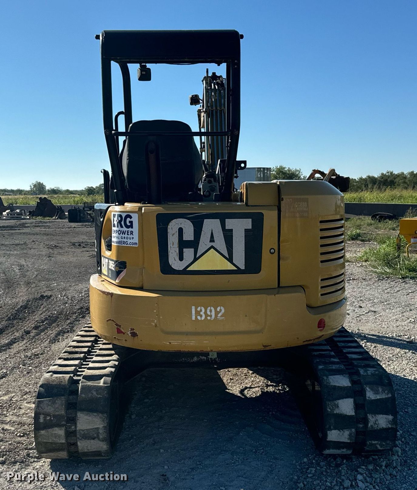 Purple Wave is selling a used Mini Excavator in Texas. This item is a 2016 Caterpillar 305E2 CR mini excavator with the following: Hours: 2,249 on meter, Serial: CAT0305EAH5M02262, Unit #: 1392