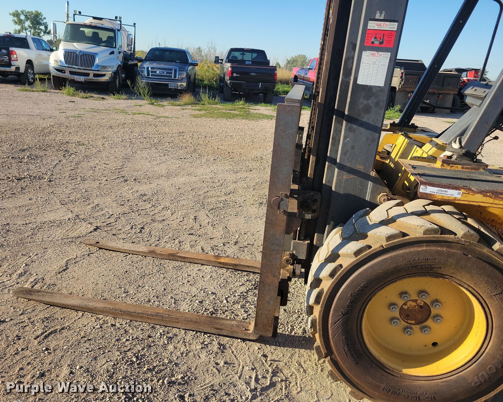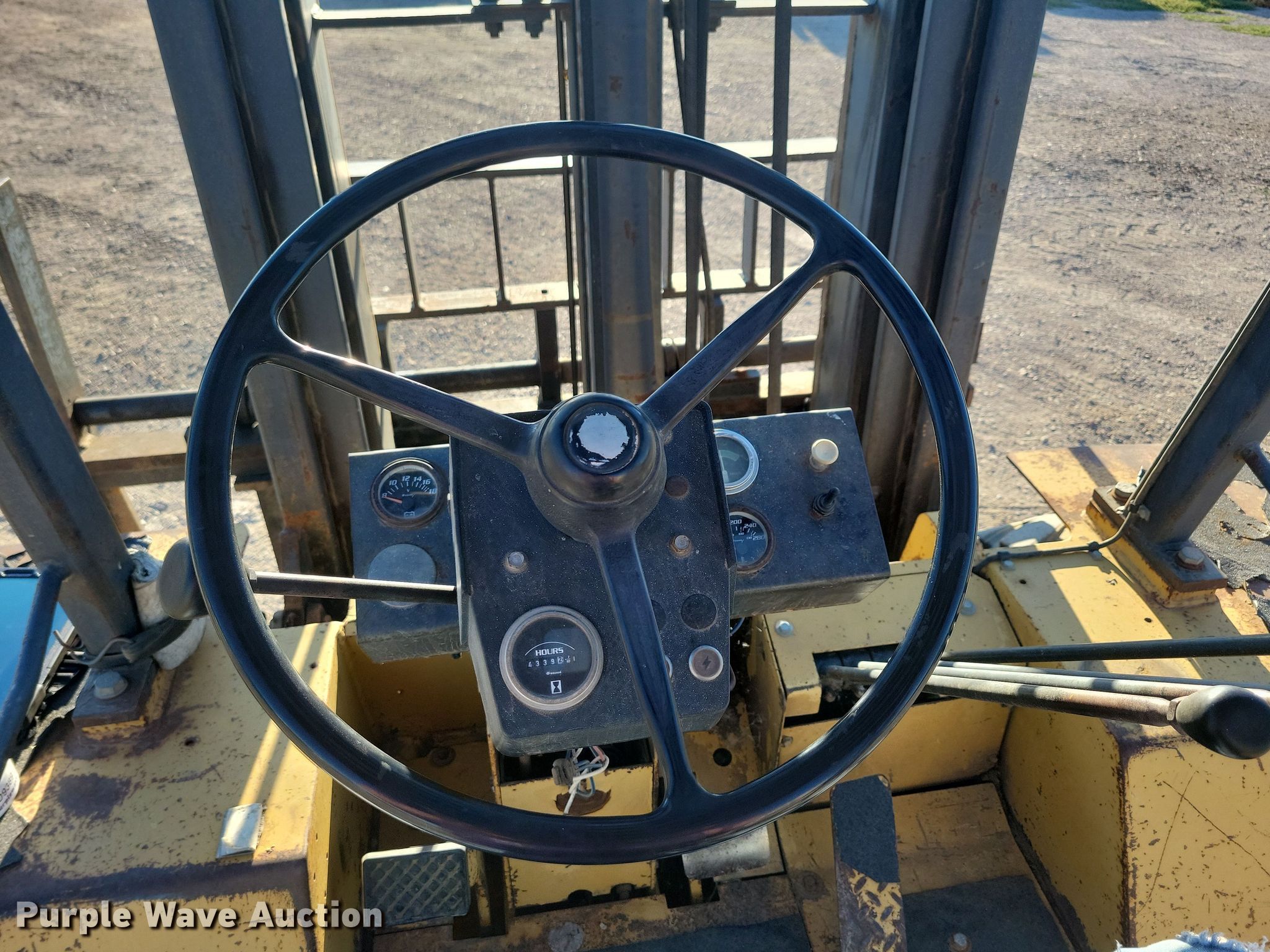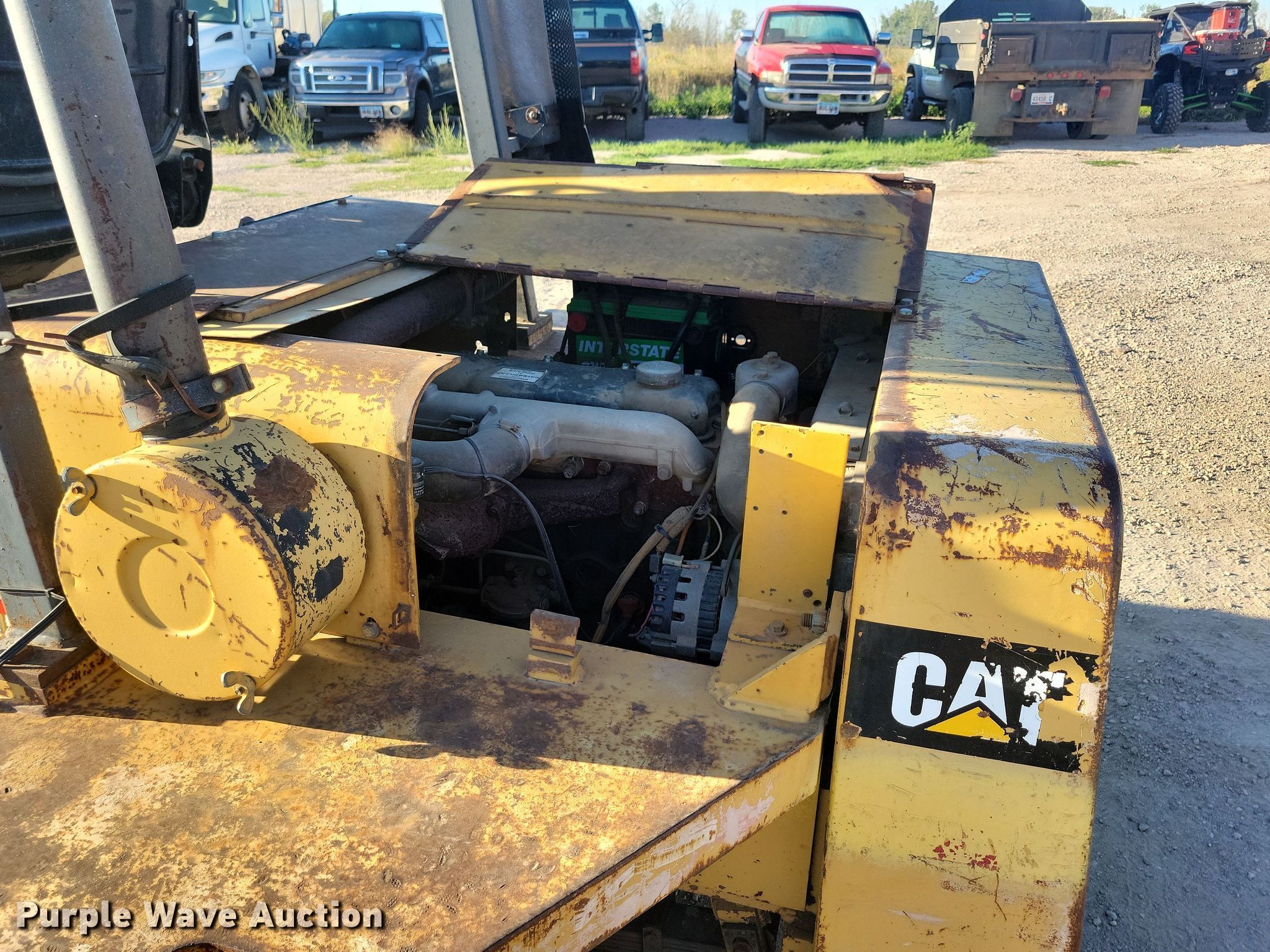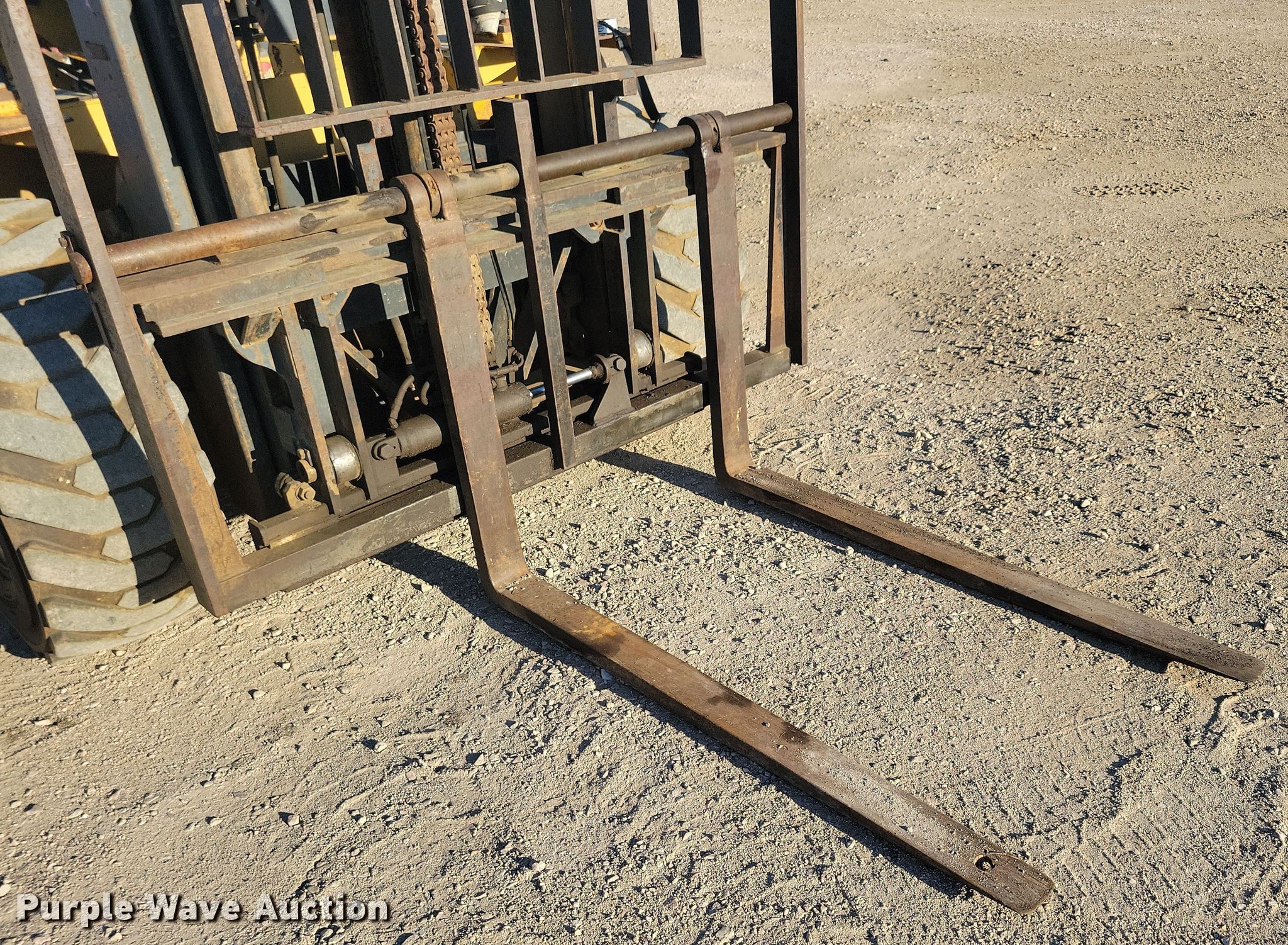 Caterpillar forklift. Hours: 4,339 on meter. Engine Perkins, Cylinders: 4, Fuel type: Diesel. Transmission Manual, 4F - 4R. Operators station OROPS, Canopy. Features Mast stages: 3, Side shift, Mast tilt, Fork length: 58". Tires Front: 15-19.5NHS, Rear: 12-16.5. Worthing, SD 57077