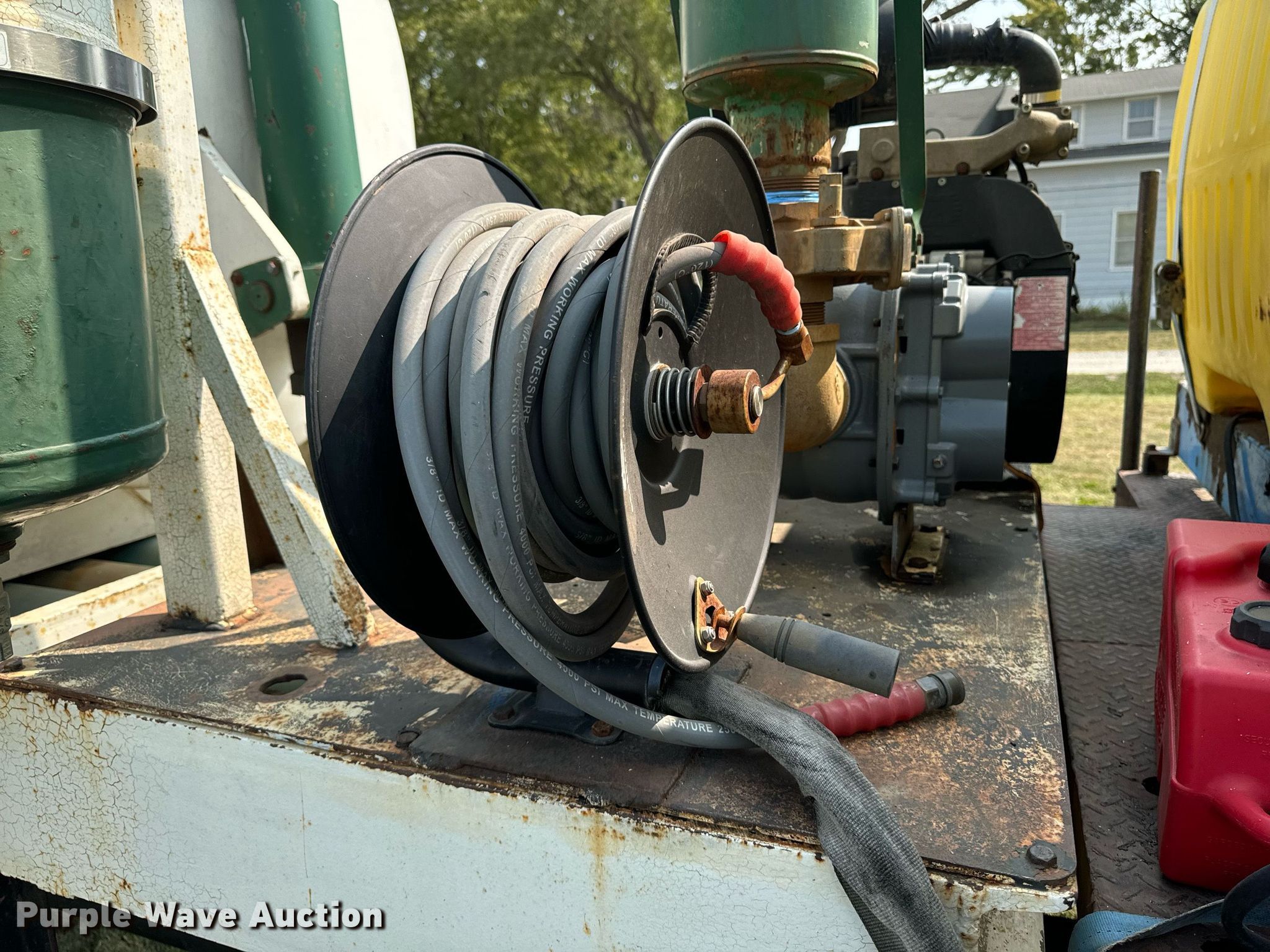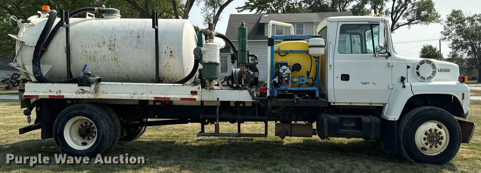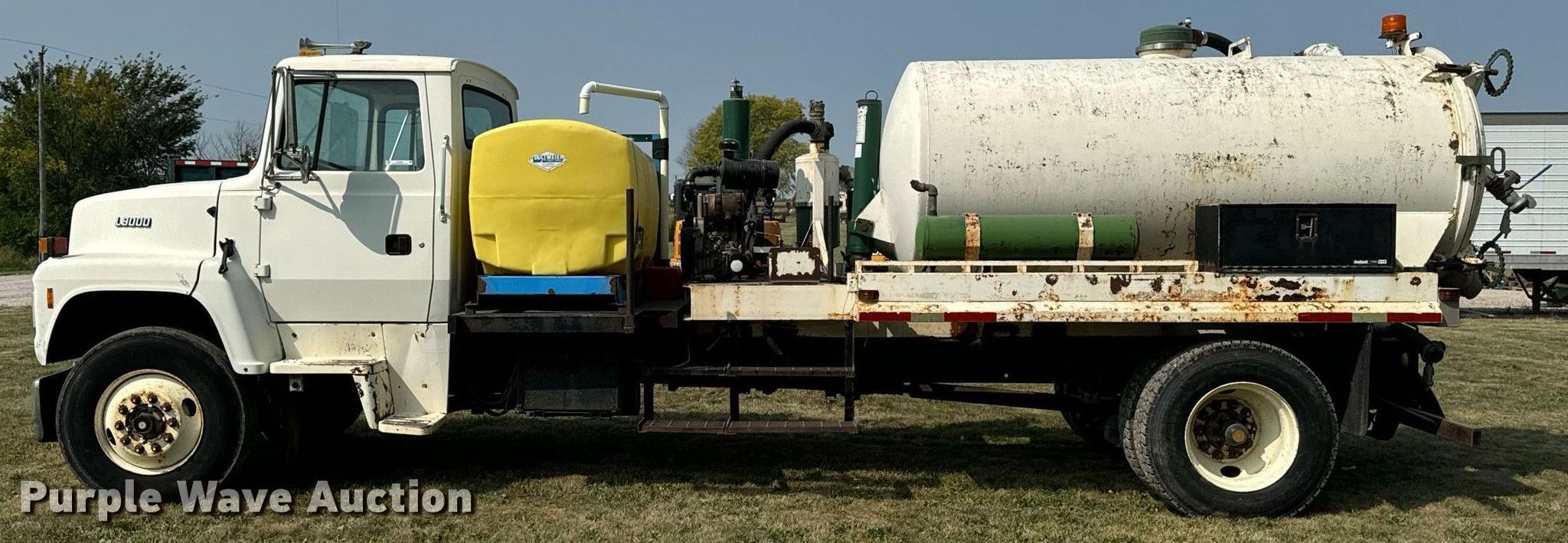1995 Ford L9000 hydrovac truck. Miles: 266,070 on odometer, VIN: 1FDXR90L5SVA19230. Engine Cummins L10, Displacement: 10.0L, Cylinders: 6, Fuel type: Diesel. Transmission Eaton Fuller RoadRanger, Manual, Speed: 9. Chassis Axles: Single, Suspension: Spring, Brakes: Air, GVWR: 33,000 lbs. Interior AC, Heat, Brake controller. Features Tank bed Capacity: 1,200 gallons, Rear manway, Rear outlet: 6", Engine Predator, Displacement: 670 cc, Cylinders: 2, Fuel type: Gas, Water pump Cat Pumps, Serial: 5CP3120G1, Vacuum pump Howden Roots, Serial: 2311A59839. Tires Front: 11R22.5, Rear: 295/75R22.5. Notes AC compressor belt removed. Pursuant to Iowa law, Purple Wave will not be collecting sales taxes on any of the purchases made in this business liquidation auction. Iowa title. Mileage has not been verified. Exempt will be written in the odometer disclosure on the title. Title distribution may be delayed up to 14 days from verification of funds. Jackson Creek Enterprises Retirement - Open Inspection October 10. Allerton, IA 50008