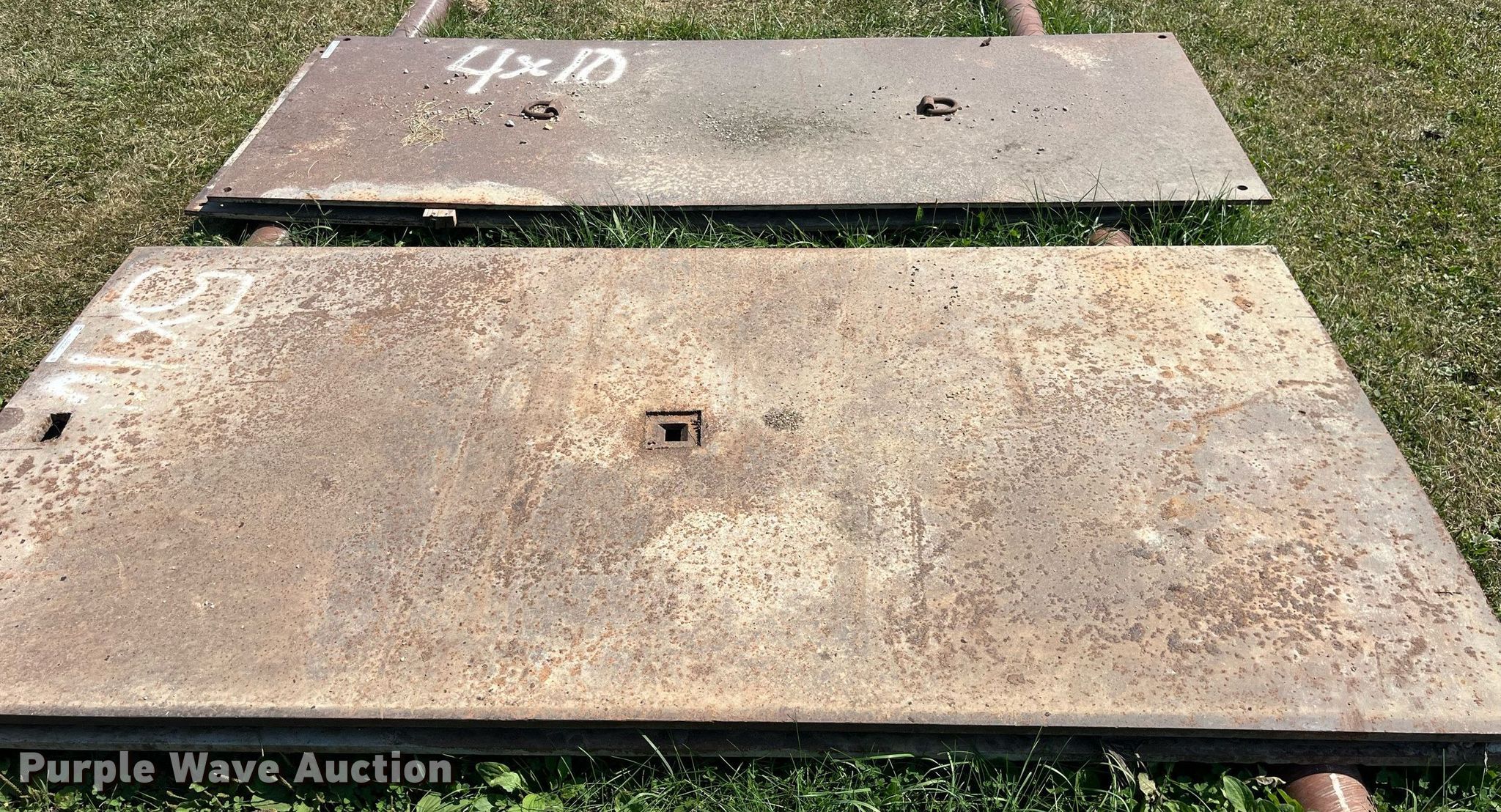 (2) steel road planks. 5' L x 10' W x 1" H. Pursuant to Iowa law, Purple Wave will not be collecting sales taxes on any of the purchases made in this business liquidation auction. Jackson Creek Enterprises Retirement - Open Inspection October 10. Allerton, IA 50008