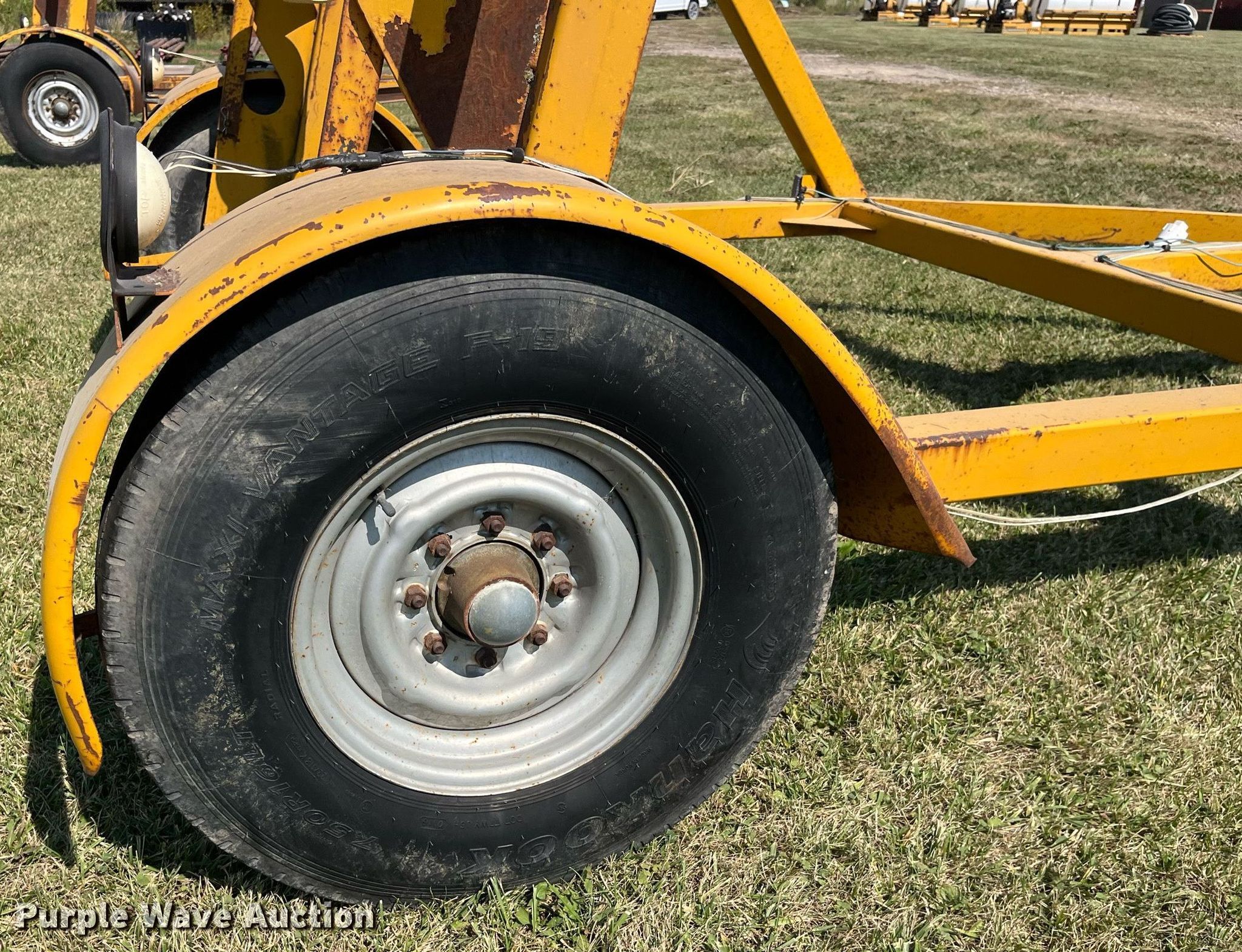 2000 reel trailer. Unit #: JC1. Dimensions Overall: 13' 9" L x 105" W. Features Reel: Single, Maximum reel width: 72". Chassis Hitch: Pintle, Landing gear: Single. Tires Size: 7.50R16. Pursuant to Iowa law, Purple Wave will not be collecting sales taxes on any of the purchases made in this business liquidation auction. Transfer of ownership documentation will be a bill of sale. Jackson Creek Enterprises Retirement - Open Inspection October 10. Allerton, IA 50008