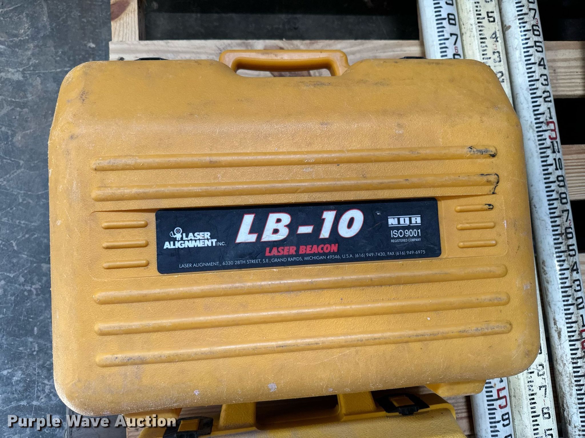 Purple Wave is selling a used Construction Laser in Iowa. This item is a 2001 Laser Alignment LB-10 laser beacon system with the following: Model 4970-44736, Measuring sticks, Tripod, Berger 200B transit