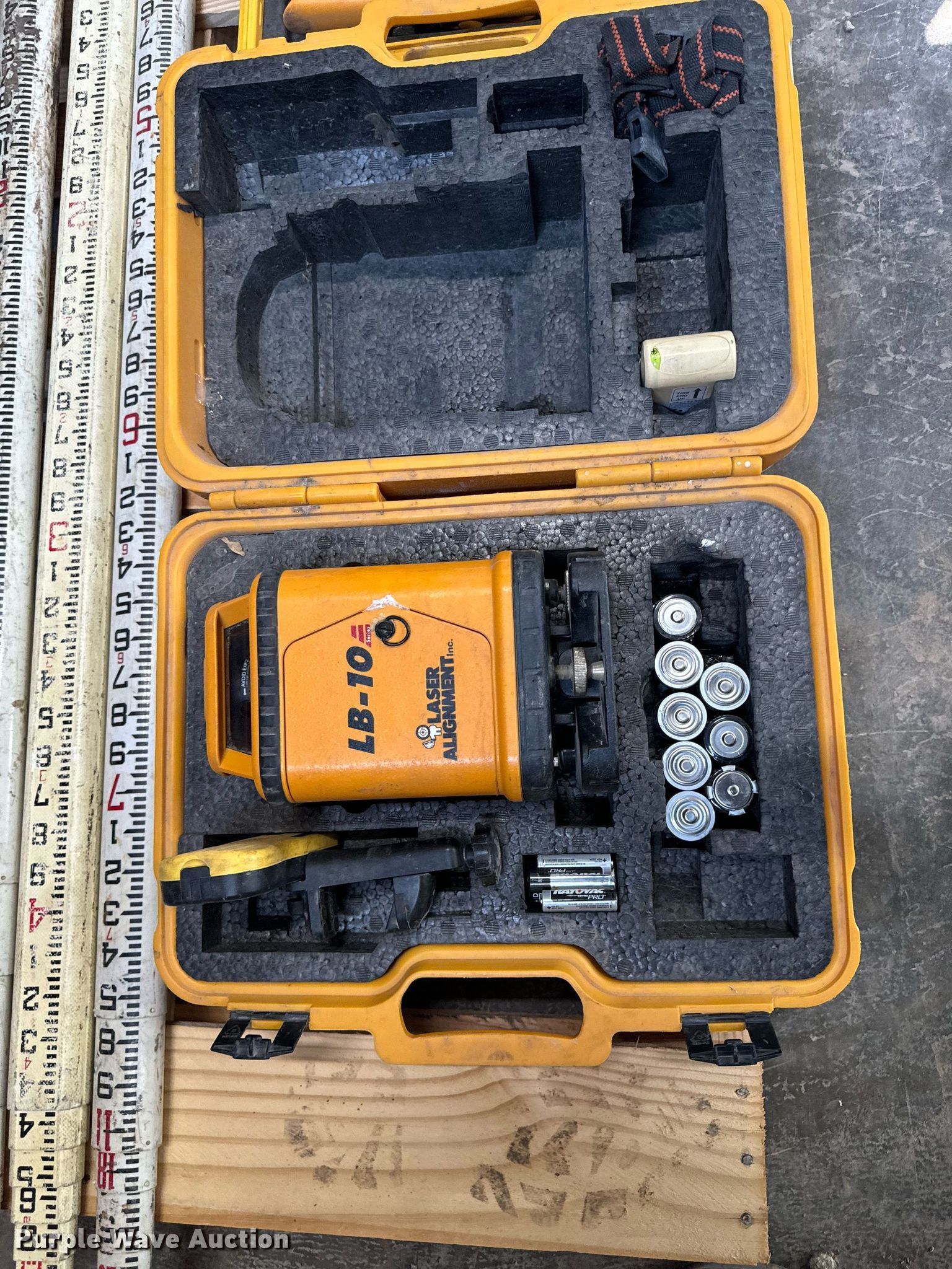 2001 Laser Alignment LB-10 laser beacon system. Model 4970-44736, Measuring sticks, Tripod, Berger 200B transit. Pursuant to Iowa law, Purple Wave will not be collecting sales taxes on any of the purchases made in this business liquidation auction. Jackson Creek Enterprises Retirement - Open Inspection October 10. Allerton, IA 50008