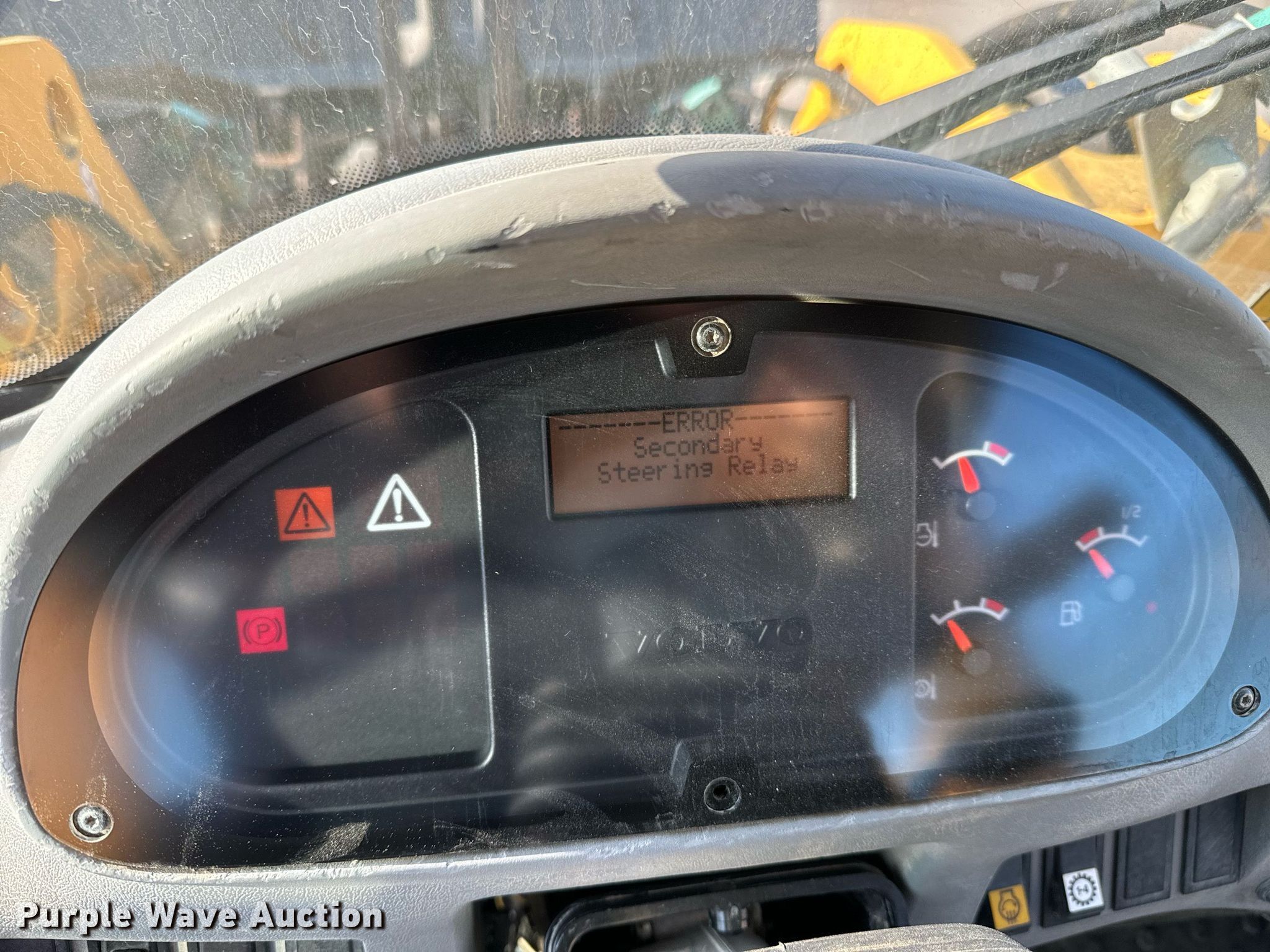 2006 Volvo L90E wheel loader. Hours: 6,015 on meter Actual hours unknown, Serial: L90EV67466. Engine Volvo D6D LAF2, Displacement: 5.702, Cylinders: 6, Fuel type: Diesel, HP: 160, kW: 119. Transmission Powershift, 4F - 4R. Operators station Enclosed cab, AC, Heat, Bucket controls: Two-lever, Ride control. Features Auxiliary hydraulics: Front, Quick coupler: Hydraulic, Counter weights, Bucket Width: 104", Cutting edge: Bolt-on. Tires Size: 20.5R25. Notes Hour meter replaced, Warning indicator: Secondary steering relay error, AC systems error, Glass cracked. Dondlinger & Sons Construction. Wichita, KS 67217