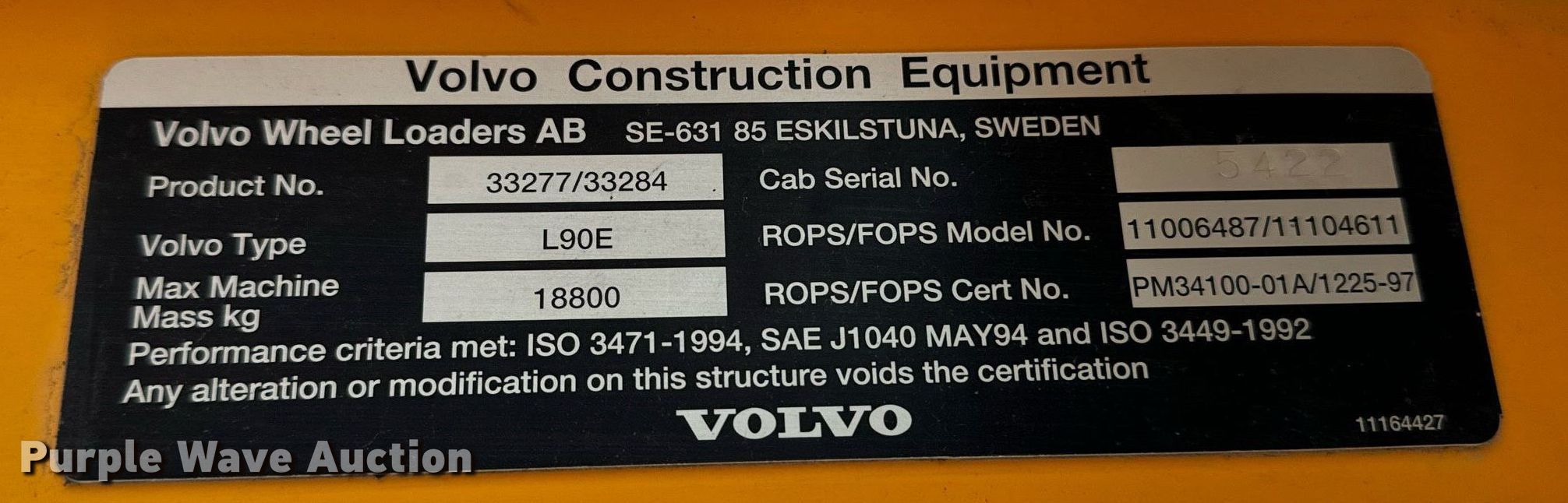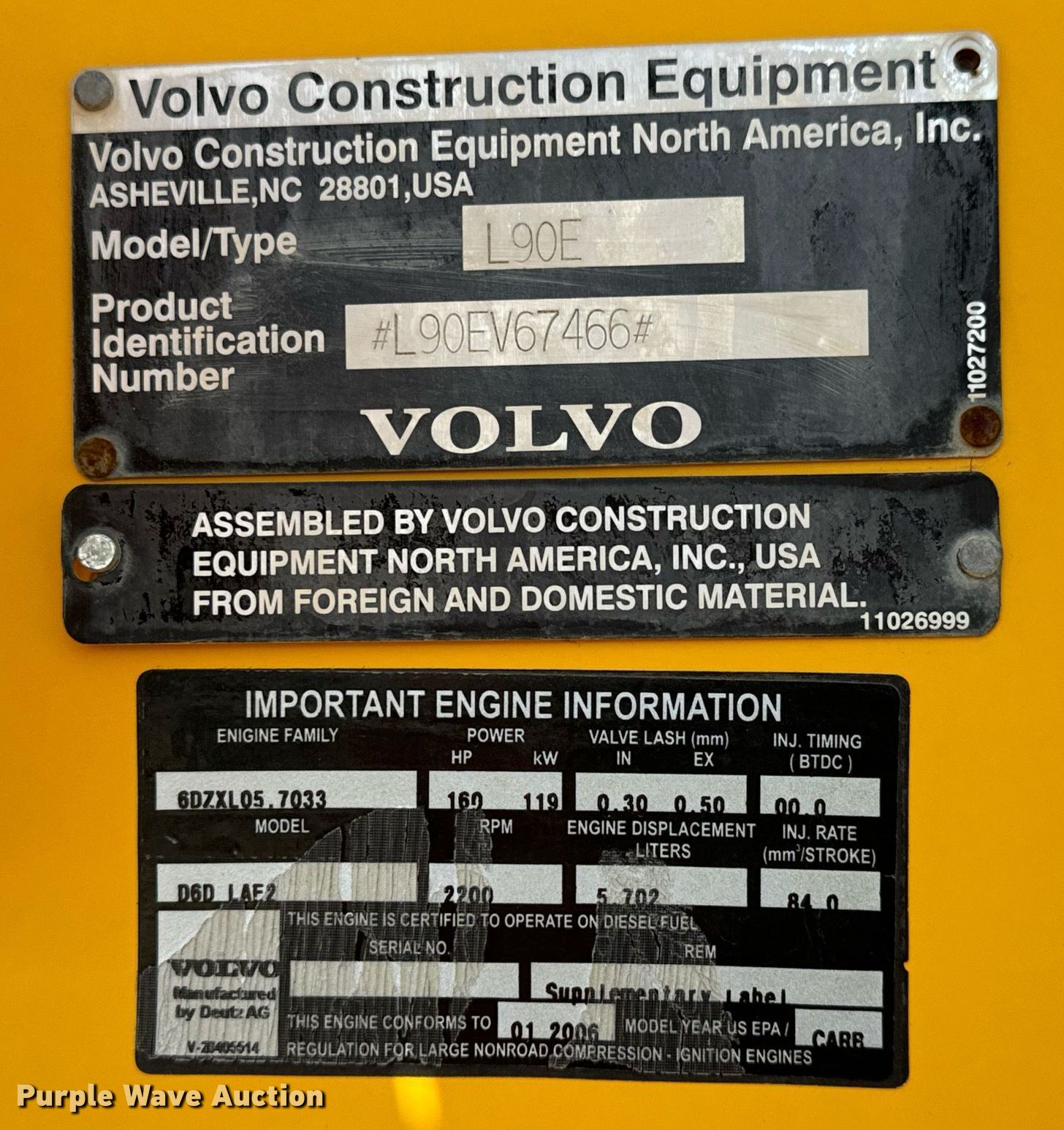 Purple Wave is selling a used Wheel Loader in Kansas. This item is a 2006 Volvo L90E wheel loader with the following: Hours: 6,015 on meter, Actual hours unknown, Serial: L90EV67466