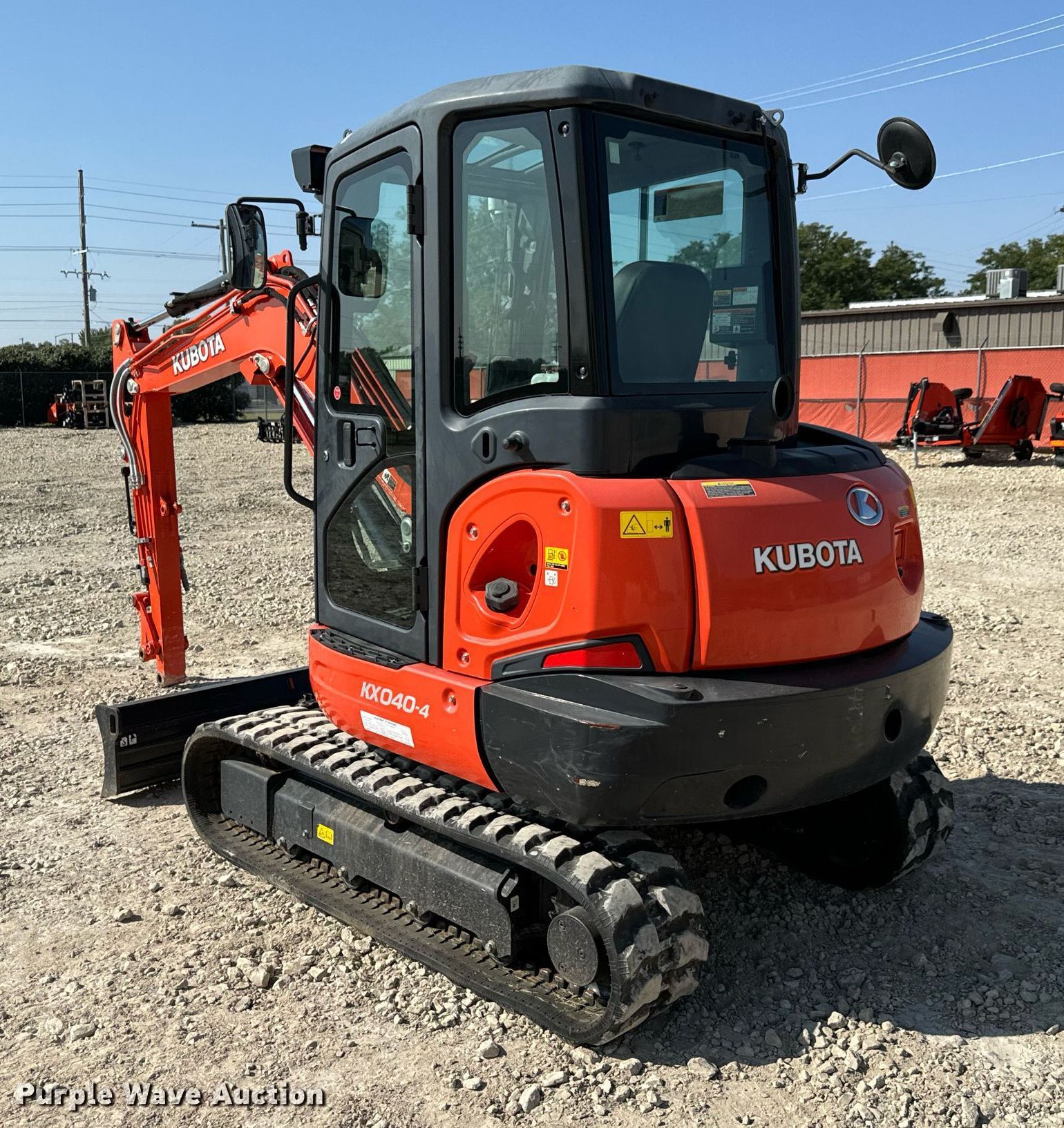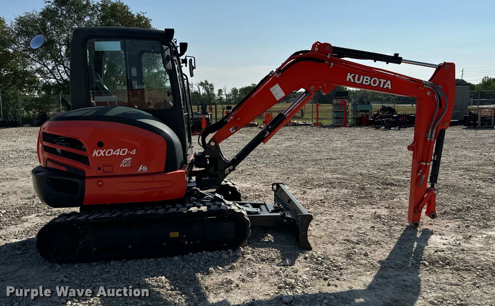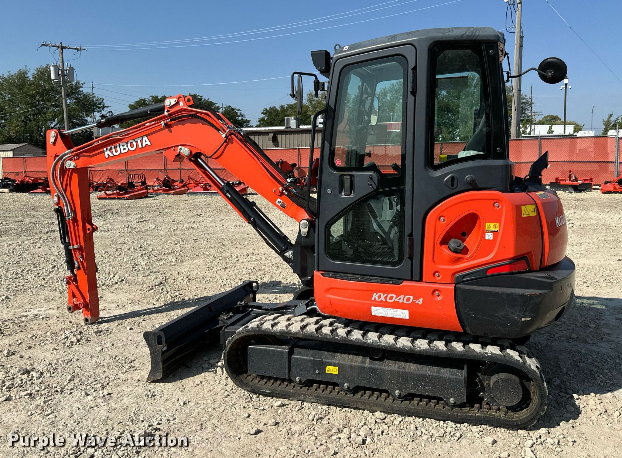 Purple Wave is selling a used Mini Excavator in Kansas. This item is a 2020 Kubota KX040-4 mini excavator with the following: Hours: 312 on meter, Serial: KBCDZ15CEL3G37558