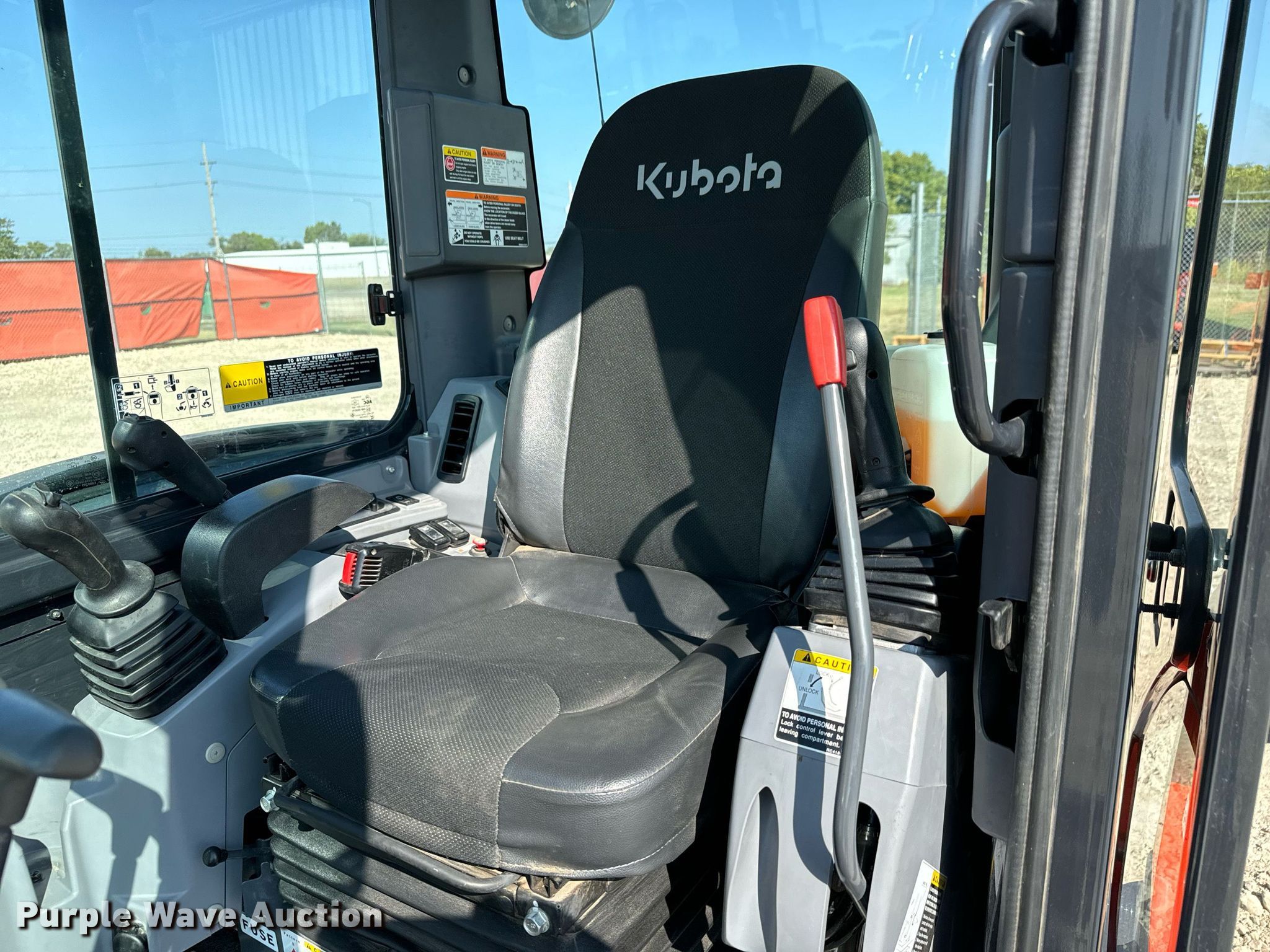 2020 Kubota KX040-4 mini excavator. Hours: 312 on meter, Serial: KBCDZ15CEL3G37558. Engine Kubota D1803-CR-T-EF03, Cylinders: 4, Fuel type: Diesel. Transmission Hydrostatic, Two speed travel. Operators station Enclosed cab, AC, Heat, Pattern changer. Features Auxiliary hydraulics, Backfill blade Width: 67", Boom Swing, Stick Stick length: 64". Tracks Width: 13.5", Rubber. Notes Warning indicator: Regen, No manufacturer's warranty. Salina, KS 67401