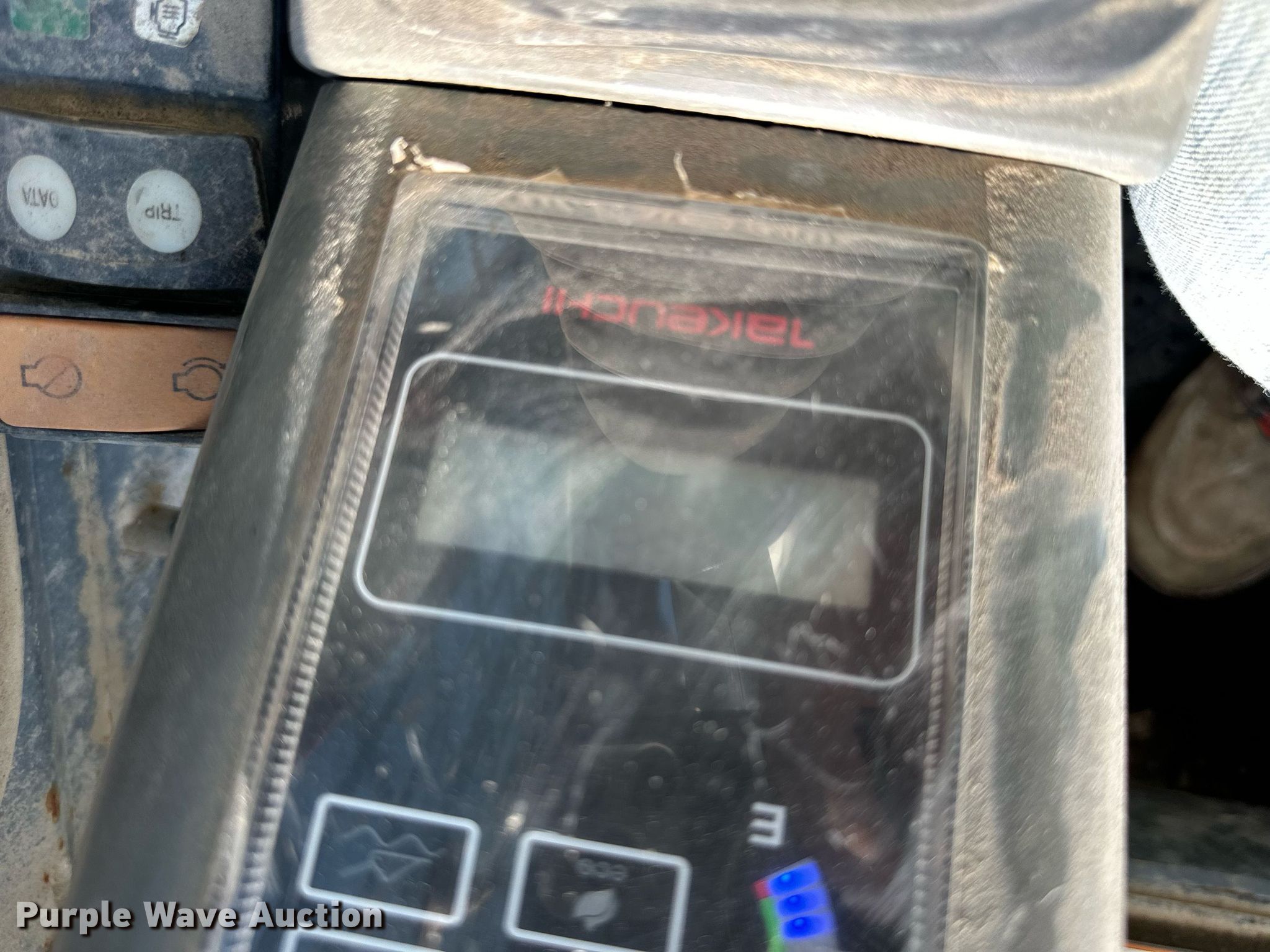 2015 Takeuchi TL10 tracked skid steer loader. Hours: Unknown, Serial: 201001755. Engine Kubota, Displacement: 3.8L, Cylinders: 4, Fuel type: Diesel. Transmission Hydrostatic, Two speed travel. Operators station Enclosed cab, AC, Heat, Bucket control: Hand. Features Auxiliary hydraulics, Auxiliary electrical outlet, Quick coupler: Hydraulic, Bucket Width: 78", Teeth: Bolt-on. Tracks Width: 17.5". Notes Quick coupler issues, hydraulic leak. Sunflower Paving Inc.. Topeka, KS 66608