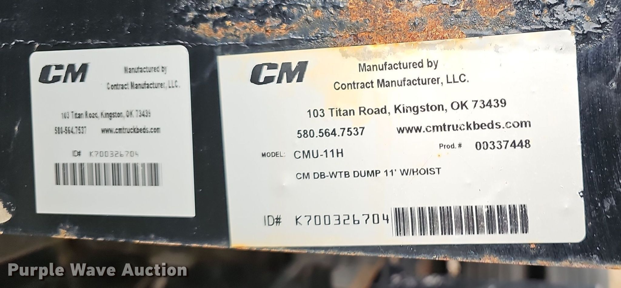 2021 Chevrolet GM515 dump truck. Miles: 40,965 on odometer, VIN: 1HTKJPVM1MH765657. Engine Displacement: 6.6L, Cylinders: 8, Fuel type: Diesel. Transmission Automatic, Four wheel drive. Chassis GVWR: 22,000 lbs. Interior AC, Heat, Power windows, Power locks, Cruise control, Heated mirrors, Backup camera. Features Dump bed CM CMU-11H, Dimension: 11' L x 98" W, Side height: 21", Side board height: 8". Tires Size: 225/70R19.5. Notes Non-operational back up camera. Missouri title. Title has a lien that will be released following the close of the auction. Title distribution may be delayed up to 30 days from verification of funds. Rauch's Lawn & Landscaping LLC. Rogersville, MO 65742