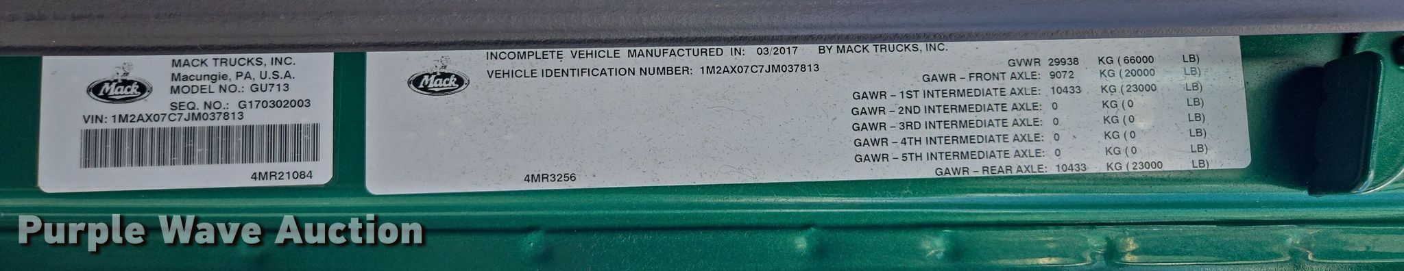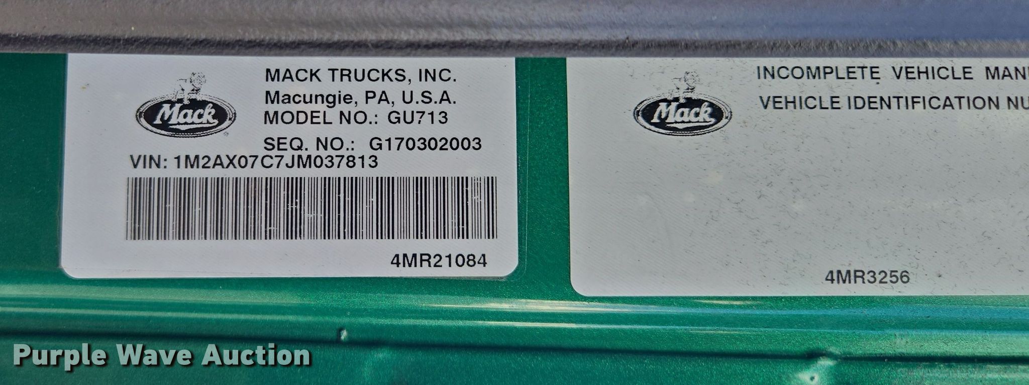 2018 Mack GU713 dump truck | SOLD! October 17 Construction Equipment Auction