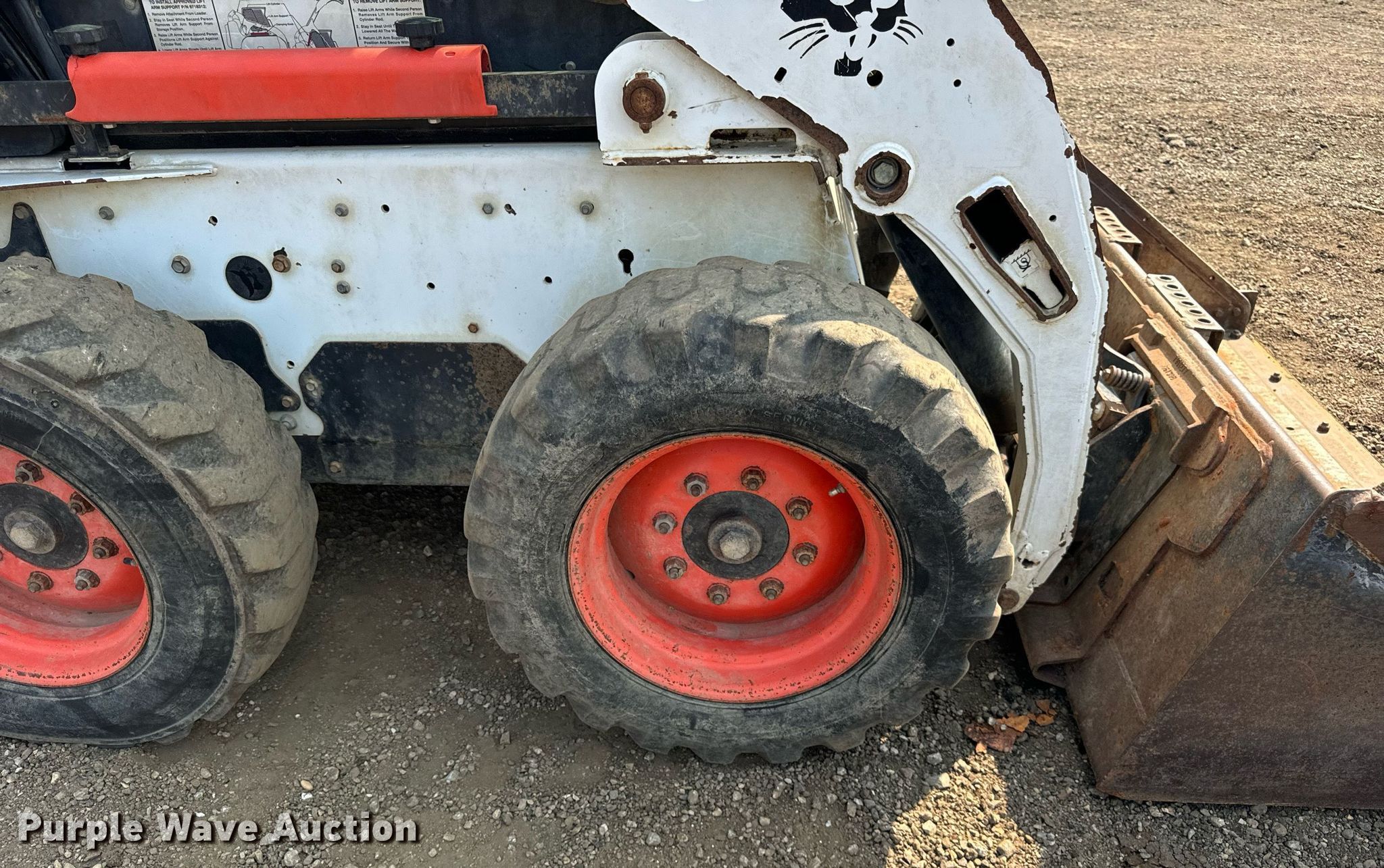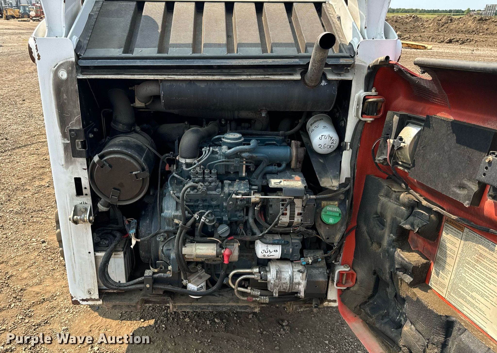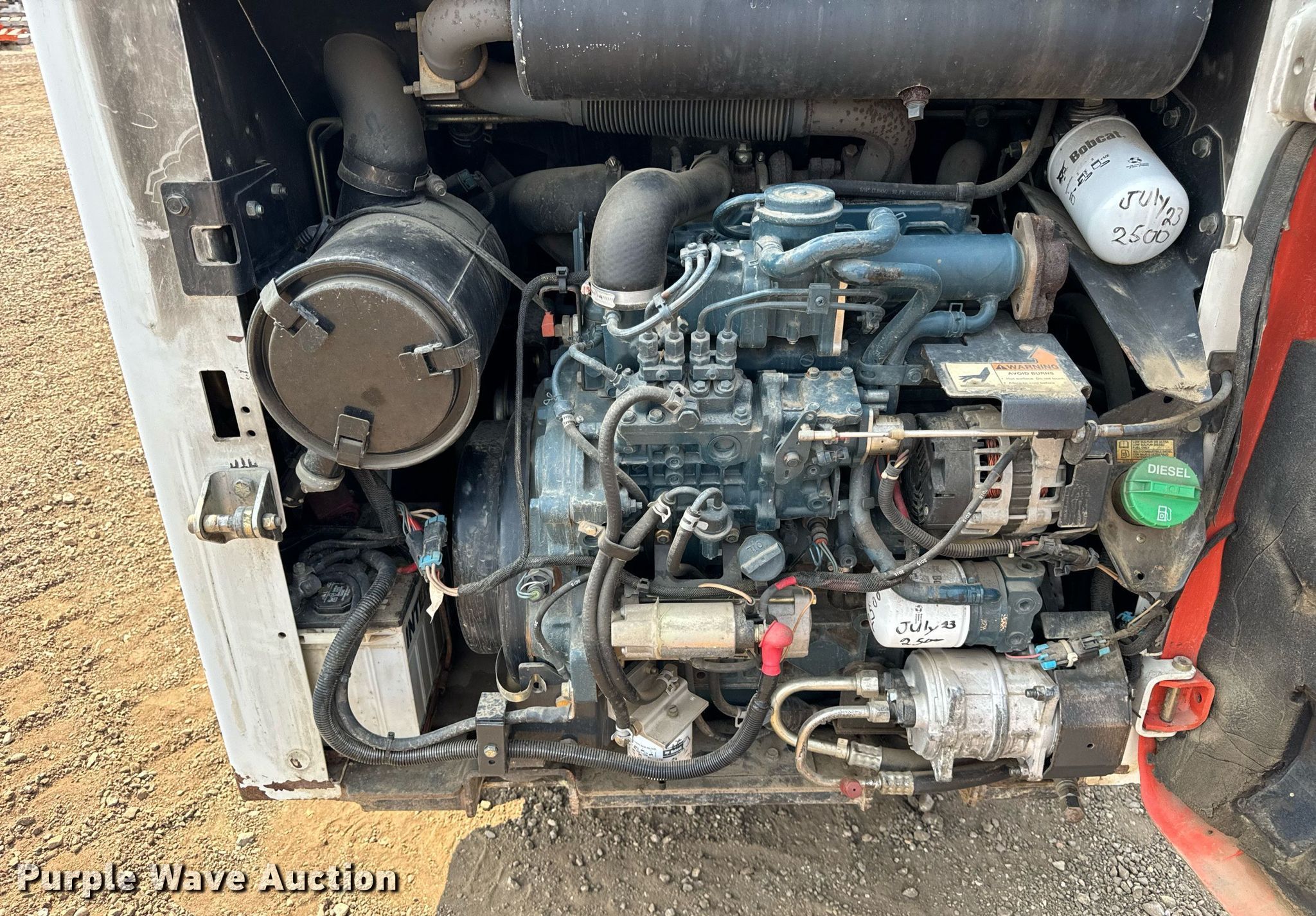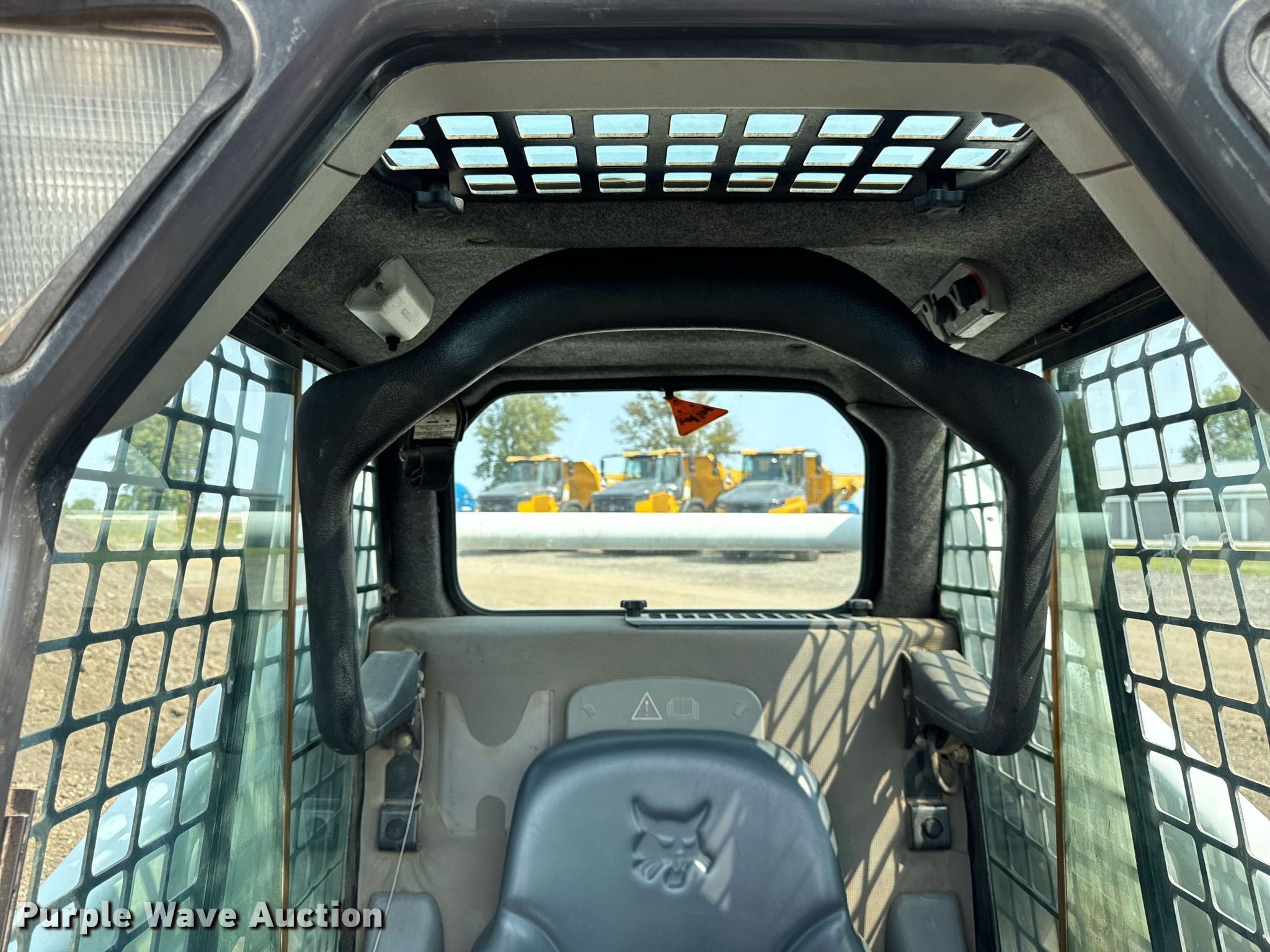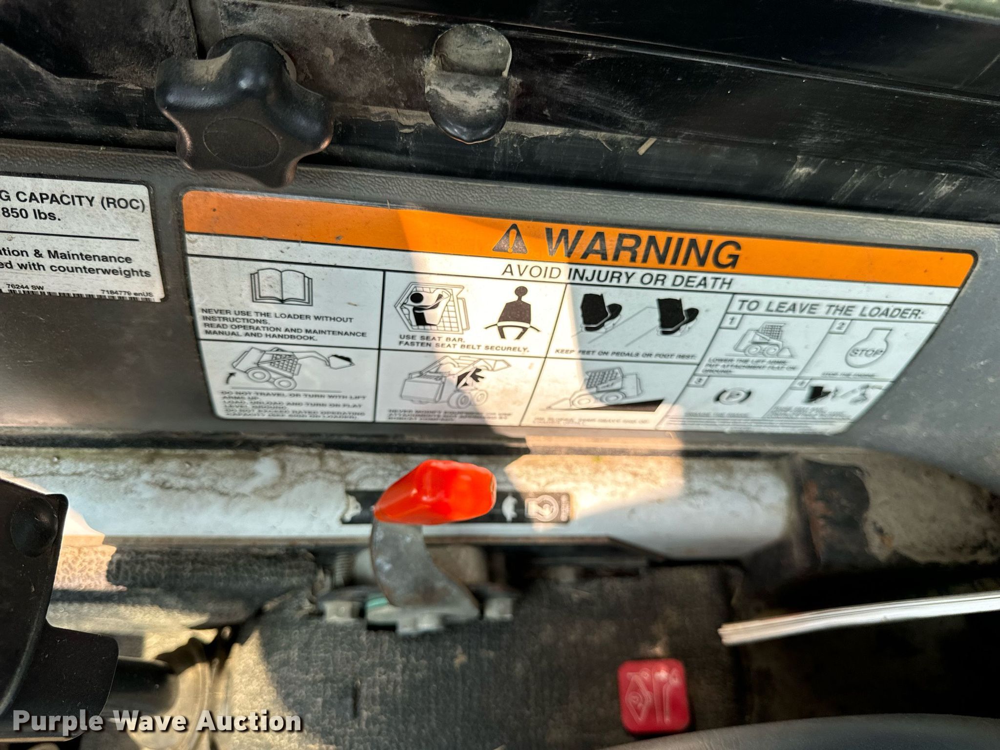 2011 Bobcat S185 skid steer loader. Hours: 2,606 on meter, Serial: A3L939727. Engine Kubota V2607-DI-T-EU4, Displacement: 2.6L, Cylinders: 4, Fuel type: Diesel. Transmission Hydrostatic, Two speed travel. Operators station Enclosed cab, AC, Heat, Bucket control: Foot, Electronic Monitoring System panel. Features Auxiliary hydraulics, Quick coupler: Hydraulic, Bucket Width: 68", Cutting edge: Bolt-on. Tires Size: 10-16.5. Notes Non-operational right drive motor. Pekin, IL 61554