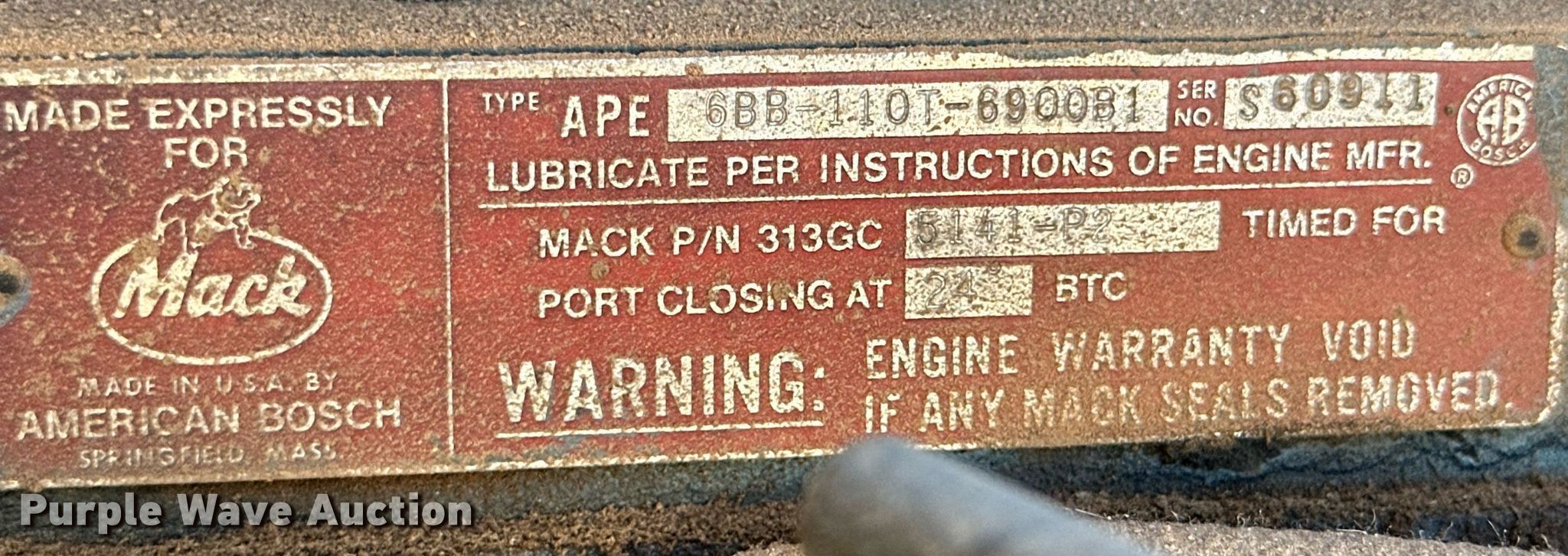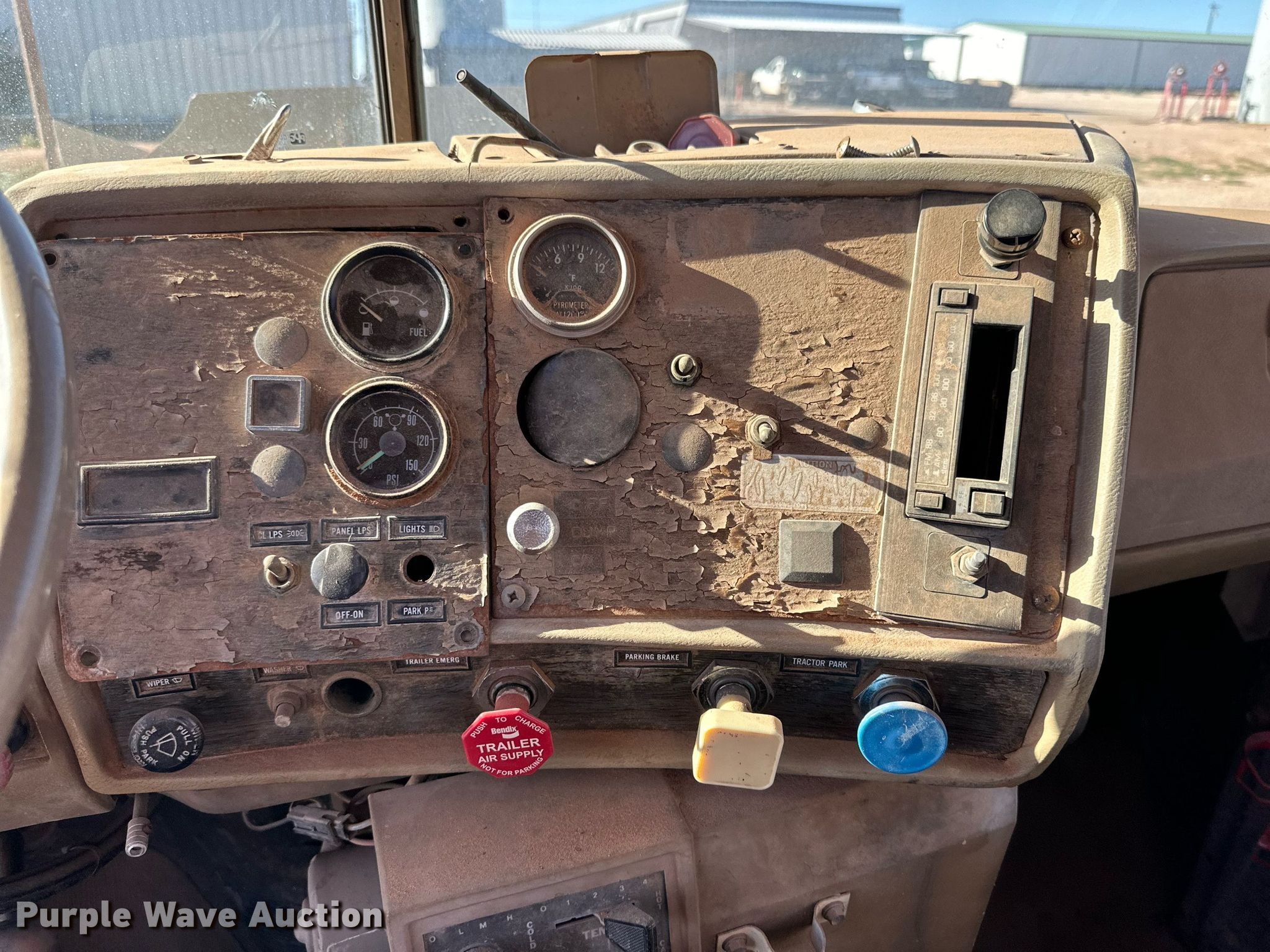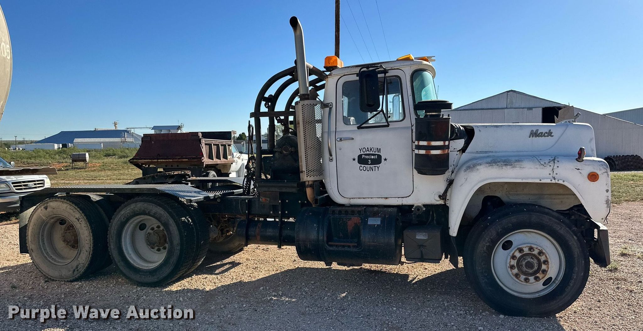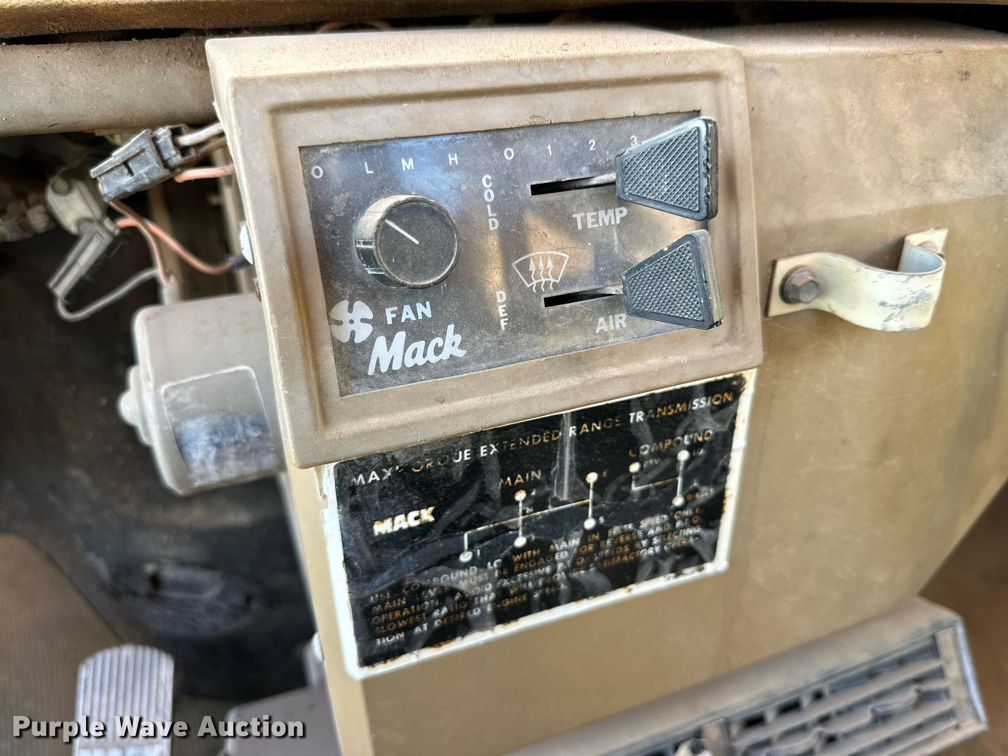 1982 Mack R686ST winch truck. Miles: 254,707 on odometer, Hours: 7,388 on meter, VIN: 1M2N179Y6CA078832. Engine Displacement: 11.0L, Cylinders: 6, Fuel type: Diesel. Transmission Mack Twin Stick, Manual, Speed: 10. Chassis Axles: Tandem, Brakes: Air. Interior AC, Heat. Features Deck plate: Steel, Winch Tulsa, Fifth wheel type: Fixed, Fuel tank: Dual. Tires Size: 11R24.5. Notes Dead battery. Texas title. Title distribution may be delayed up to 14 days from verification of funds. Yoakum County Plains Precinct 3. Plains, TX 79355