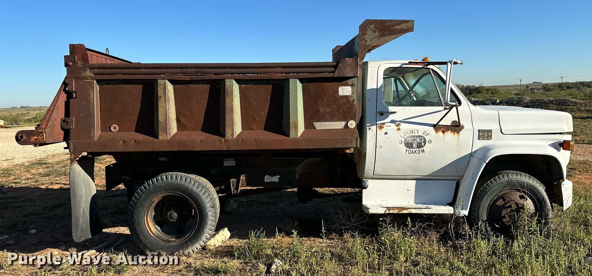 Purple Wave is selling a used Construction Dump Truck in Texas. This item is a 1978 Chevrolet C60 dump truck with the following: Miles: 56,492 on odometer, Actual mileage unknown, VIN: CCE618V148381