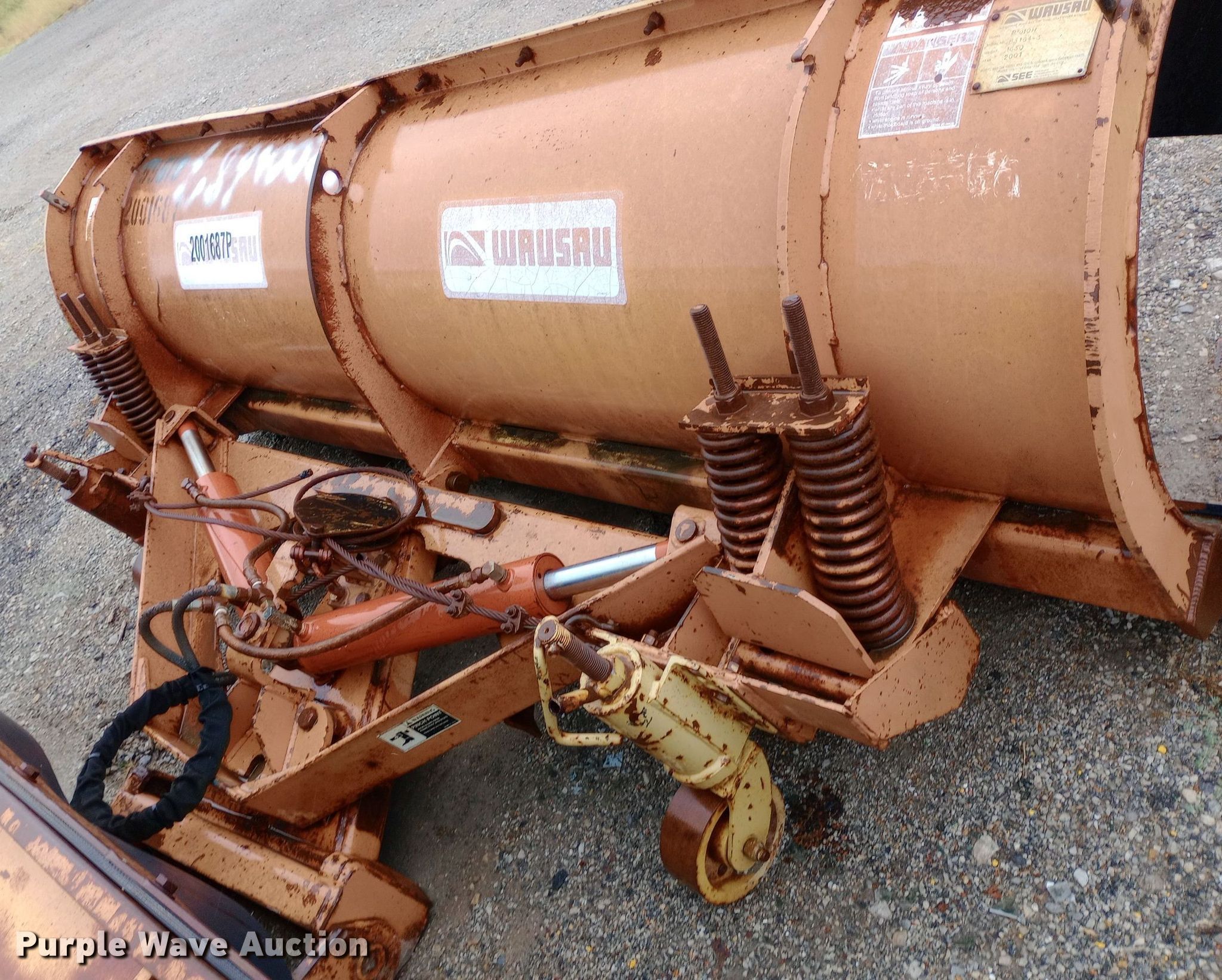 Purple Wave is selling a used Truck Part and Attach. in Oklahoma. This item is a Wausau 10' W snow plow with the following: Unit #: 2001687, Mounting frame included, Condition will vary