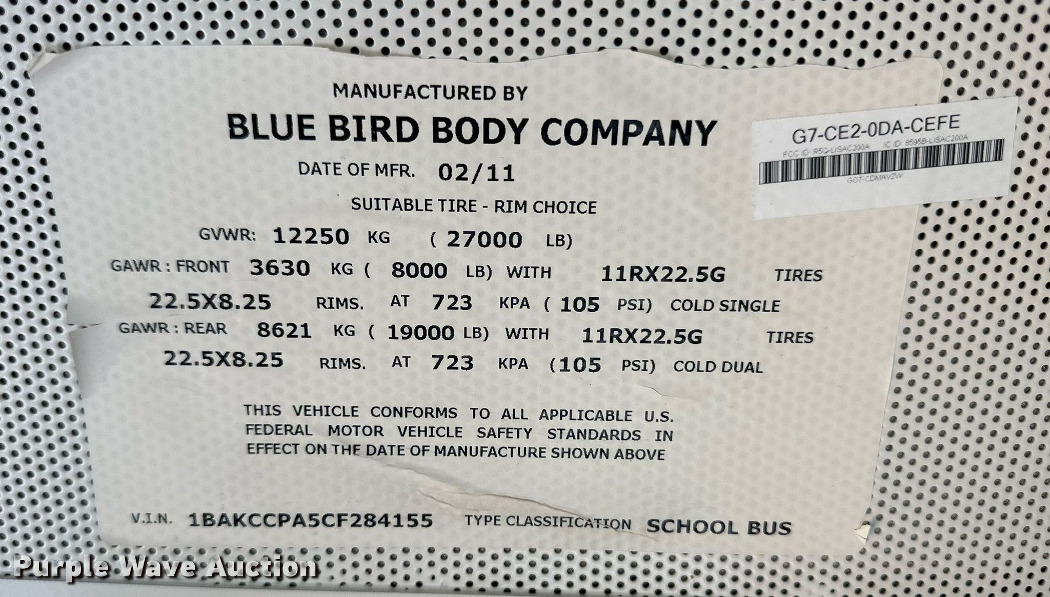 • VIN: 1BAKCCPA5CF284155