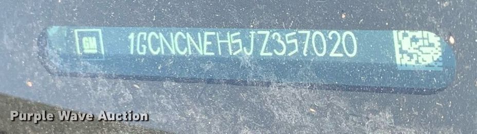 2018 Chevrolet Silverado 1500 pickup truck. Miles: 51,881 on odometer, VIN: 1GCNCNEH5JZ357020, Unit #: 5569. Engine Displacement: 4.3L V6, Cylinders: 6, Fuel type: Gas. Transmission Automatic. Interior AC, Heat, Power locks, Cruise control, Backup camera, Light bar. Tires Size: 255/70R17. Notes Decals to be removed prior to auction, Contents not included, Dash warning indicator: Check engine, Traction control, Dead battery, Engine issues, misfire. Texas title. Title distribution may be delayed up to 14 days from verification of funds. Center, TX 75935