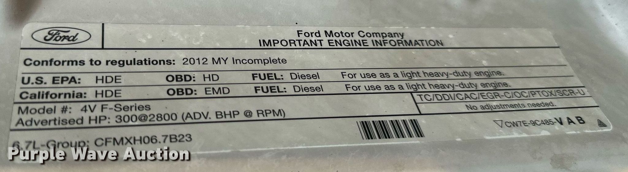 2012 Ford F450 Super Duty XL dump truck. Miles: 42,178 on odometer, VIN: 1FDUF4HTXCEA41647. Engine Displacement: 6.7L, Cylinders: 8, Fuel type: Diesel. Transmission Automatic, Four wheel drive. Interior AC, Heat, Heated mirrors, Power windows, Power locks, Cruise control. Features Dump bed Make: Beau Roc, Model: ULT 9' L x 7' W x 11" H, Tarp, Dump bed camera, Leo 9' snow plow. Tires Size: 225/70R19.5. Minnesota title. Title distribution may be delayed up to 14 days from verification of funds. City Of Arden Hills. Arden Hills, MN 55112