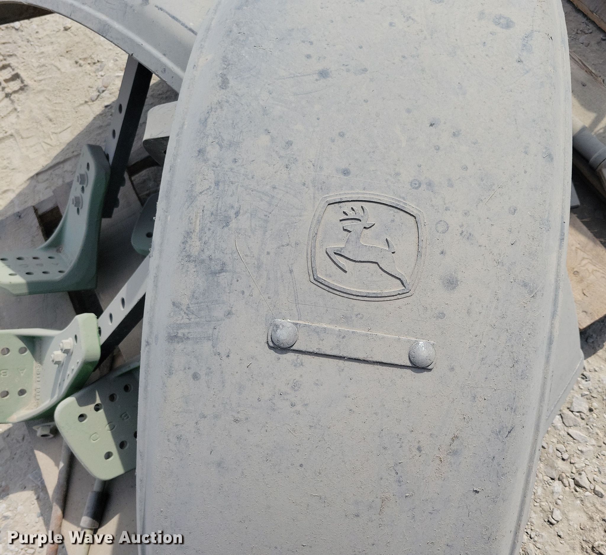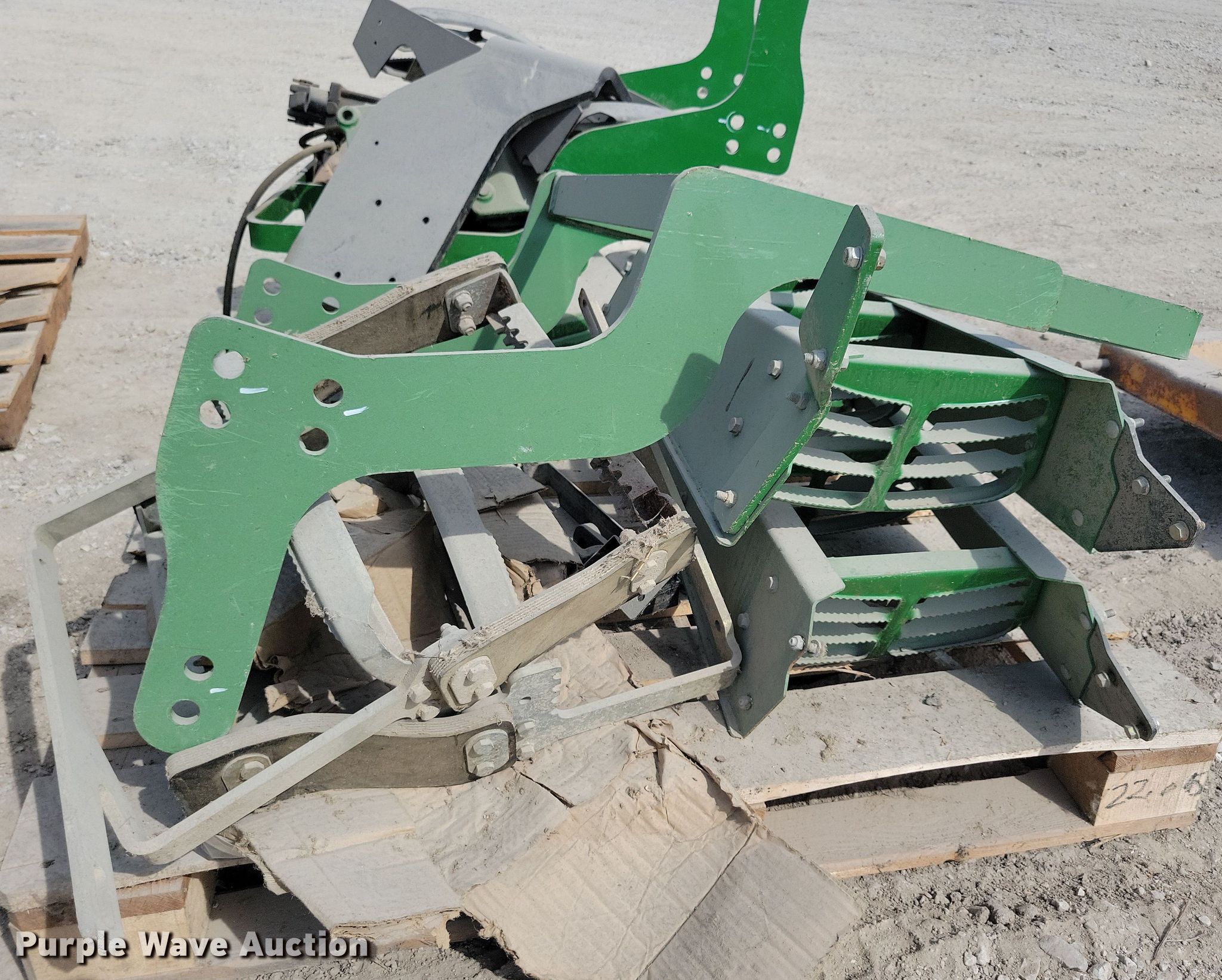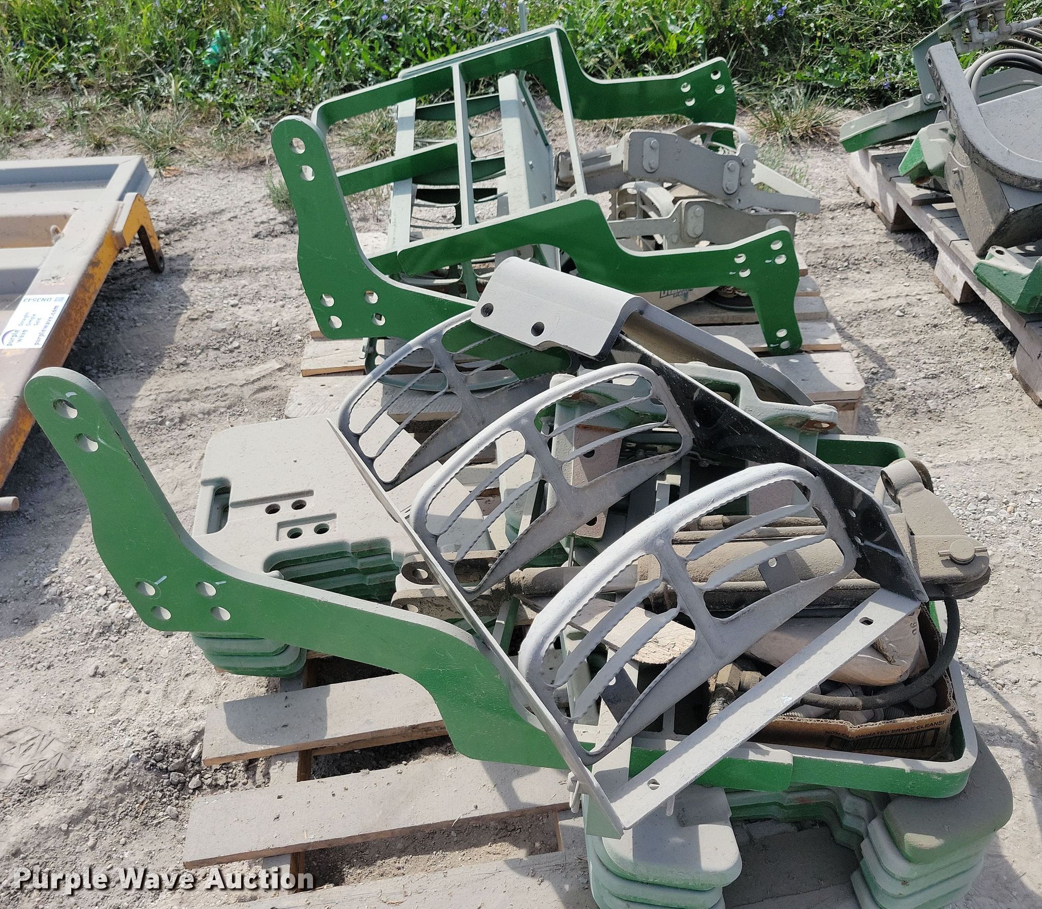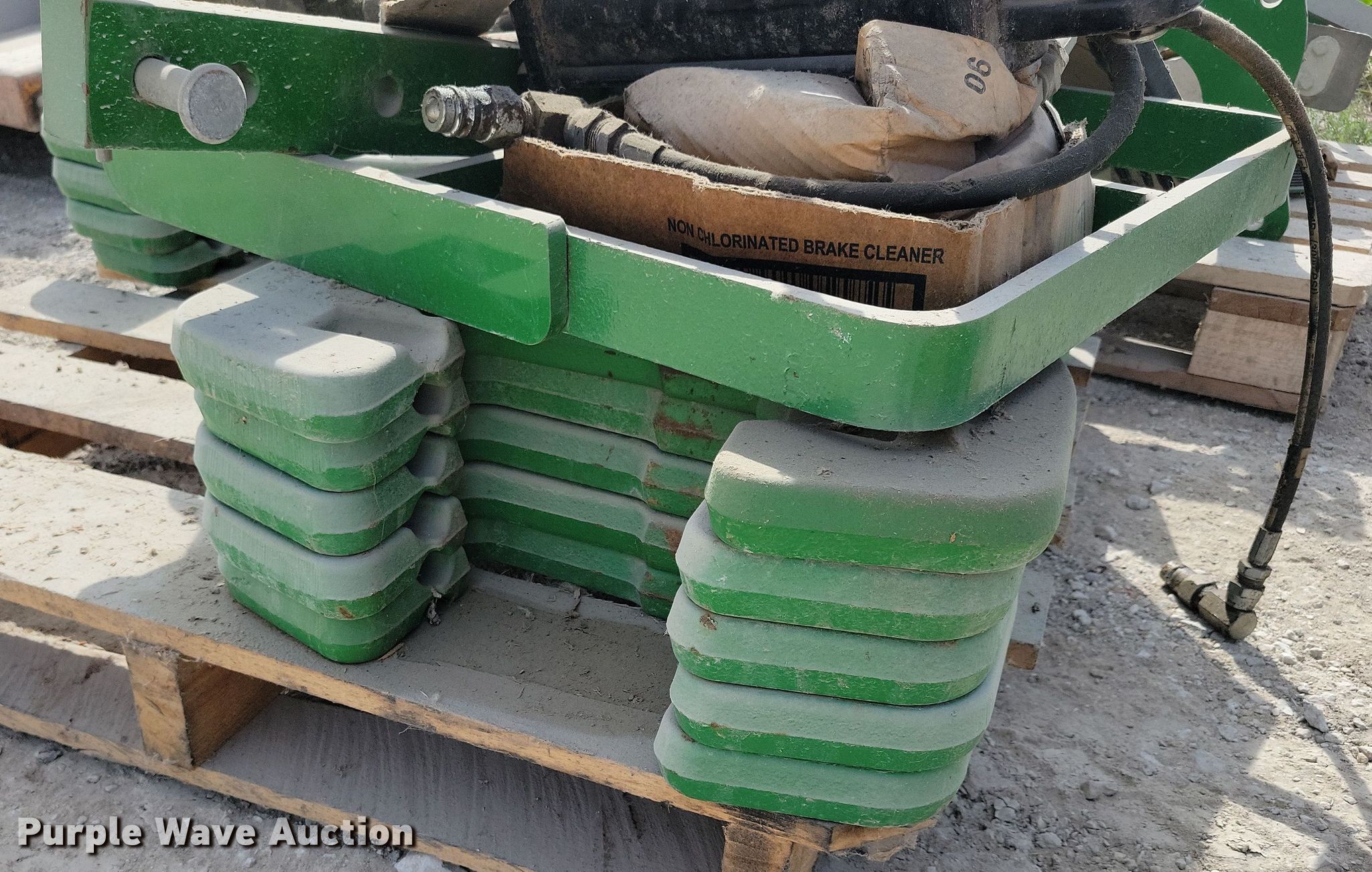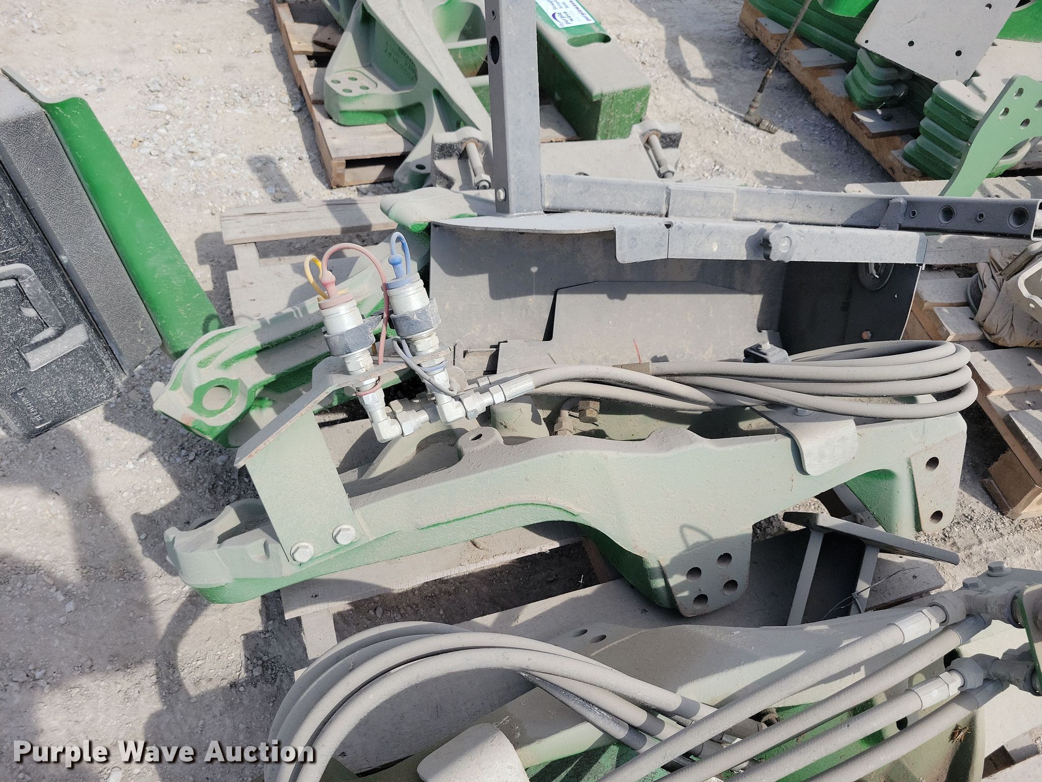 Purple Wave is selling a used Ag Tractor Loader or Attach. in Iowa. This item is a John Deere tractor parts with the following: Weight brackets, Front grill brackets, 14 to 47 kg suitcase weights, Steps, Loader brackets, Hydraulic, (4) front fenders