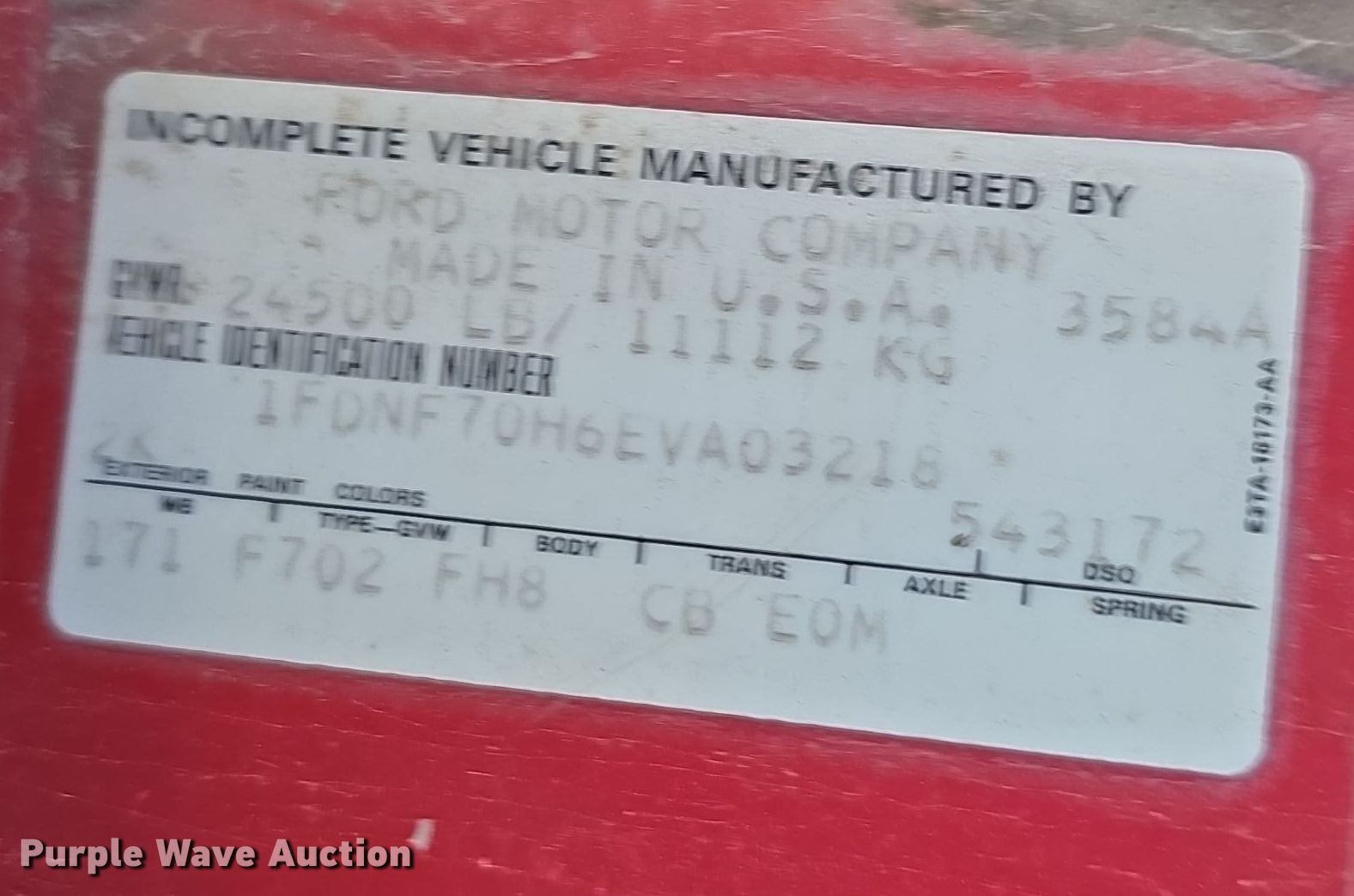 • VIN: 1FDNF70H6EVA03218