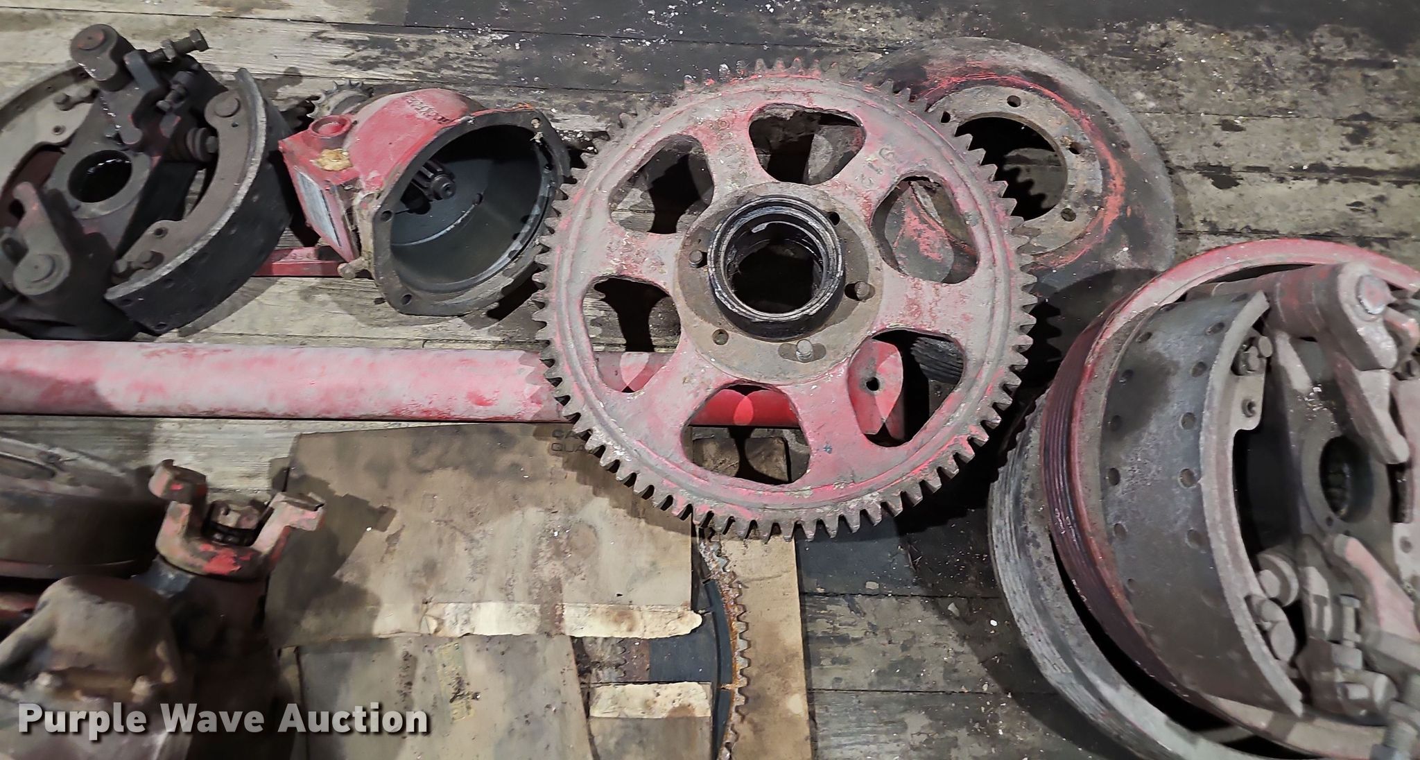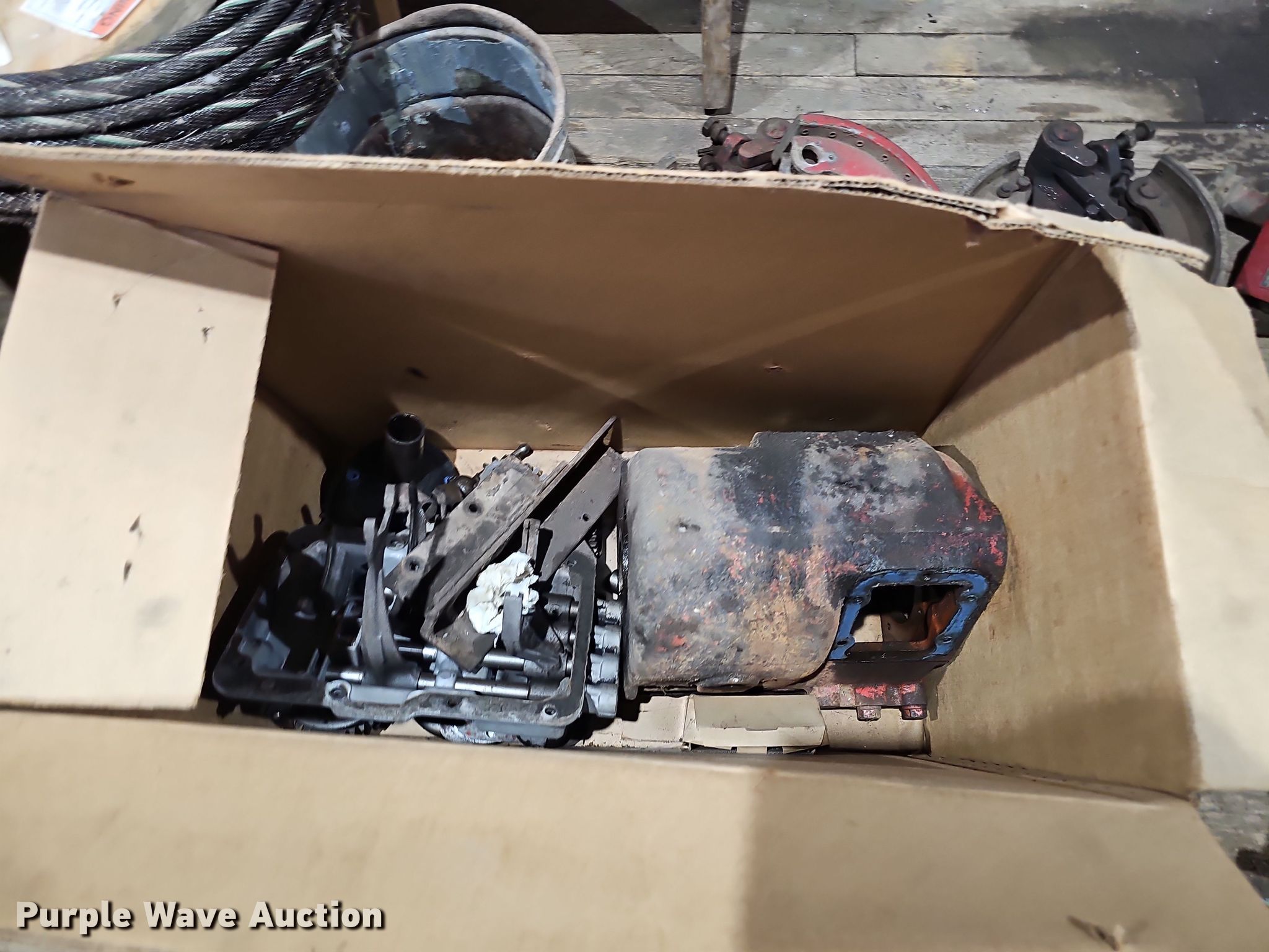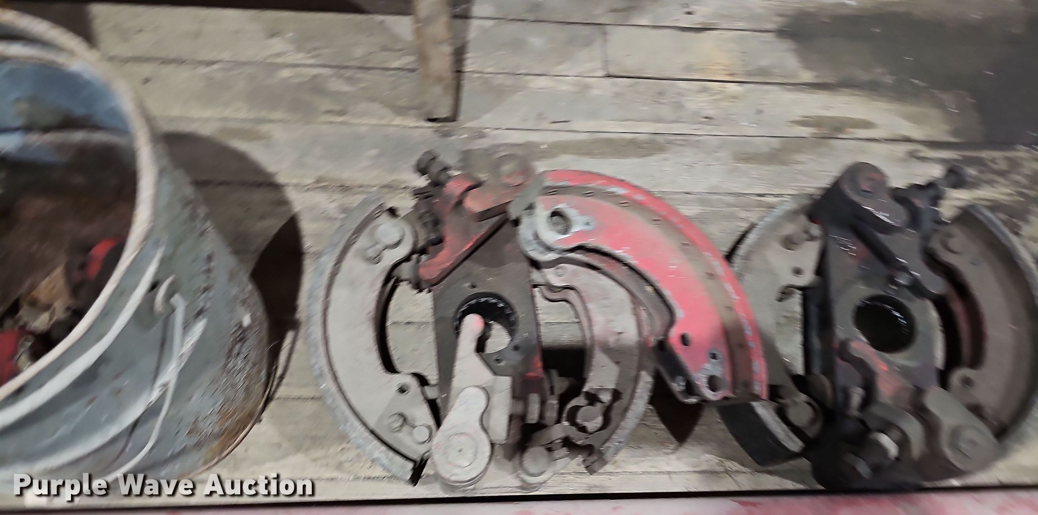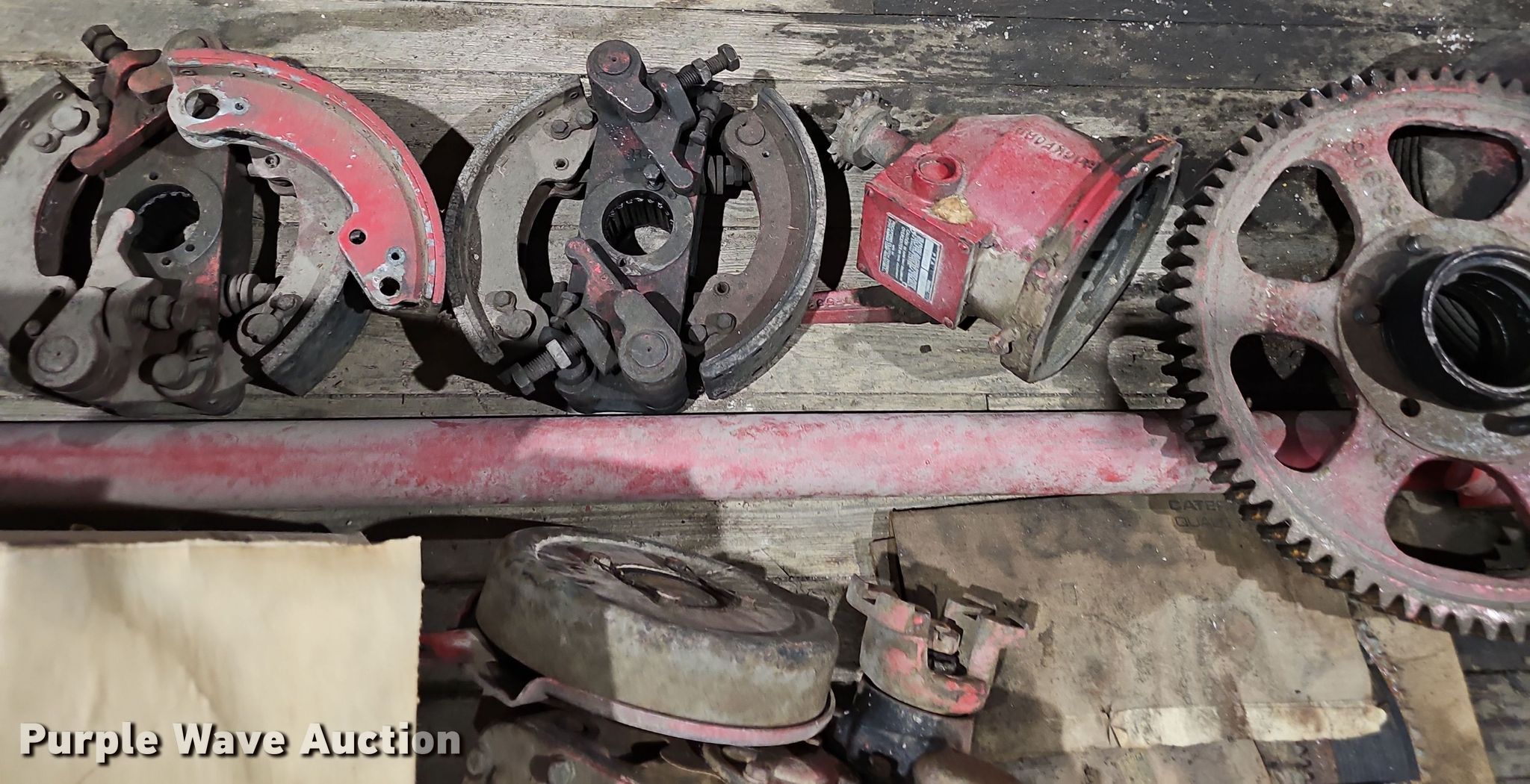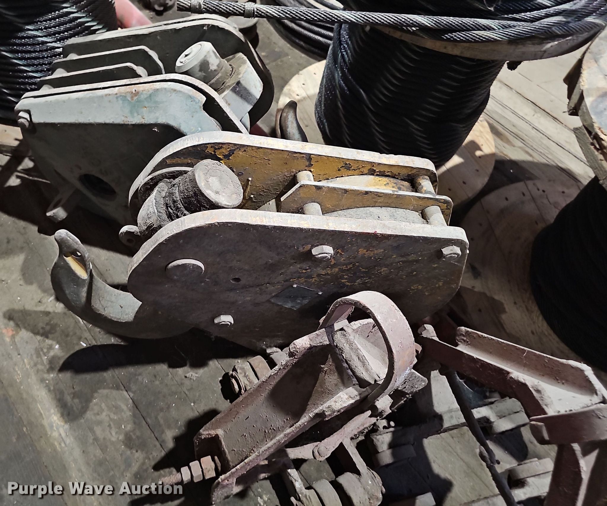 Crane attachments. (3) spools of crane cable, (4) rolls of crane cable, (2) line guides, (2) crane hooks, Gears, Clutch brakes. Gage County Highway Department. 823 South 8th Street. Beatrice, NE 68310