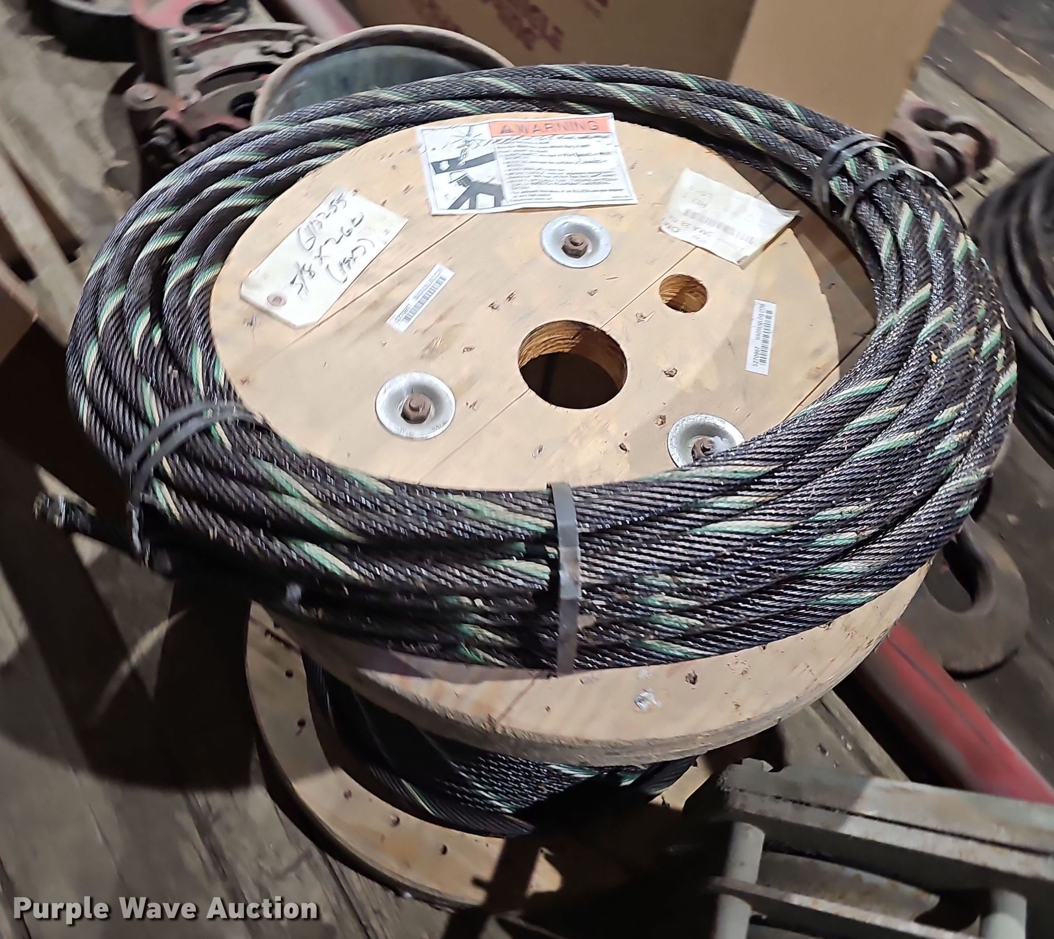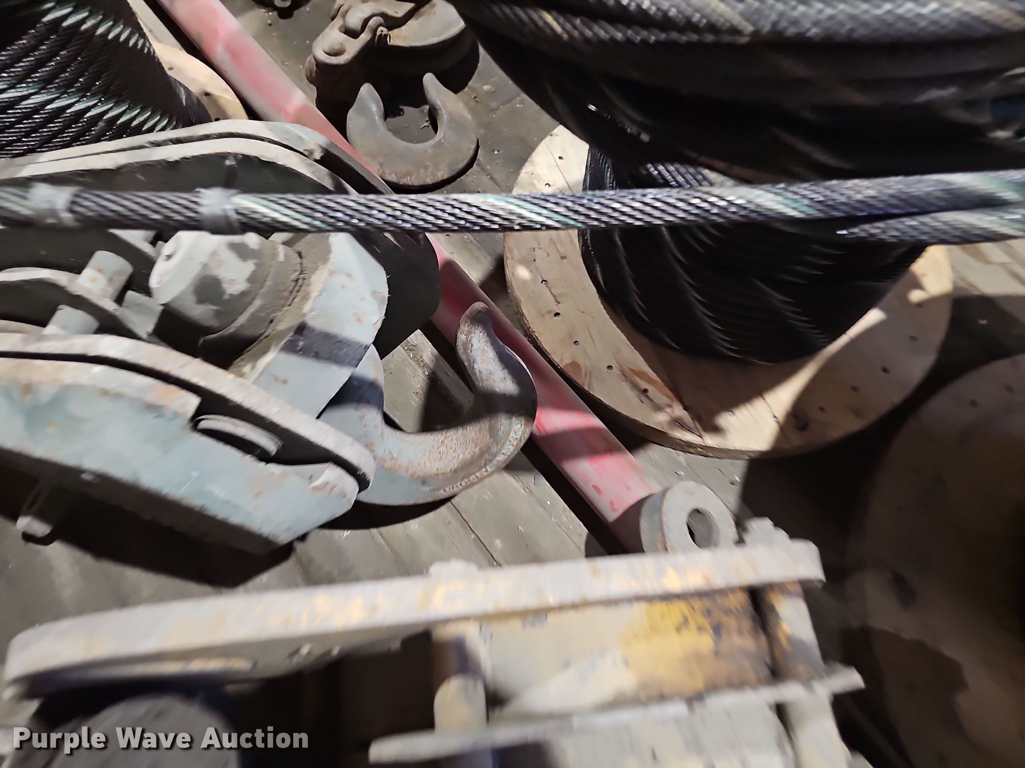 Purple Wave is selling a used Crane Attach. in Nebraska. This item is a Crane attachments with the following: (3) spools of crane cable, (4) rolls of crane cable, (2) line guides, (2) crane hooks, Gears, Clutch brakes
