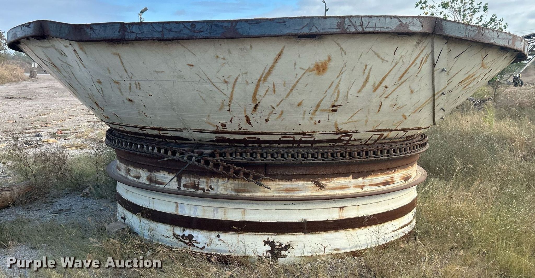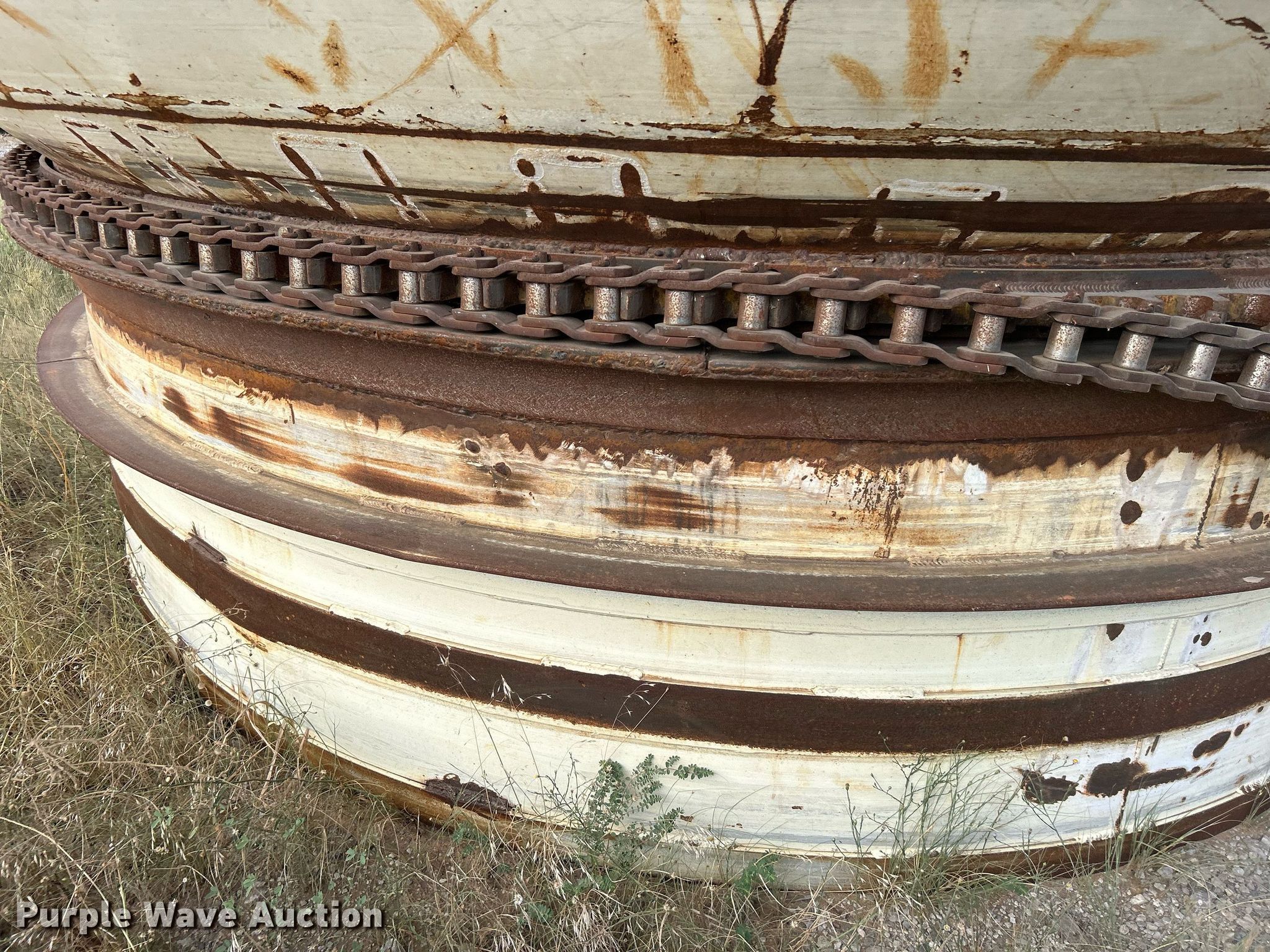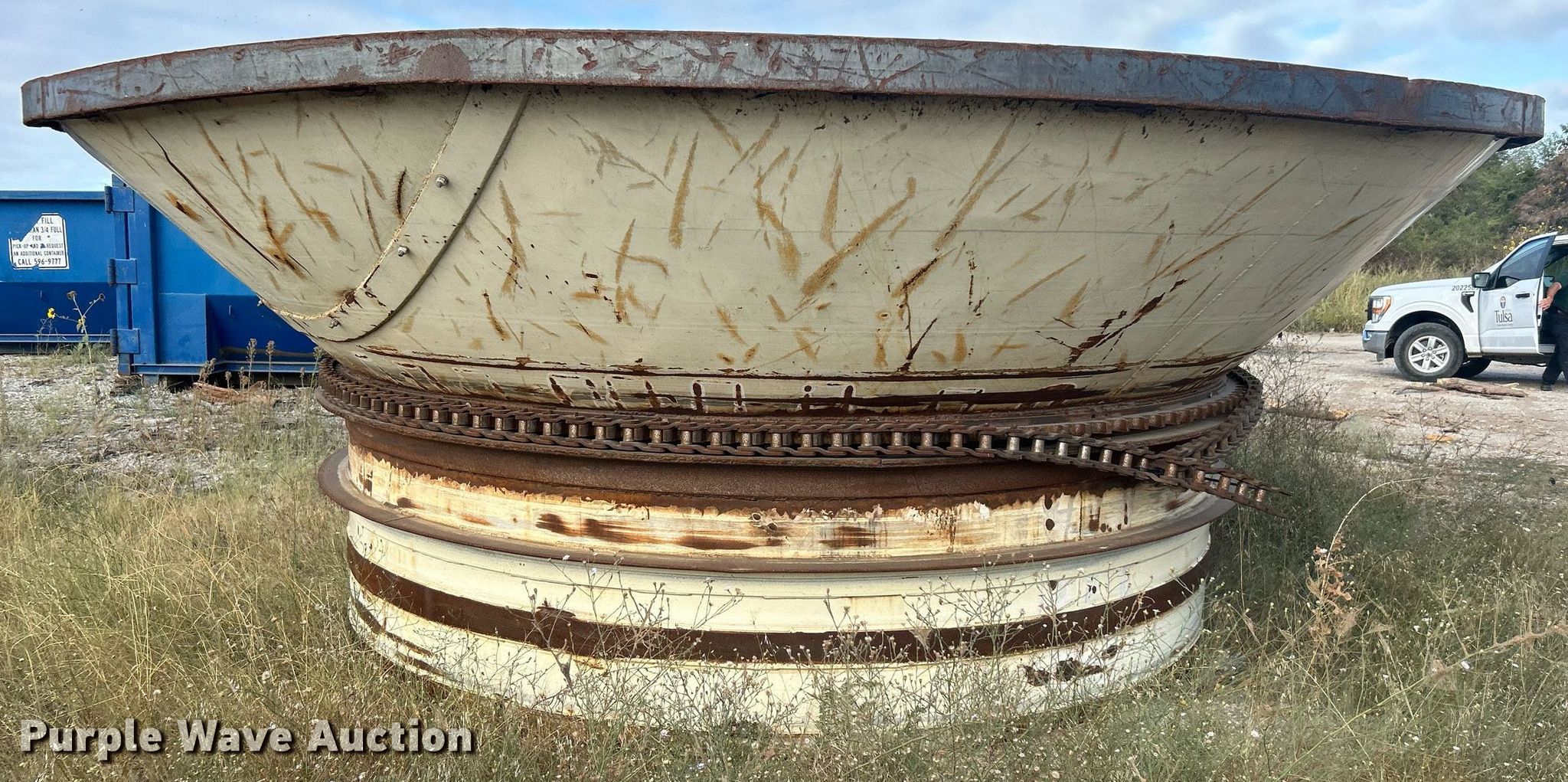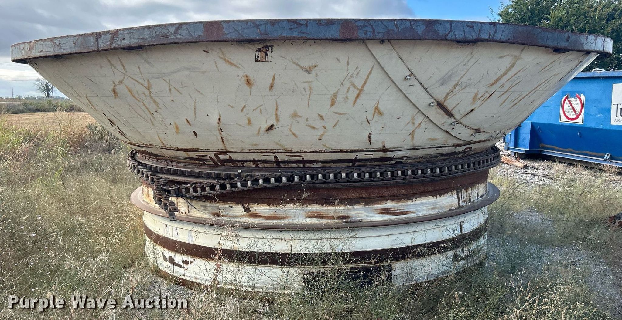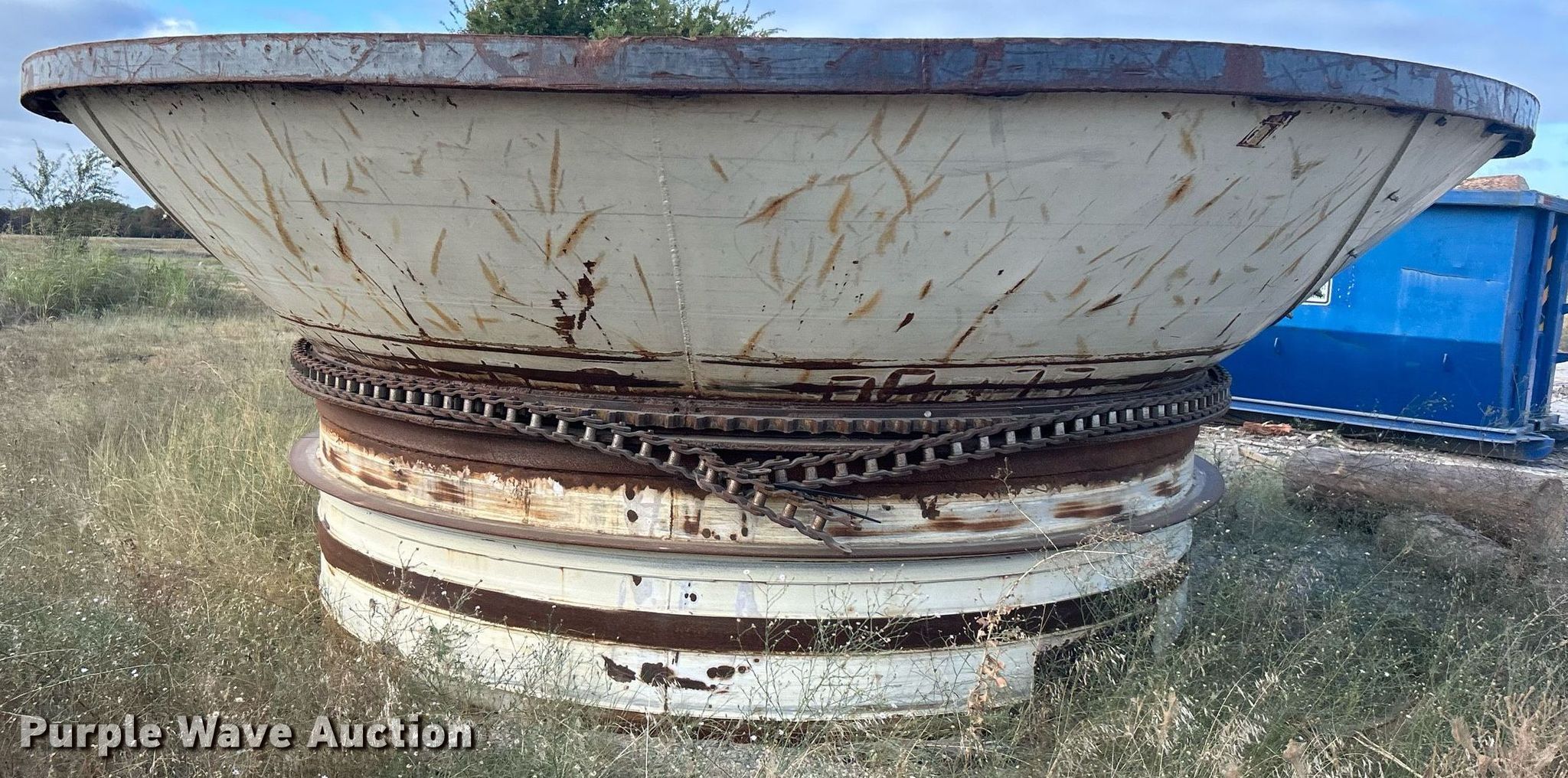 Purple Wave is selling a used Wood Grinder in Oklahoma. This item is a Wood grinder tub with the following: Diameter: 16', Height: 6', Chain width: 3"