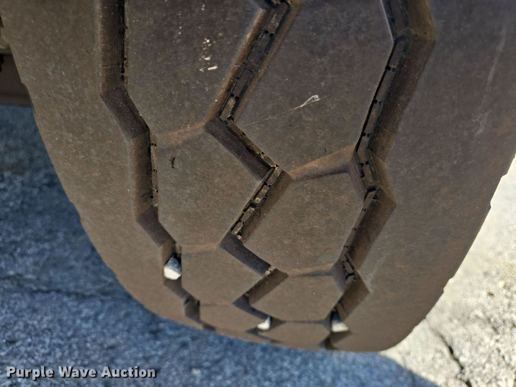 2009 International Dura Star 4300 dumpster carrier truck. Unknown, VIN: 1HTMMAAL49H076682, Unit #: 7637. Engine International Maxxforce DT, Displacement: 7.6L, Fuel type: Diesel. Transmission Automatic. Chassis Axle: Single, Suspension: Spring, Brake: Air, GVWR: 25,500 lbs, Wheelbase: 153". Interior AC, Heat, Heated mirrors. Features Dumpster carrier bed Stellar Carrier, Serial: EFI08ZA1, 12' L x 6' 6" W, Ram: Double, Hydraulic. Tires Size: 11R23.5, Brand: Goodyear. Notes Dead battery, Unknown operating condition. Kansas title. Mileage has not been verified. Odometer discrepancy will be marked on the title. City of Olathe. Olathe, KS 66061