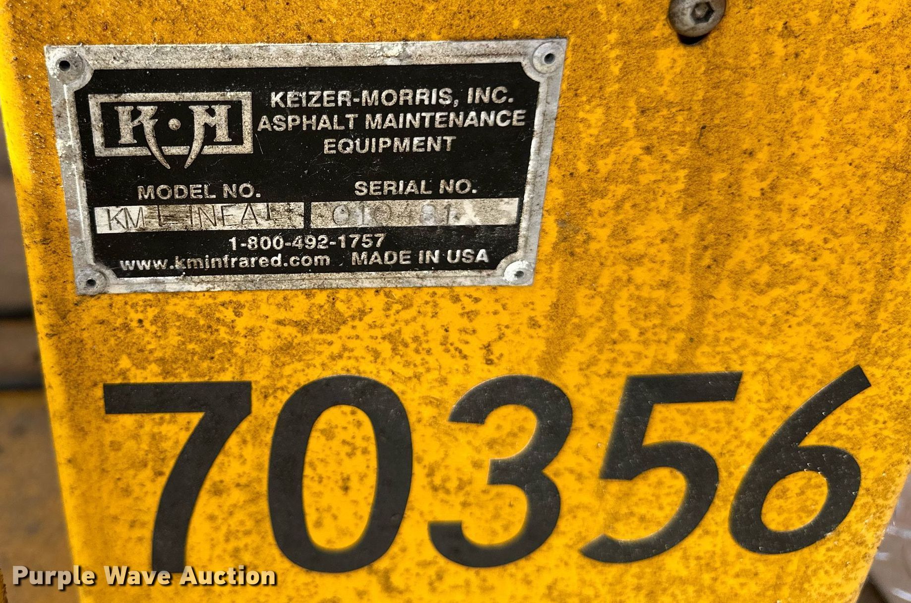Purple Wave is selling a used Paving Sply. or Attach. in Minnesota. This item is a Keizer Morris KMLINEAL infrared asphalt recycler with the following: Serial: 010481, Fuel type: LPG, Dimensions: 9' W x 42"