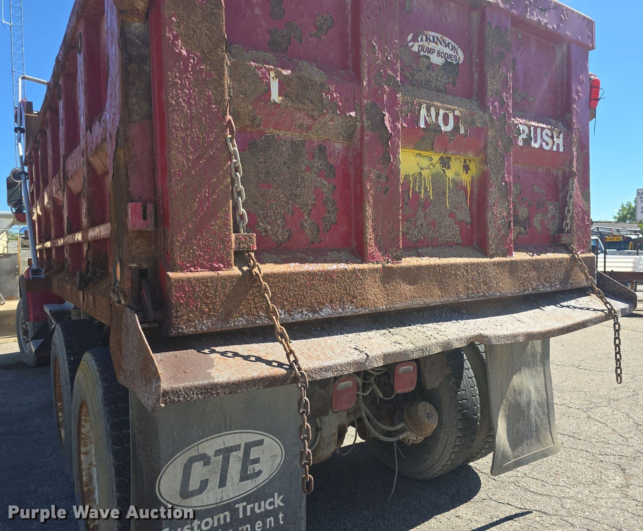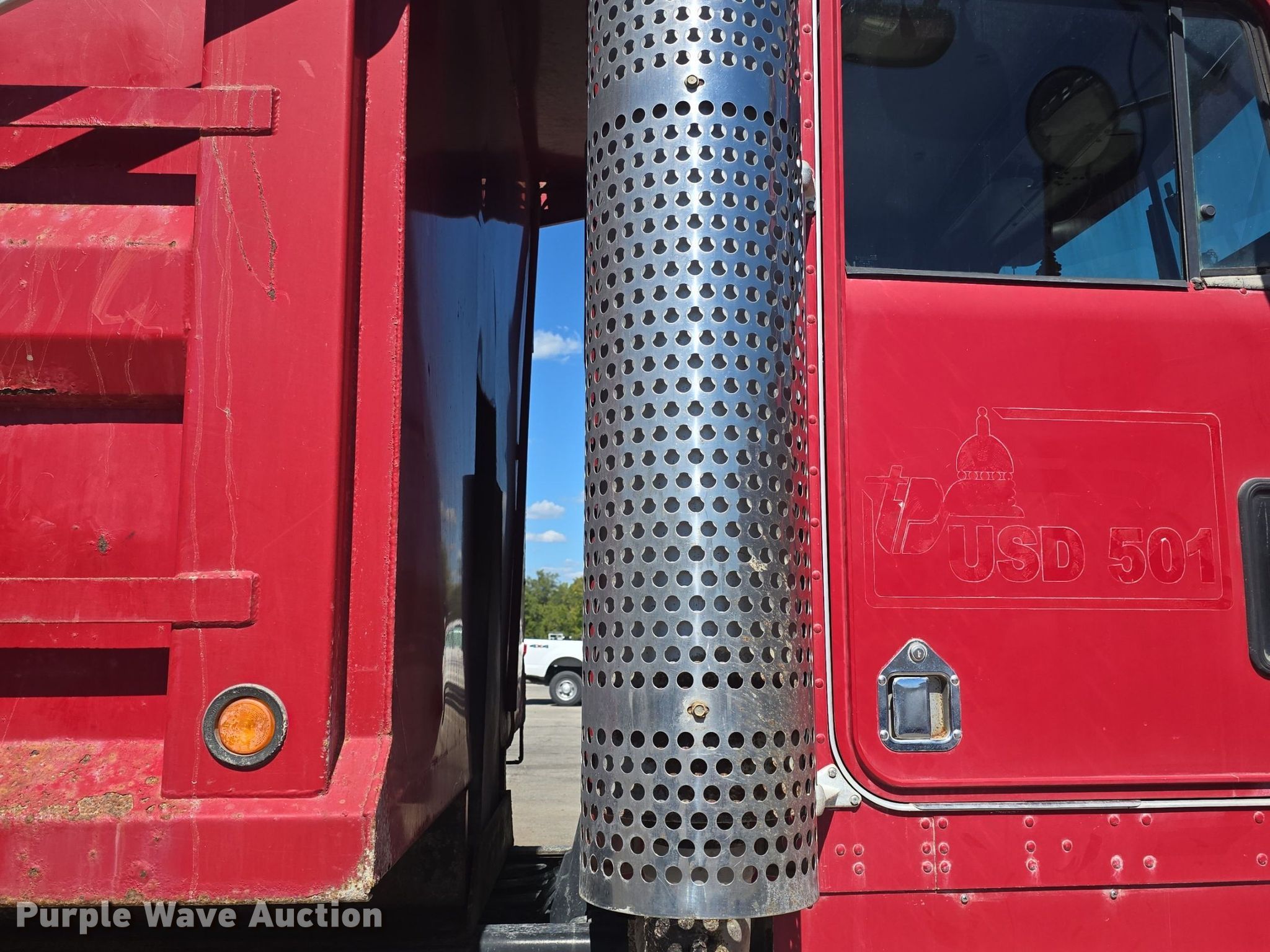 2003 Kenworth T800 dump truck. Miles: 235,789 on odometer, VIN: 1NKDLU0X33J391297. Engine Caterpillar C12, Serial: 2KS94510, Displacement: 12.0L, Cylinders: 6, Fuel type: Diesel, HP: 380, kW: 283, Engine brake. Transmission Eaton fuller, Manual, Speed: 10. Chassis Axles: Tandem, Differential lock: Inter-axle, Suspension: Spring over walking beam, Brakes: Air, PTO, GVWR: 76,060 lbs FAWR: 14,060 lbs, IAWR: 18,000 lbs, Wheelbase: 202". Interior AC, Heat, Heated mirrors, Cruise control. Features Dump bed Atkinson, 15' 7" L x 8' W, Side height: 45", Bed type: Steel, Roll tarp, Ram: Single, End gate: Manual. Tires Size: 385/65R22.5, Brand: Firestone. Notes Rust damage. Kansas title. Title distribution may be delayed up to 14 days from verification of funds. Unified School District No. 501, Topeka Public Schools. Topeka, KS 66611
