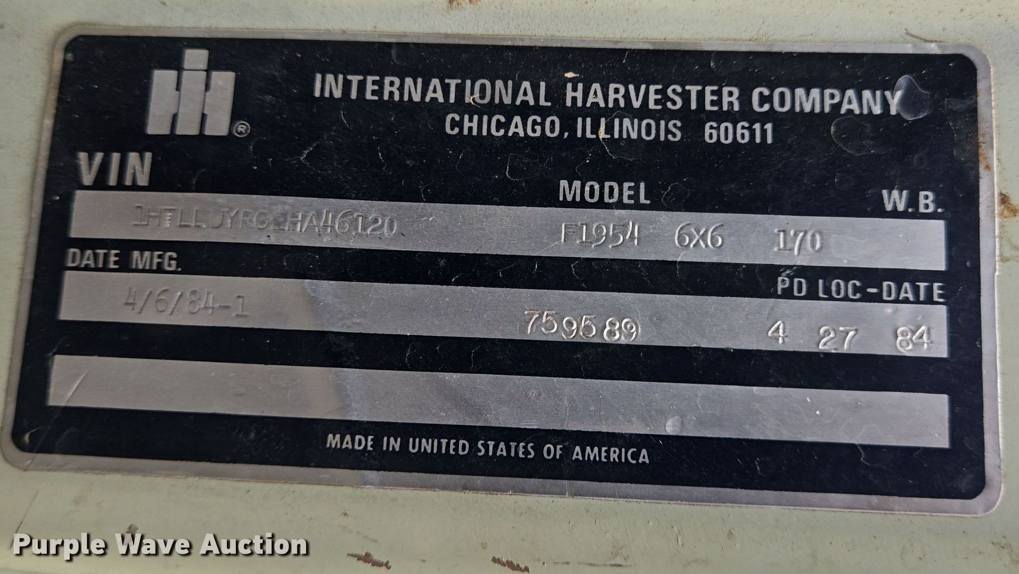 Purple Wave is selling a used Digger Derrick Truck in Texas. This item is a 1984 International digger derrick truck with the following: Miles: 17,262 on odometer, VIN: 1HTLLUYROEHA46120
