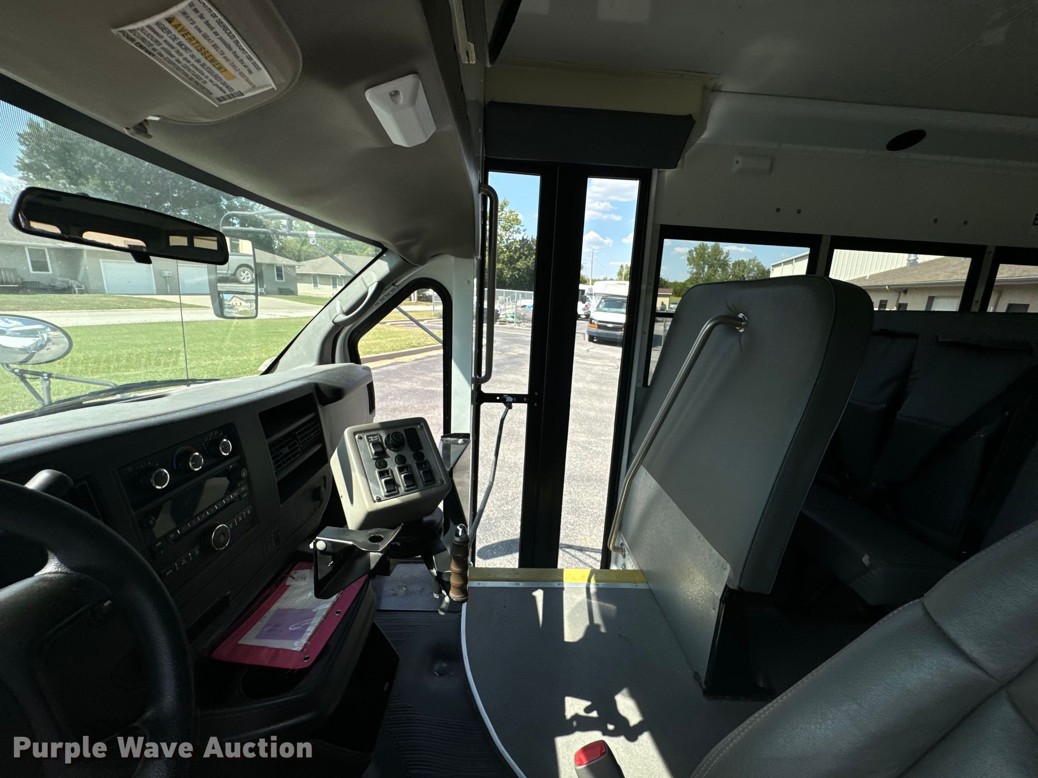 2009 Chevrolet Express 3500 shuttle bus. Miles: 40,859 on odometer, VIN: 1GBJG31KX91115007. Engine Displacement: 6.0L, Cylinders: 8, Fuel type: Gas. Transmission Automatic. Chassis Axles: Single, Suspension: Spring, Brakes: Hydraulic, GVWR: 12,300 lbs. Interior AC, Heat, Cruise control, Passengers: 18, Child safety seats. Tires Size: LT225/75R16. Kansas title. Title distribution may be delayed up to 30 days from verification of funds. SEK-CAP. Girard, KS 66743