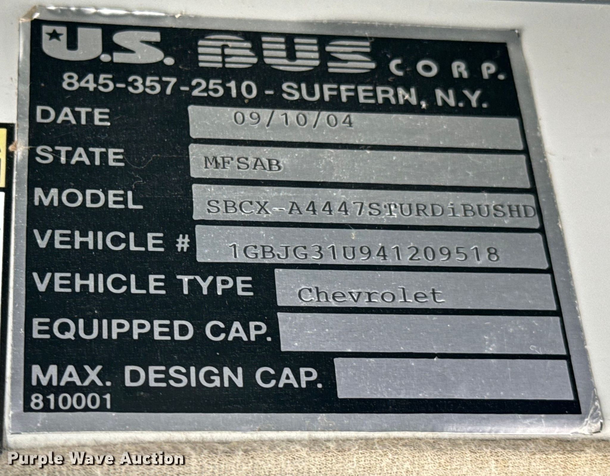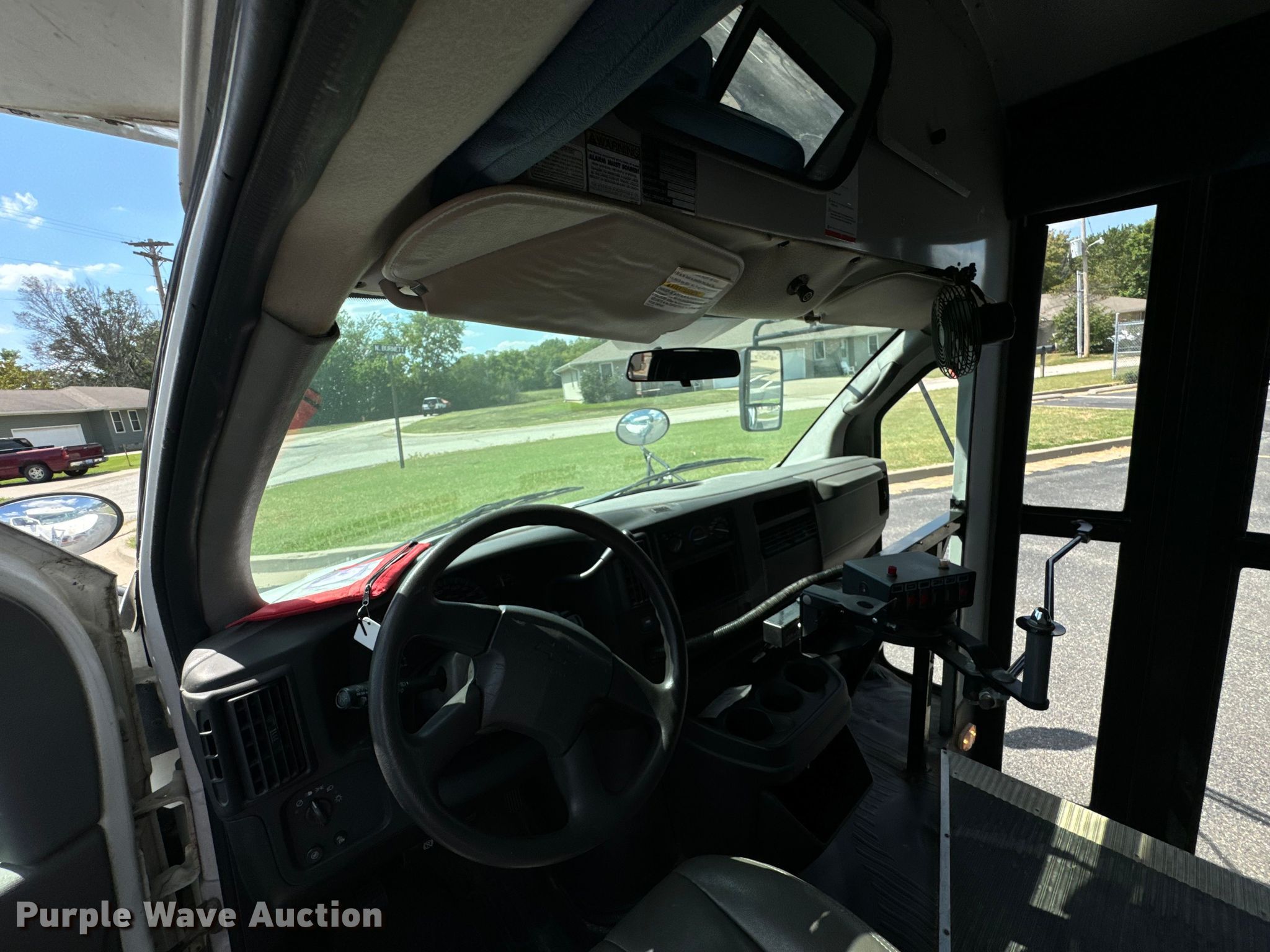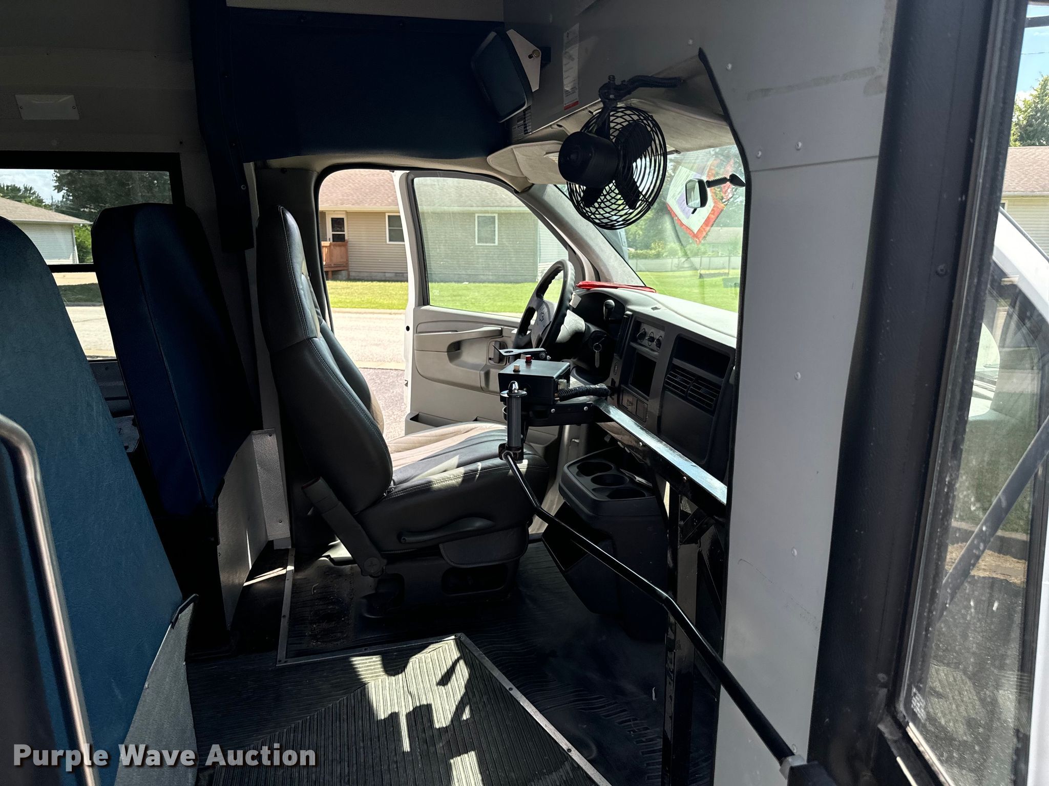 2004 Chevrolet Express G3500 shuttle bus. Miles: 97,186 on odometer, VIN: 1GBJG31U941209518. Engine Displacement: 6.0L, Cylinders: 8, Fuel type: Gas. Transmission Automatic. Chassis Axles: Single, Suspension: Spring, Brakes: Hydraulic. Interior AC, Heat, Passengers: 14, Child safety seats. Tires Size: LT235/75R16. Kansas title. SEK-CAP. Girard, KS 66743