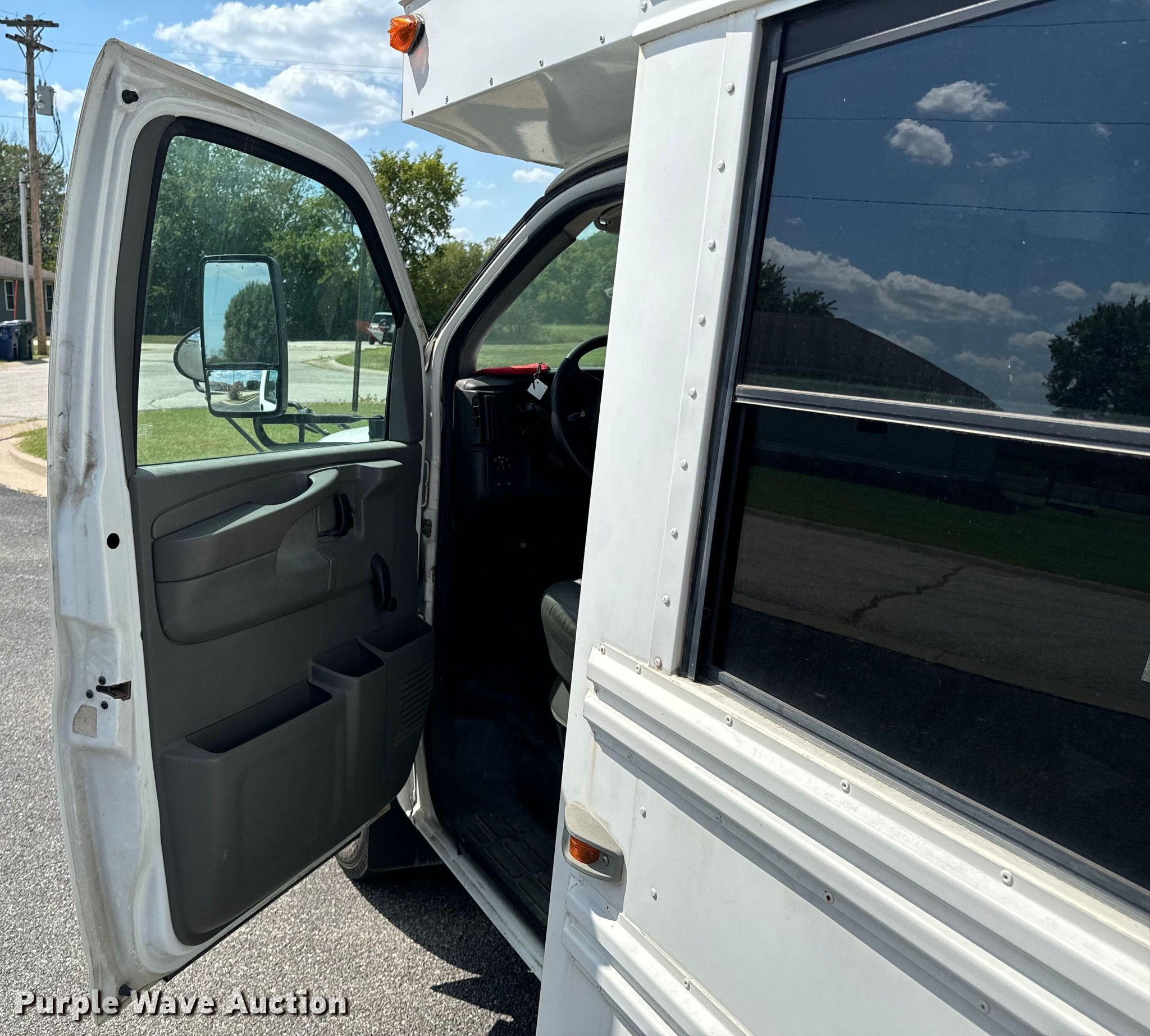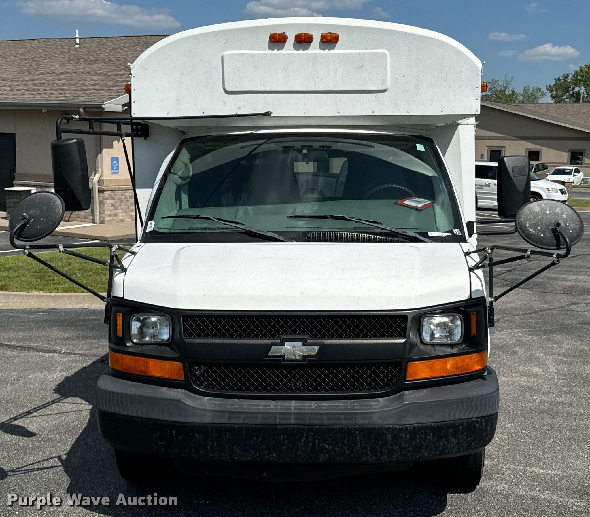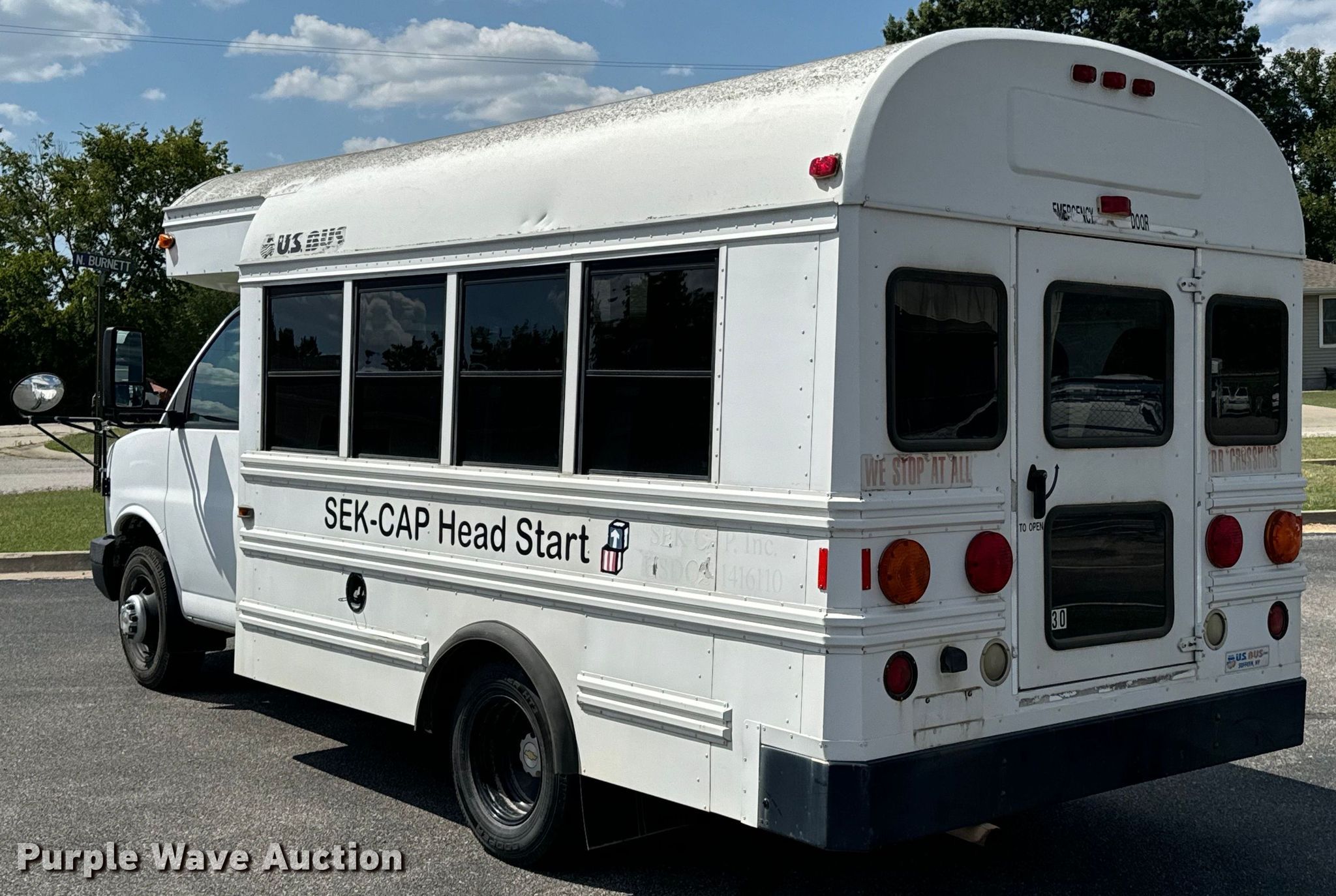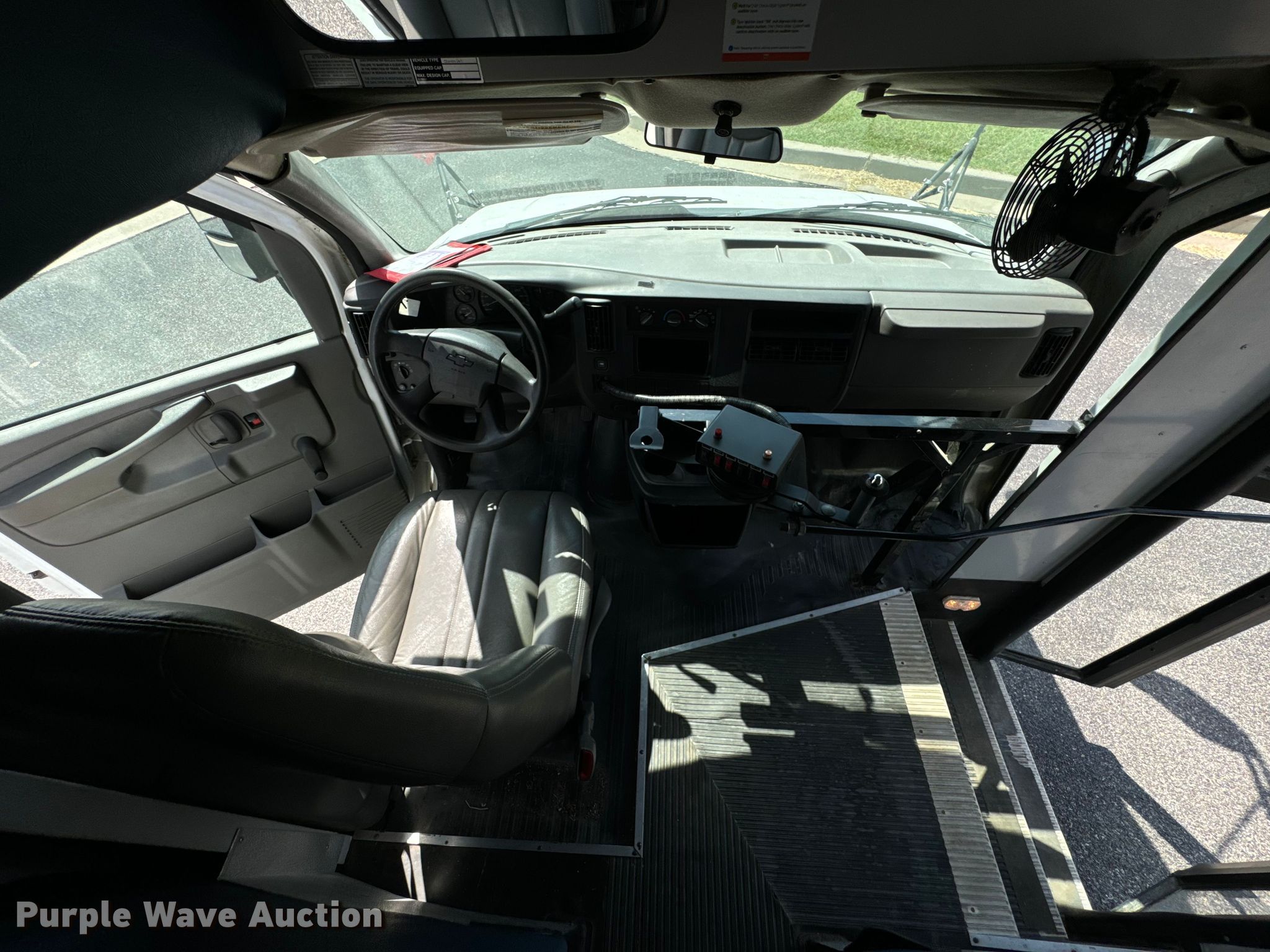 2004 Chevrolet Express G3500 shuttle bus. Miles: 97,186 on odometer, VIN: 1GBJG31U941209518. Engine Displacement: 6.0L, Cylinders: 8, Fuel type: Gas. Transmission Automatic. Chassis Axles: Single, Suspension: Spring, Brakes: Hydraulic. Interior AC, Heat, Passengers: 14, Child safety seats. Tires Size: LT235/75R16. Kansas title. SEK-CAP. Girard, KS 66743