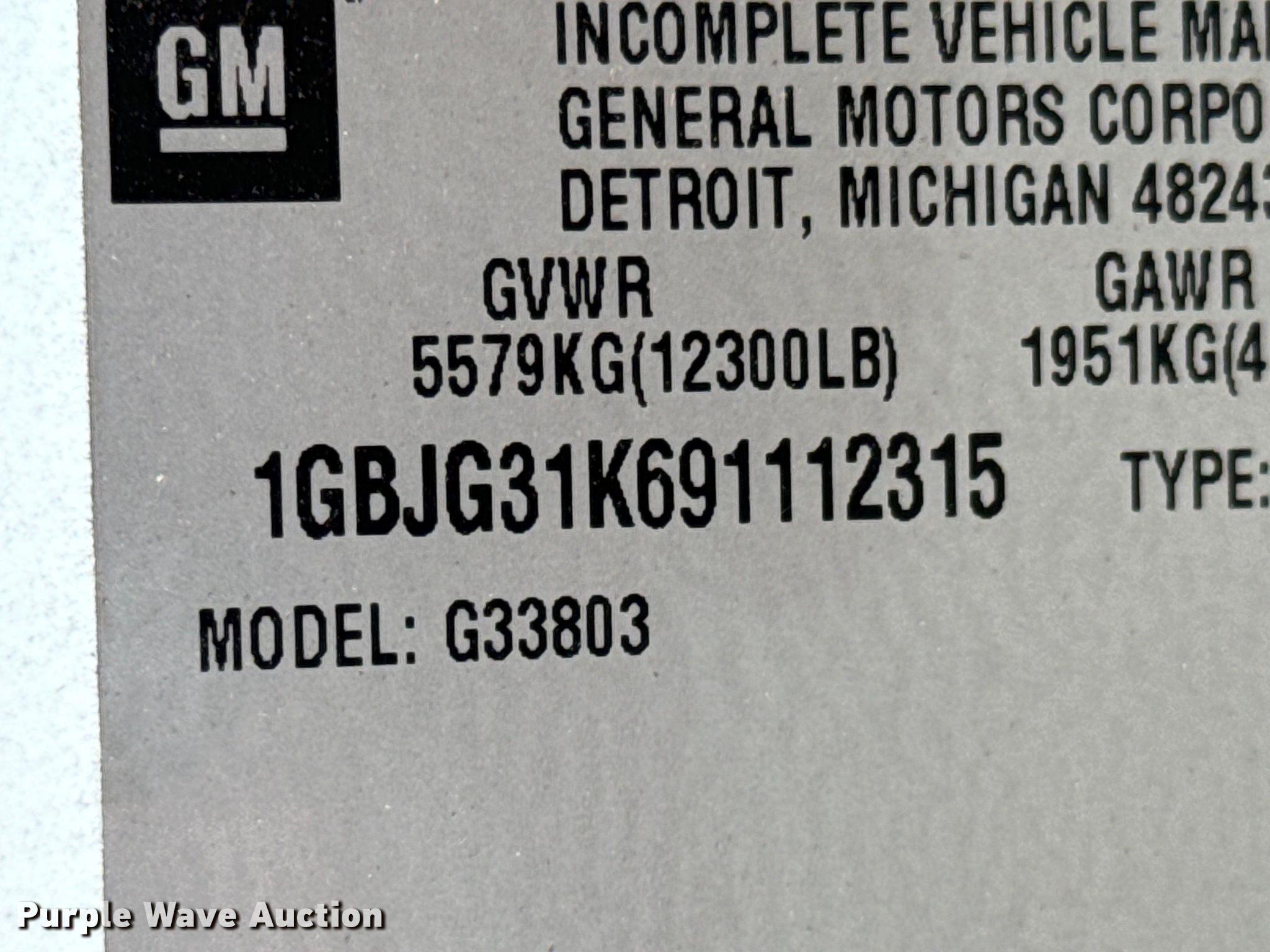 - VIN: 1GBJG31K691112315
