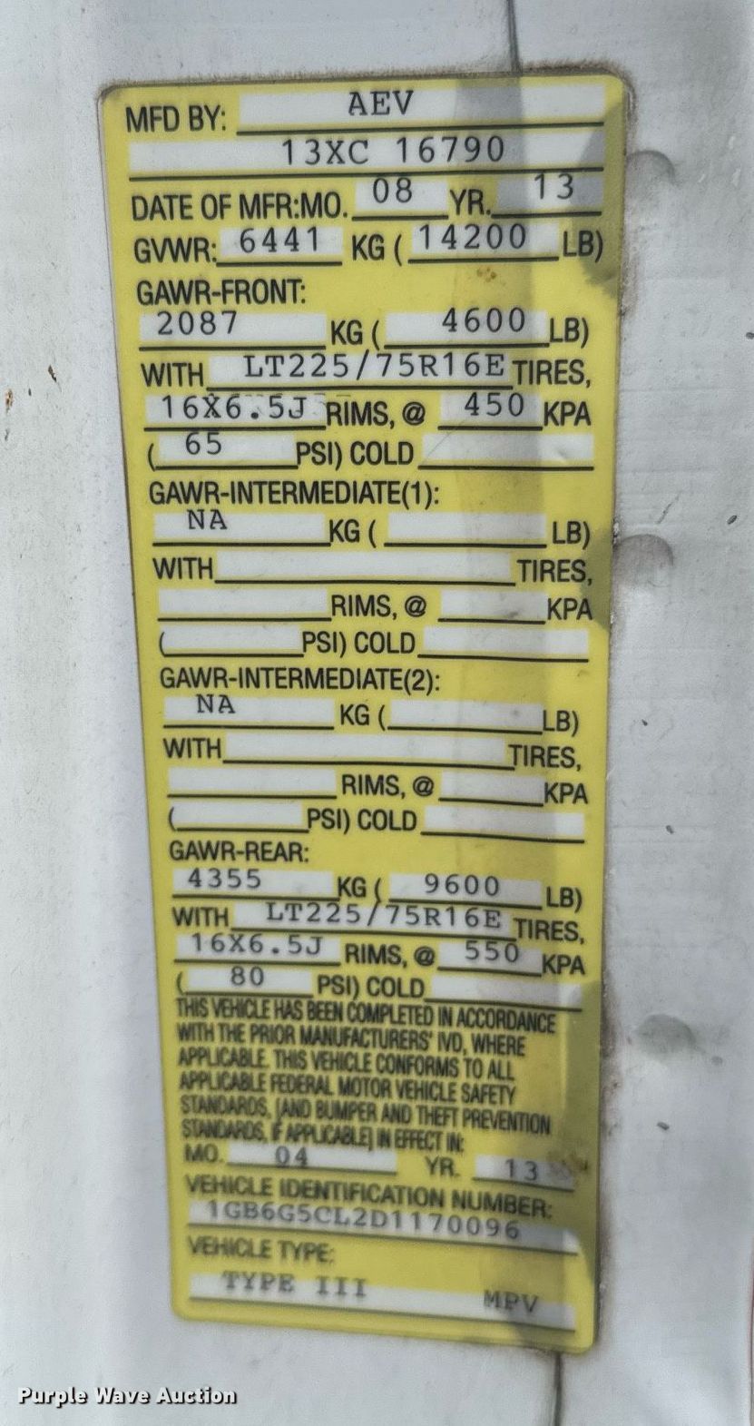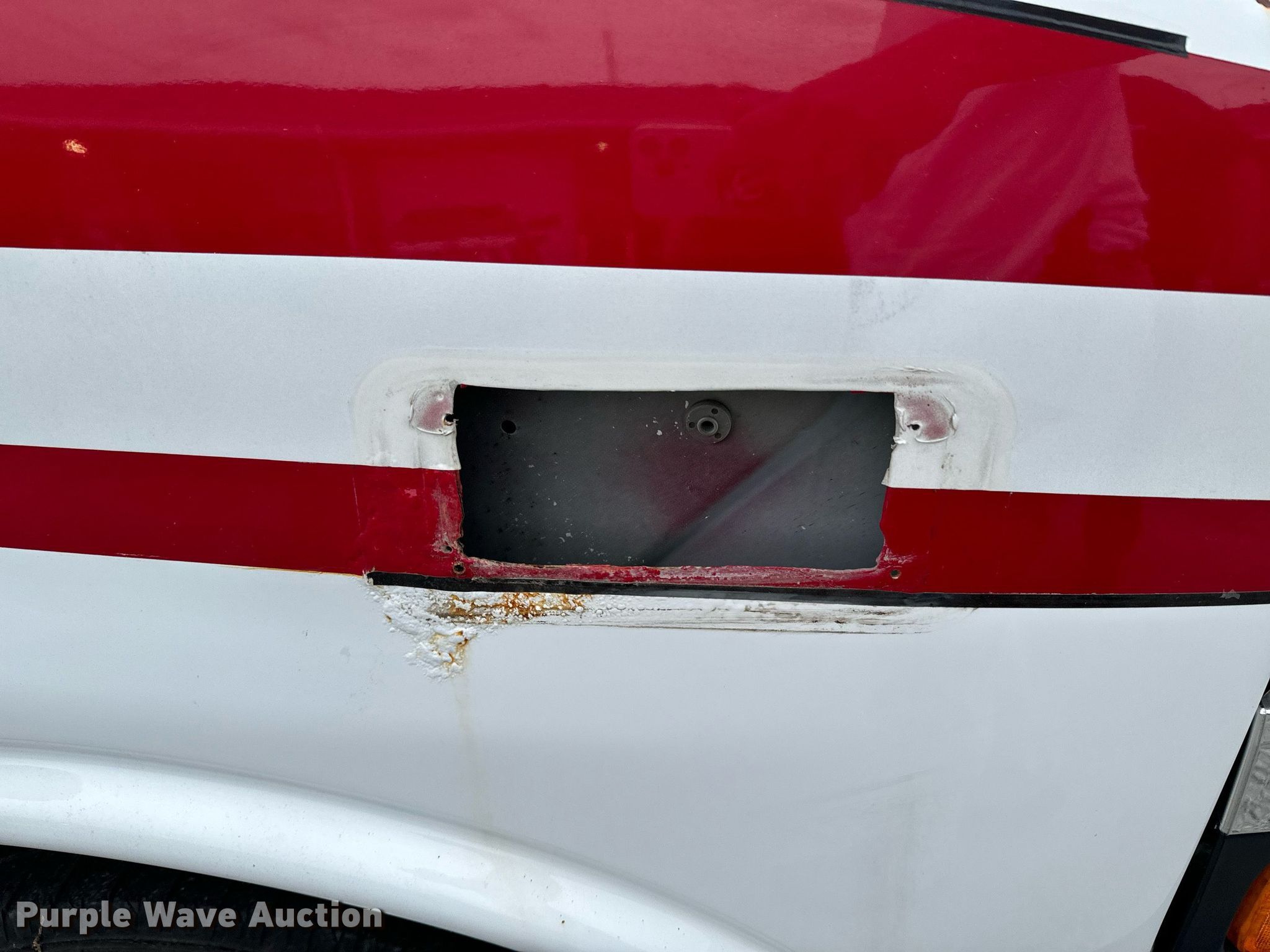 2013 Chevrolet Express 4500 truck cab and chassis. Miles: 187,045 on odometer, VIN: 1GB6G5CL2D1170096. Engine Displacement: 6.6L, Cylinders: 8, Fuel type: Diesel. Transmission Automatic. Chassis Axles: Single, Suspension: Spring, Brakes: Hydraulic, GVWR: 14,200 lbs FAWR: 4,600 lbs, RAWR: 9,600 lbs. Interior AC, Heat, Power windows, Power locks, Cruise control. Tires Size: LT225/75R16. Notes Engine issues, number 7 glow plug needs replaced, DEF deleted, Dash warning indicator: Check engine. Missouri prior salvage motor vehicle title. Title distribution may be delayed up to 14 days from verification of funds. Barton County Ambulance District. Lamar, MO 64759