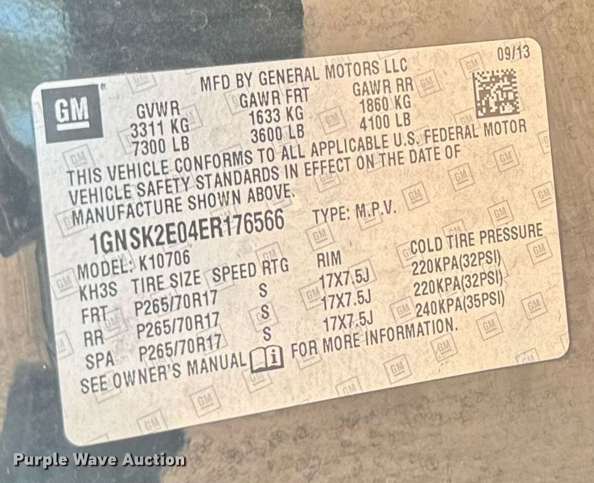 Purple Wave is selling a used Passenger Vehicle in Colorado. This item is a 2014 Chevrolet Tahoe Police SUV with the following: Miles: 124,829 on odometer, VIN: 1GNSK2E04ER176566