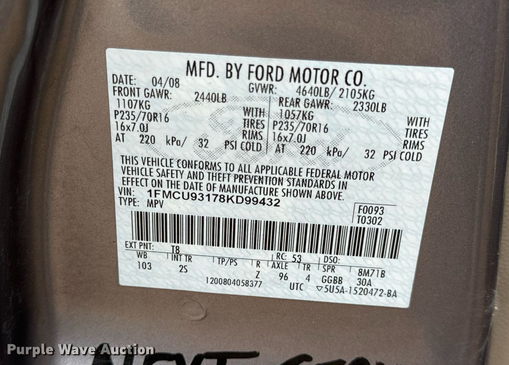 Purple Wave is selling a used Passenger Vehicle in Missouri. This item is a 2008 Ford Escape XLT SUV with the following: Miles: 94,018 on odometer, VIN: 1FMCU93178KD99432