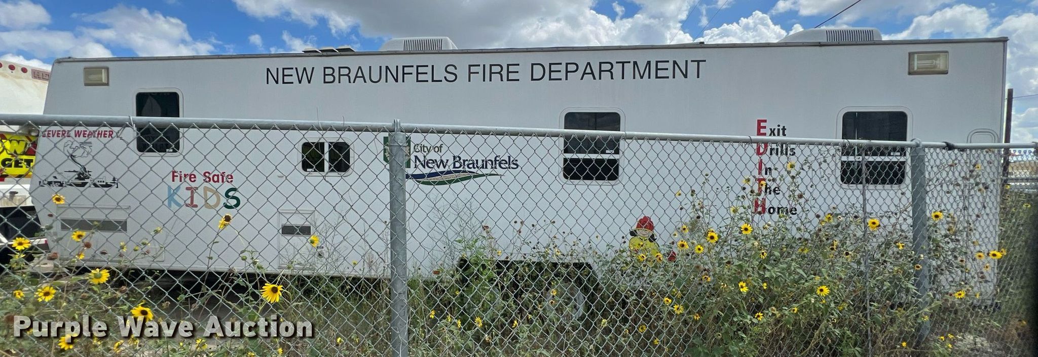 2007 Forks Surrey fire safety training trailer. VIN: 1F9BD362078217718. Chassis Axles: Tandem, Suspension: Spring, Brakes: Electric. Interior Kitchen: Sink, Refrigerator, Microwave, Oven, Stove: Propane, TVs: 2, AC units: 2. Features Awnings: 1 Awning type: Manual, Generator Onan CMM 7000, Fuel type: Gas, kW: 7, Ball hitch: 2 5/16". Tires Size: 225/75R15. Notes Appliances for training, not normal use, Unknown operating condition of generator, Dead battery, Unknown operating condition. Texas title. Title distribution may be delayed up to 14 days from verification of funds. City of New Braunfels. New Braunfels, TX 78130