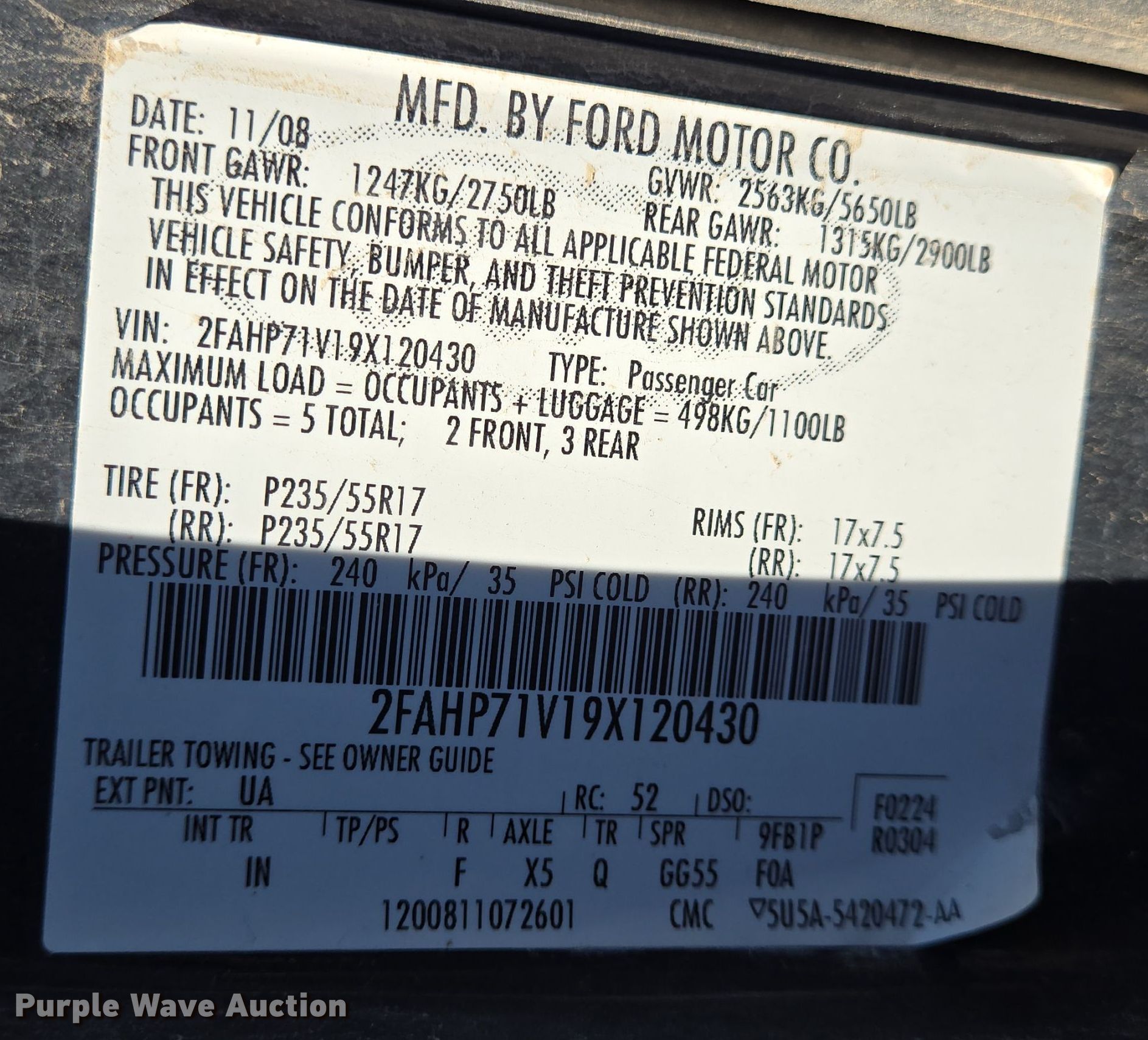 - VIN: 2FAHP71V19X120430
