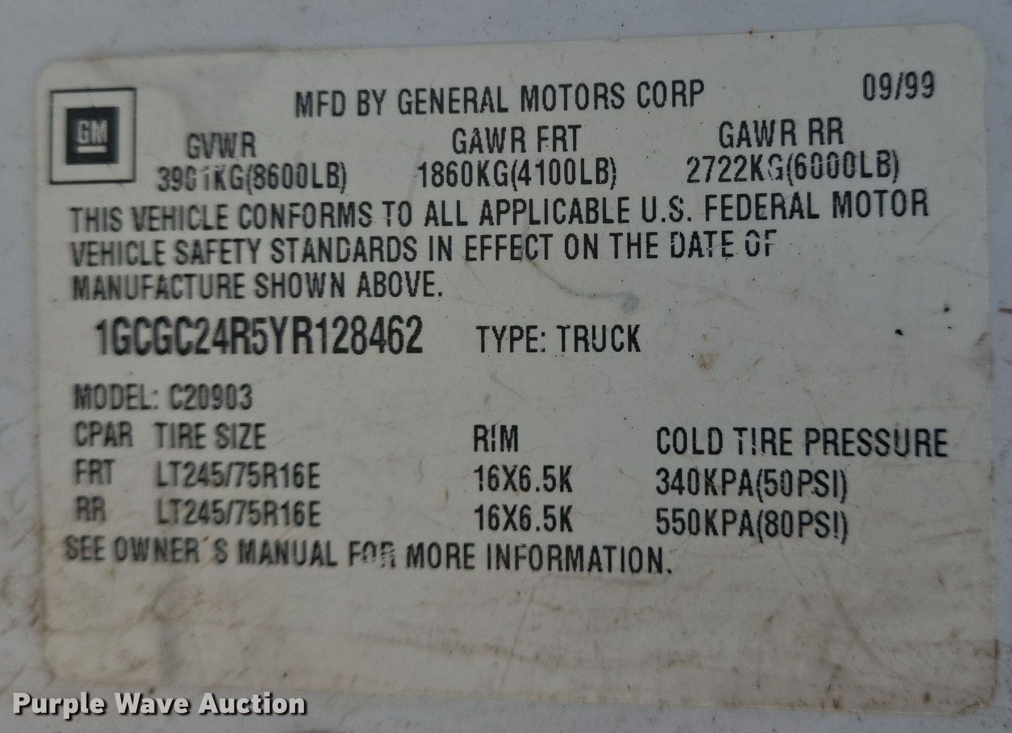 - VIN: 1GCGC24R5YR128462
