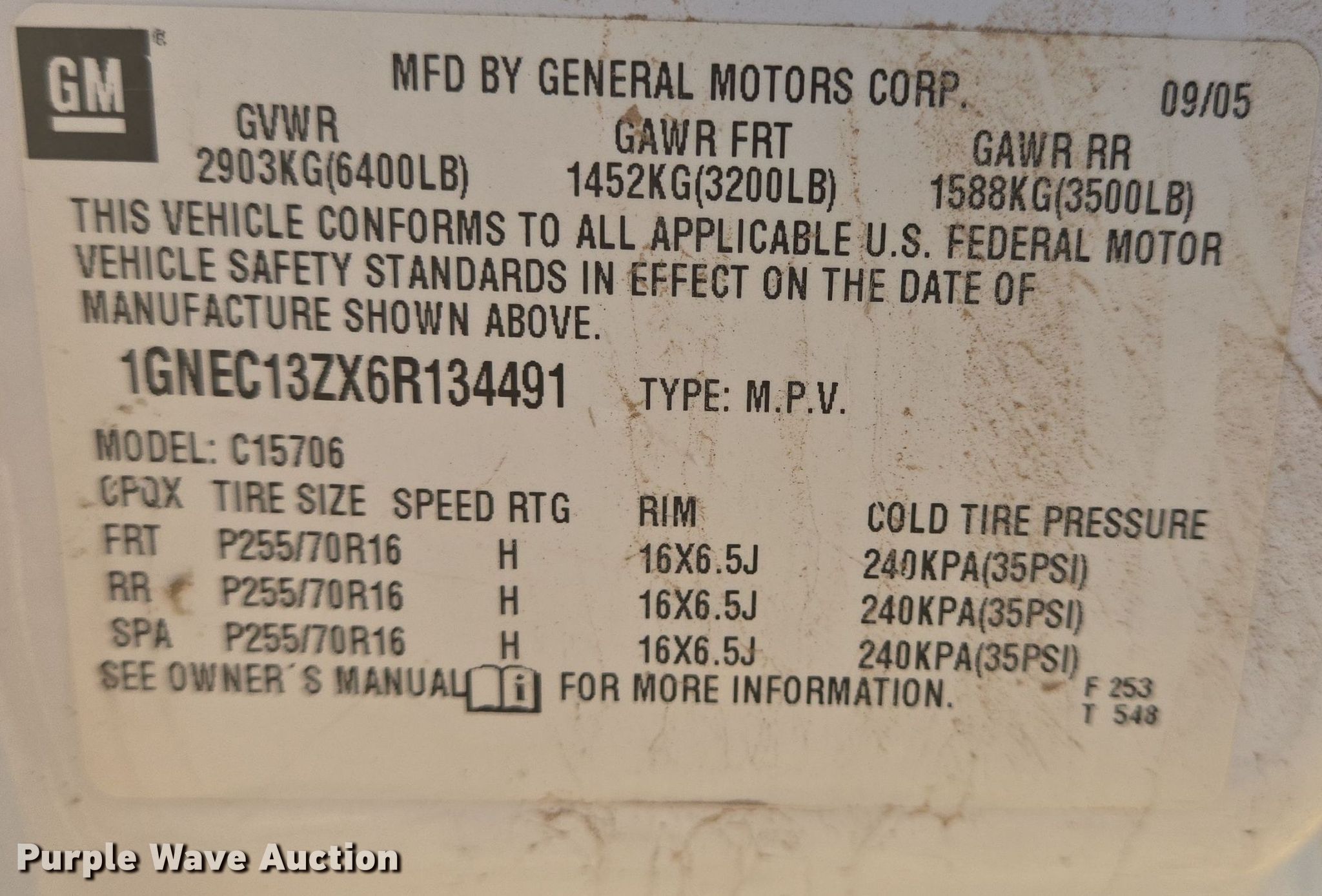 Purple Wave is selling a used Passenger Vehicle in Texas. This item is a 2006 Chevrolet Tahoe SUV with the following: Miles: Unknown, VIN: 1GNEC13ZX6R134491